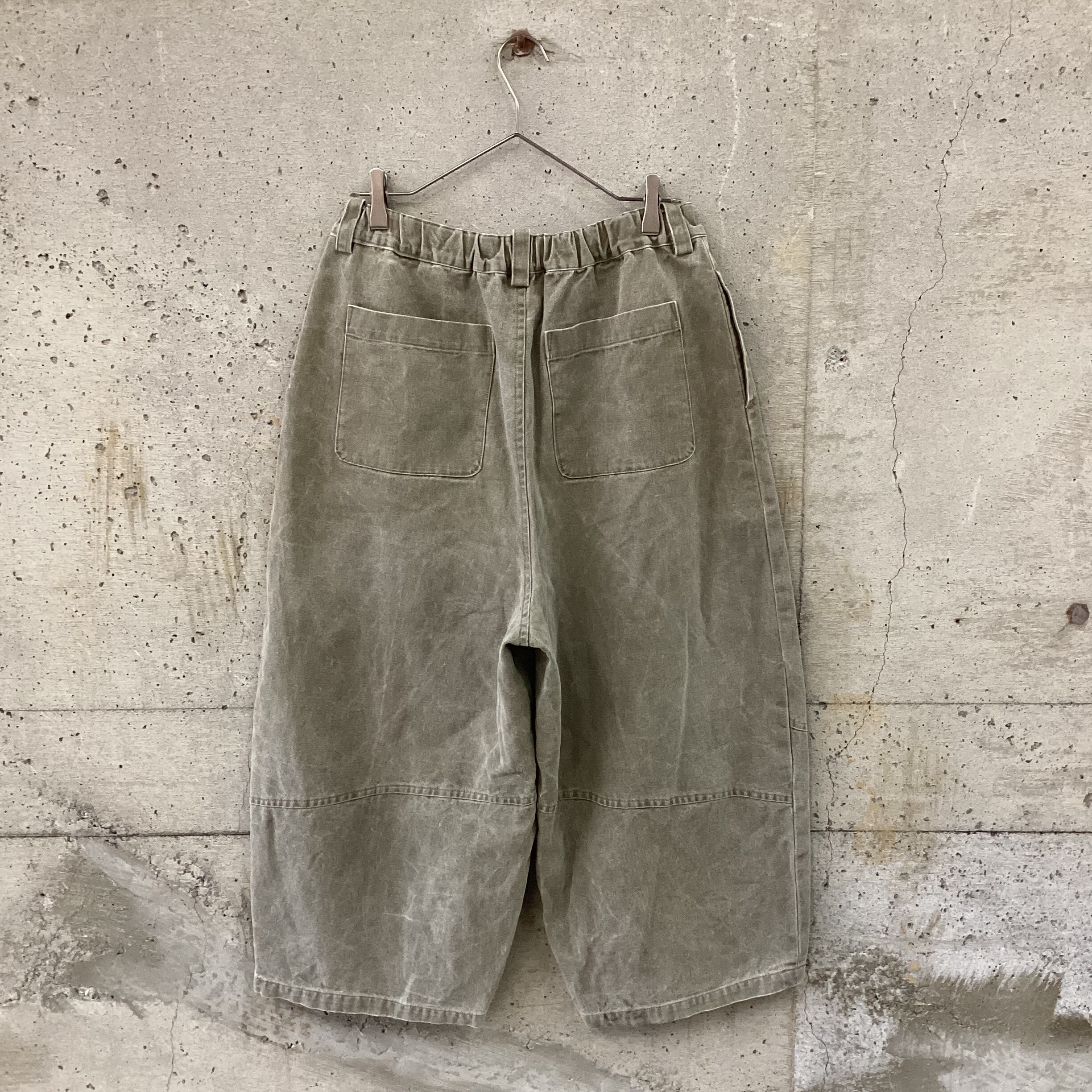厚手のコットン生地に、ケミカルウォッシュのような加工が施された少しハードな雰囲気のパンツです。