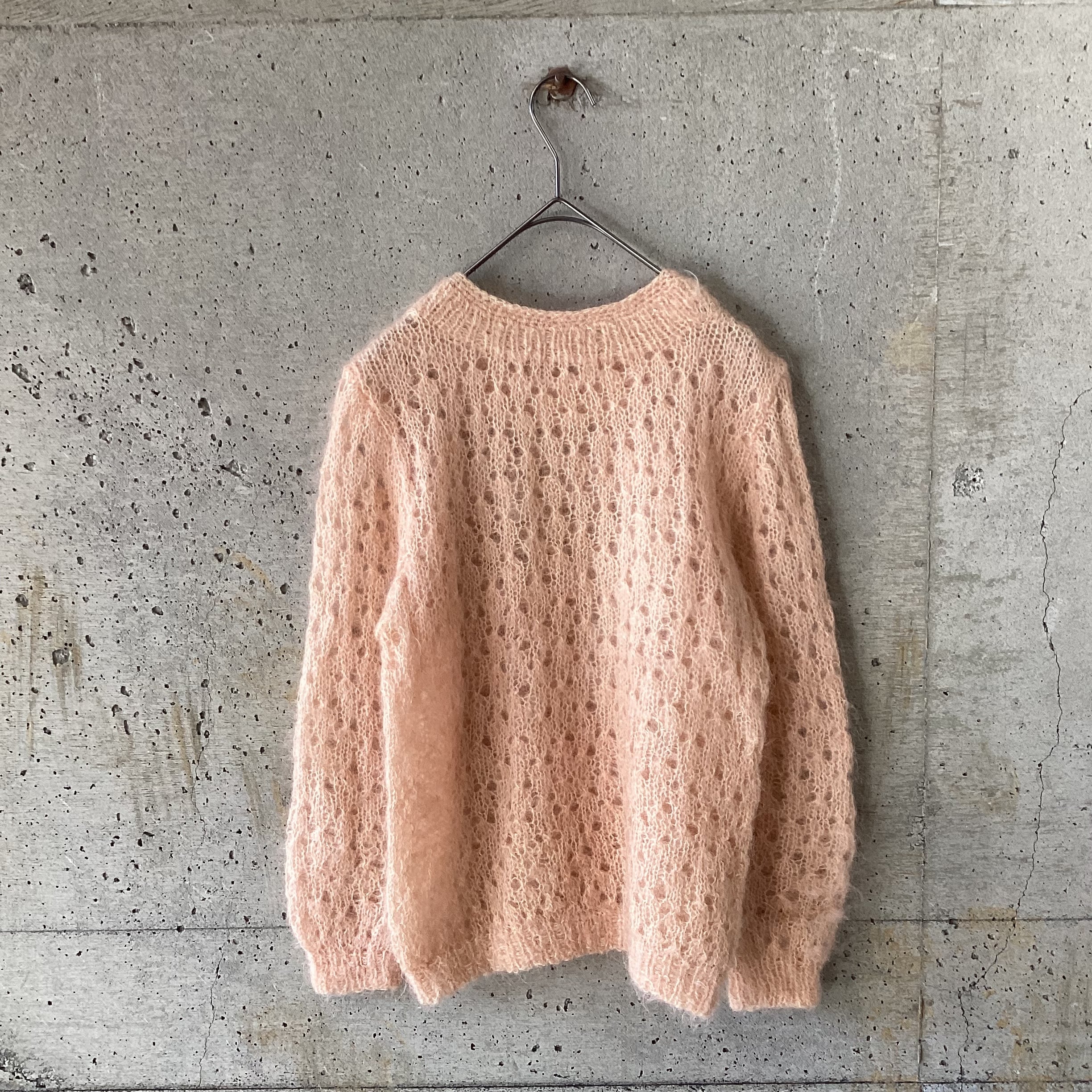 透かし編みのデザインで中に着るものの色次第で色々な顔を見せてくれます。