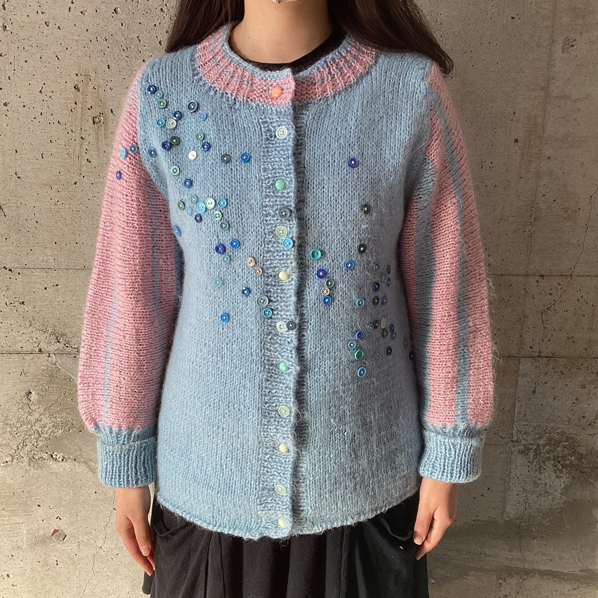 ニットの色合いとたくさんのボタンが可愛らしいニットカーディガンです。