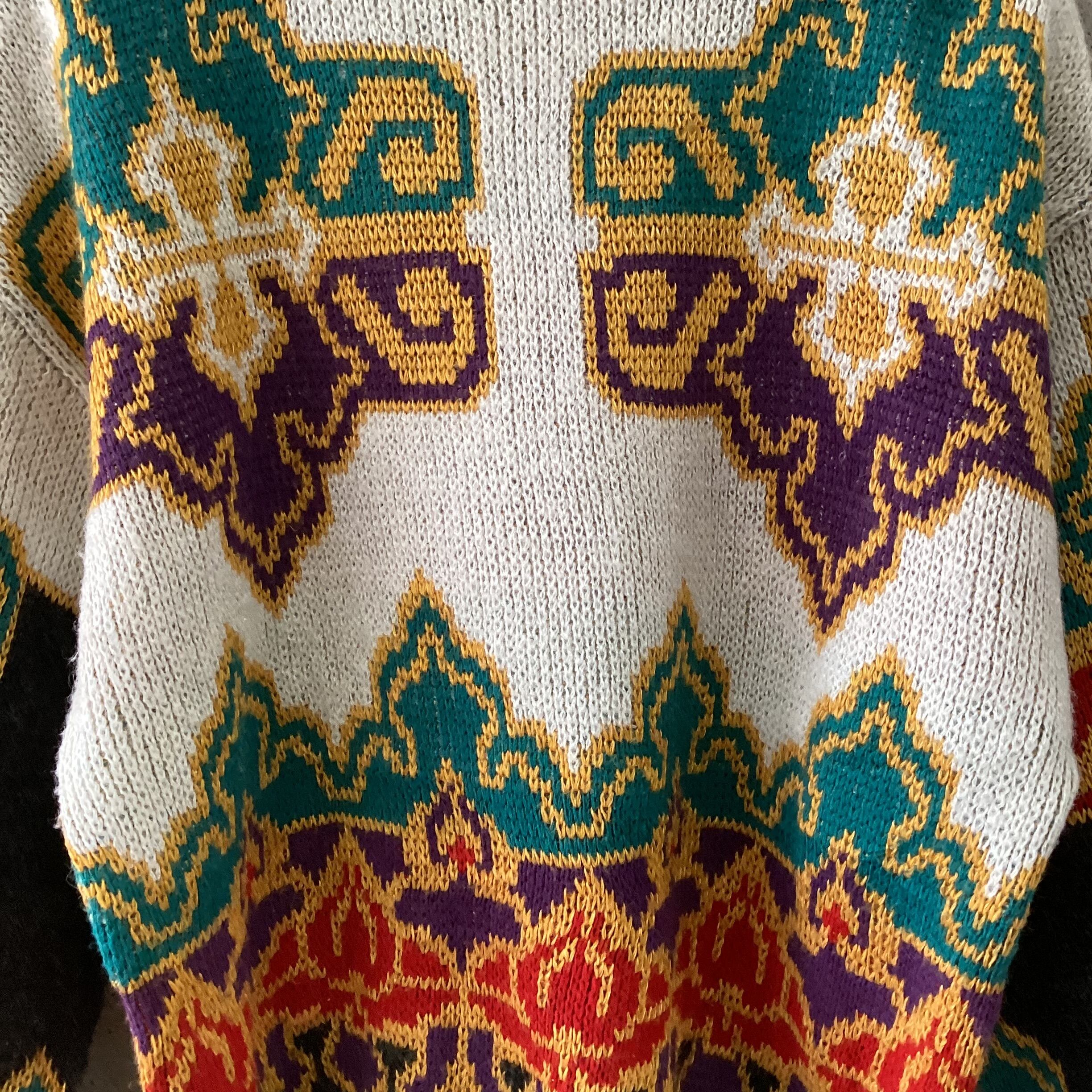 オリエンタルやエスニック調の模様が特徴で、鮮やかな配色がコーディネートの主役になります。