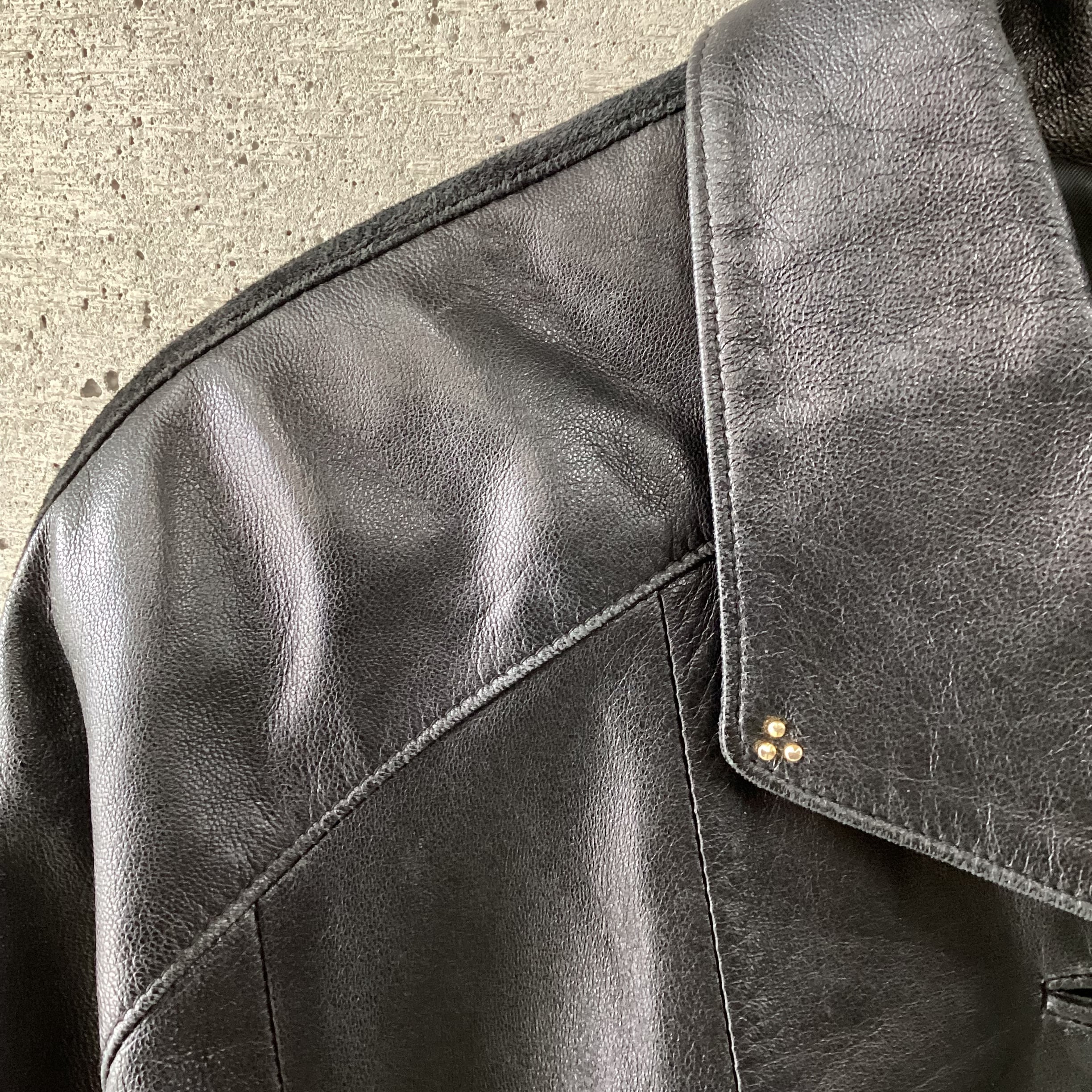 襟元の小さなゴールドスタッズがさりげないアクセントになっています。