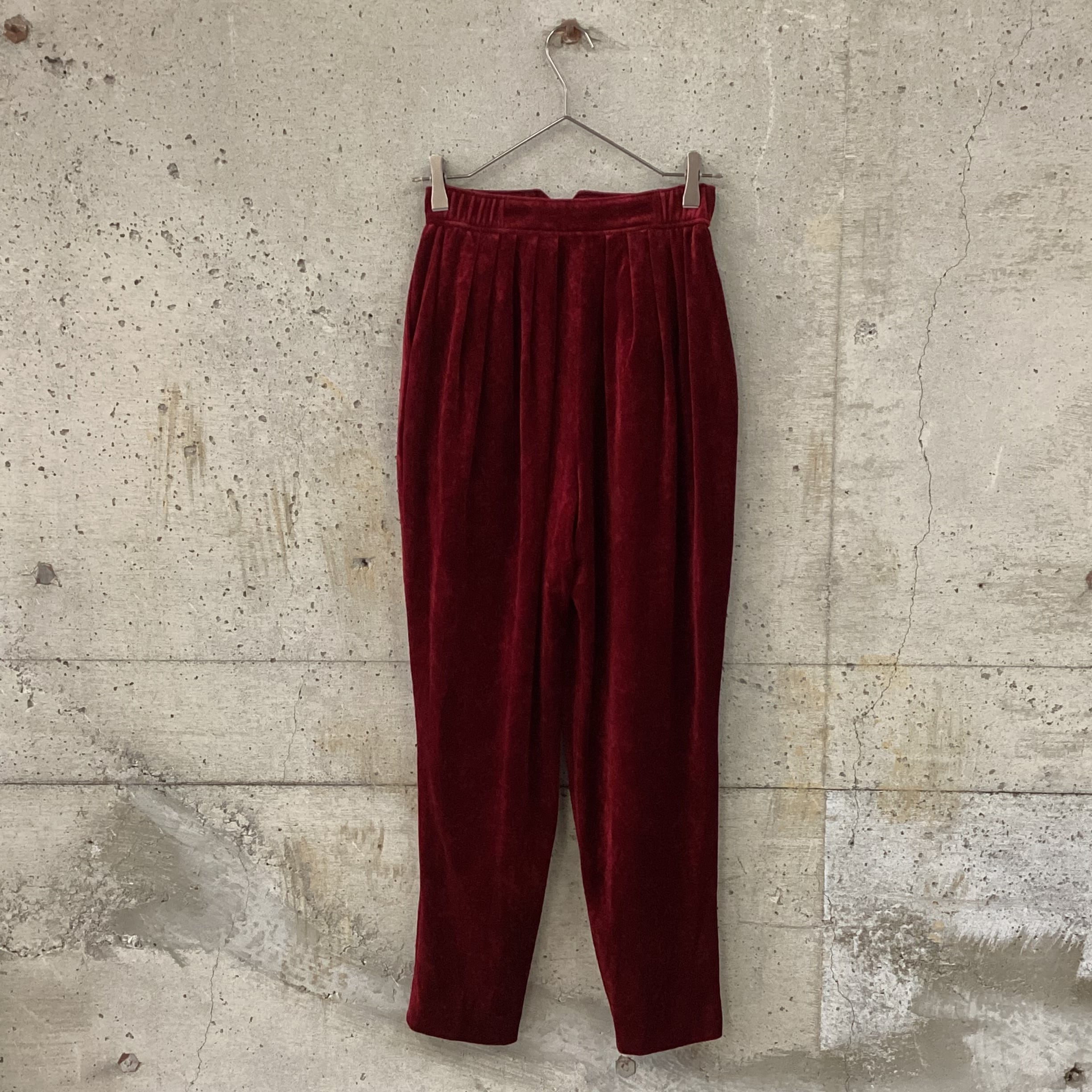 ベロア素材のパンツです。とても柔らかく、肌当たりが良いため快適に着用できます。