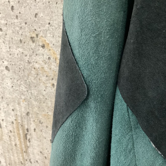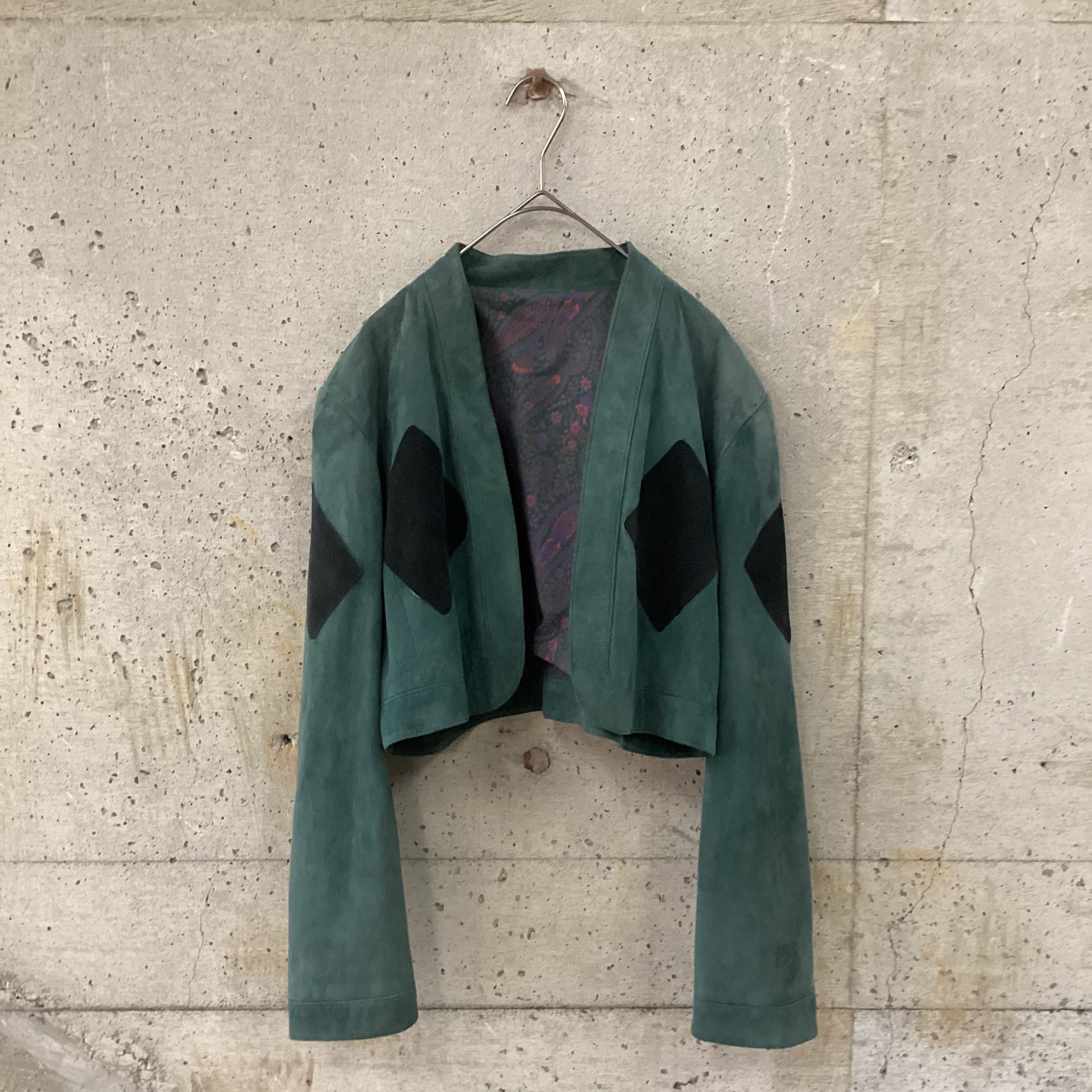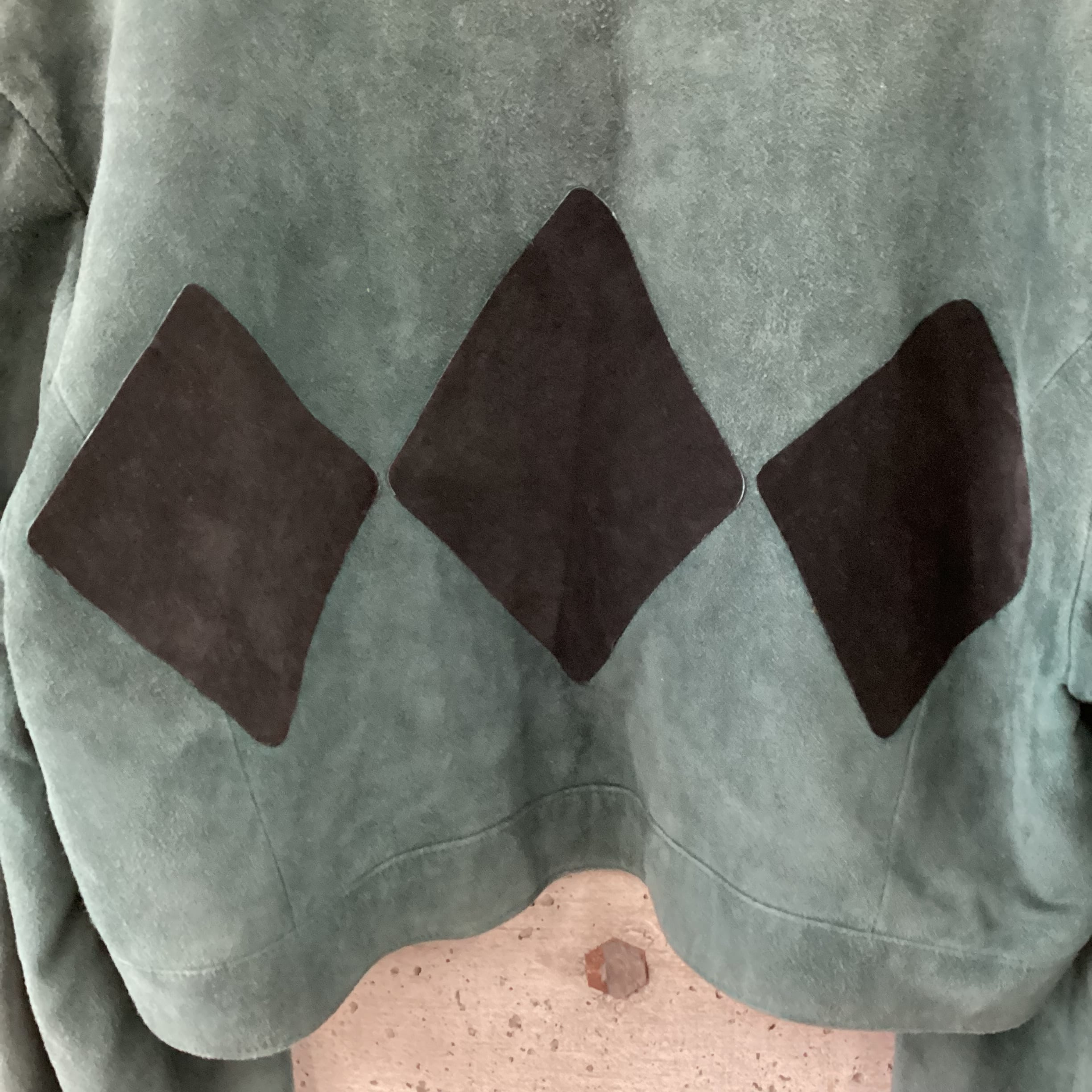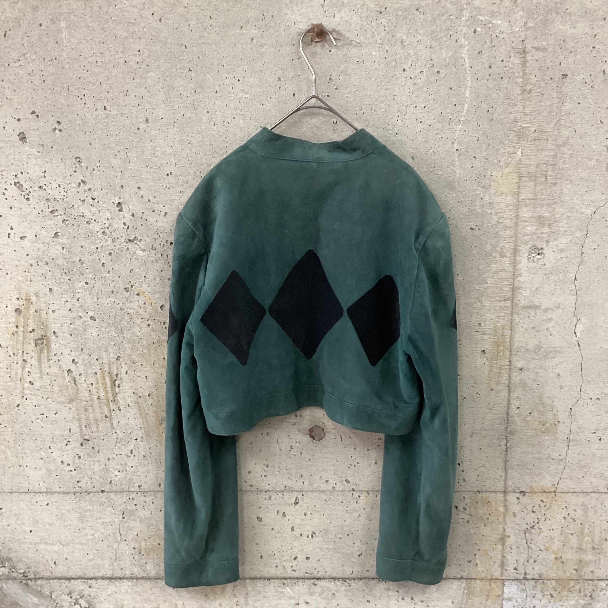 黒のダイヤ型パッチがアクセントになっており、ポップさと深いグリーンの落ち着きがほどよく調和した一着です。