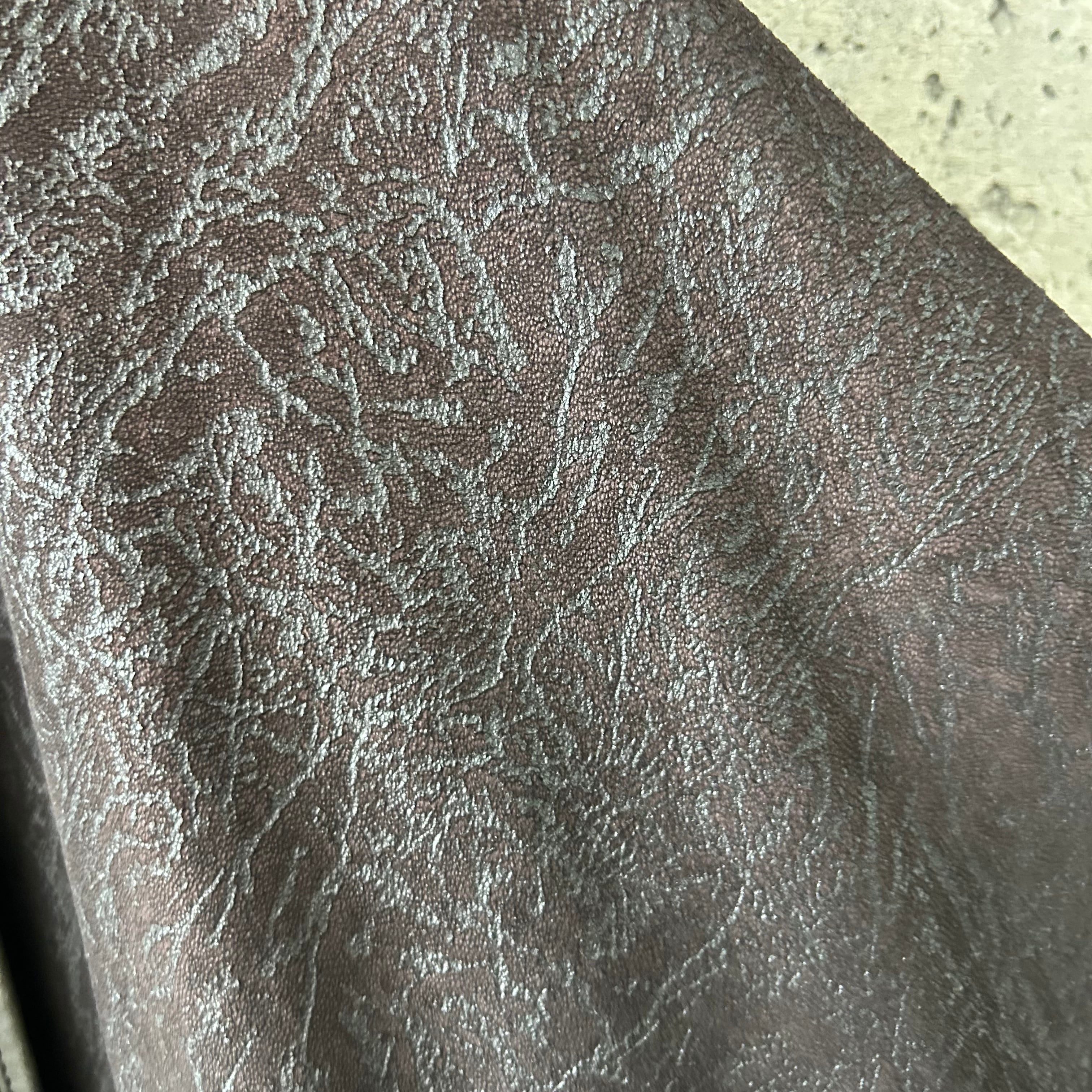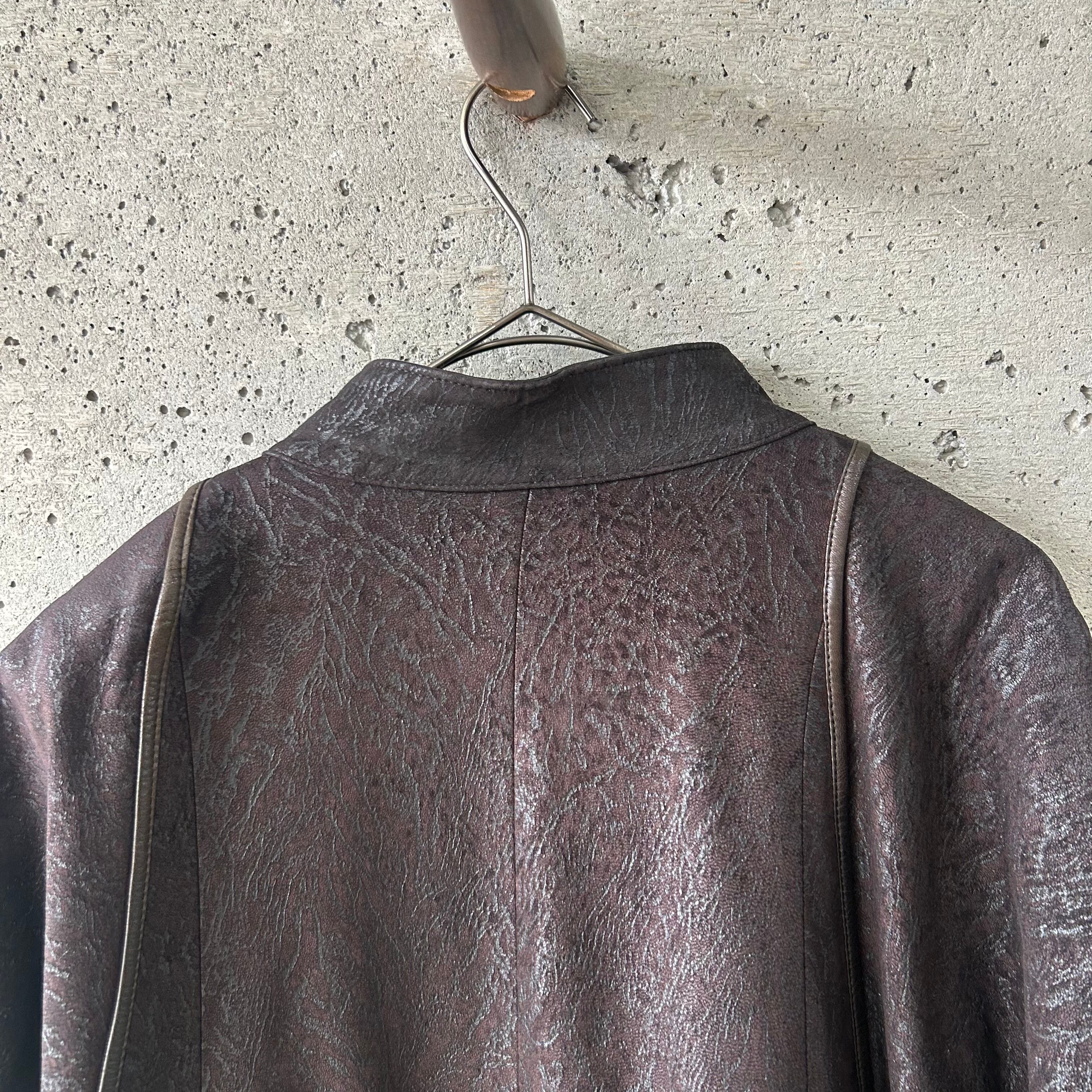 ひび割れのようなデザインが特徴的なレザーコートです。