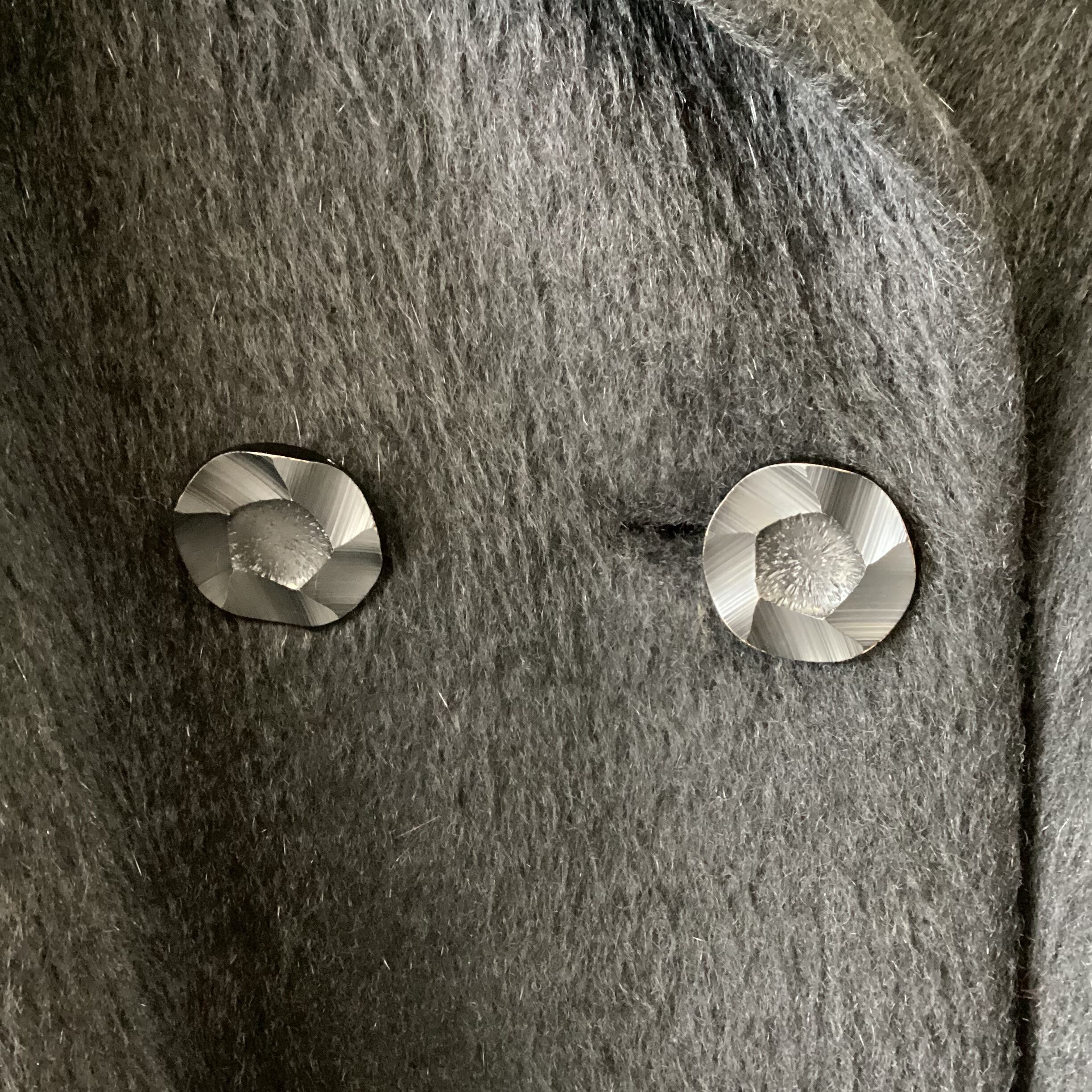 毛足の長い生地に、存在感のある大きなボタンが付いた一着です。