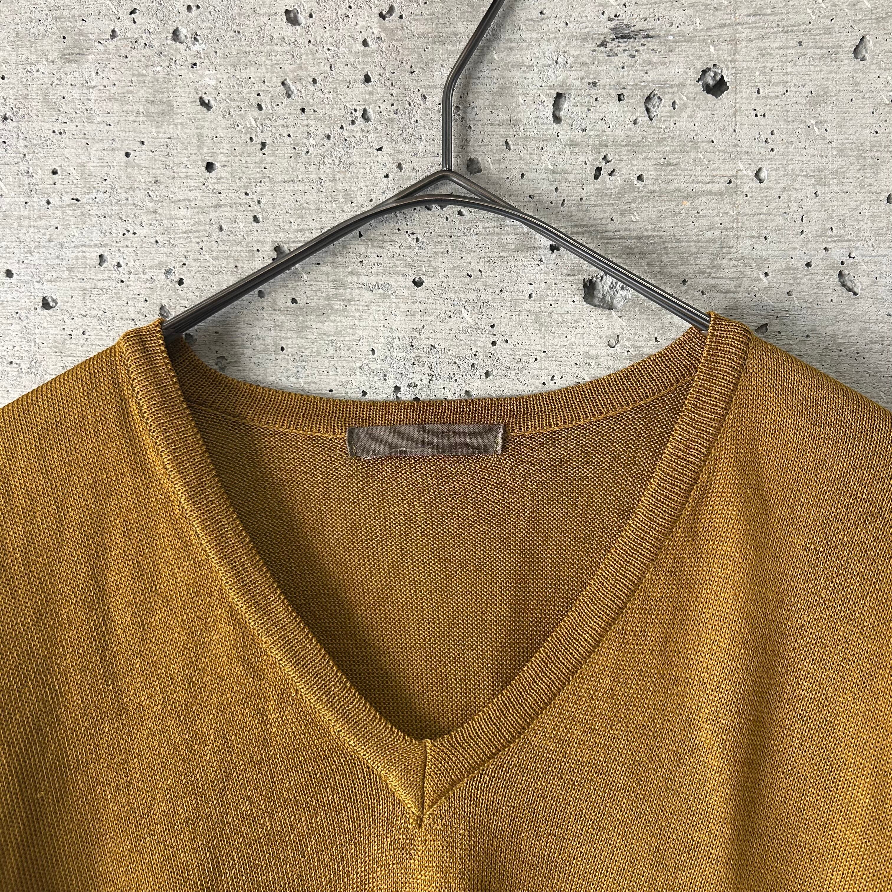 Vネックなので中にお気に入りのシャツを着て、少し見せるなどのコーディネートがおすすめです。