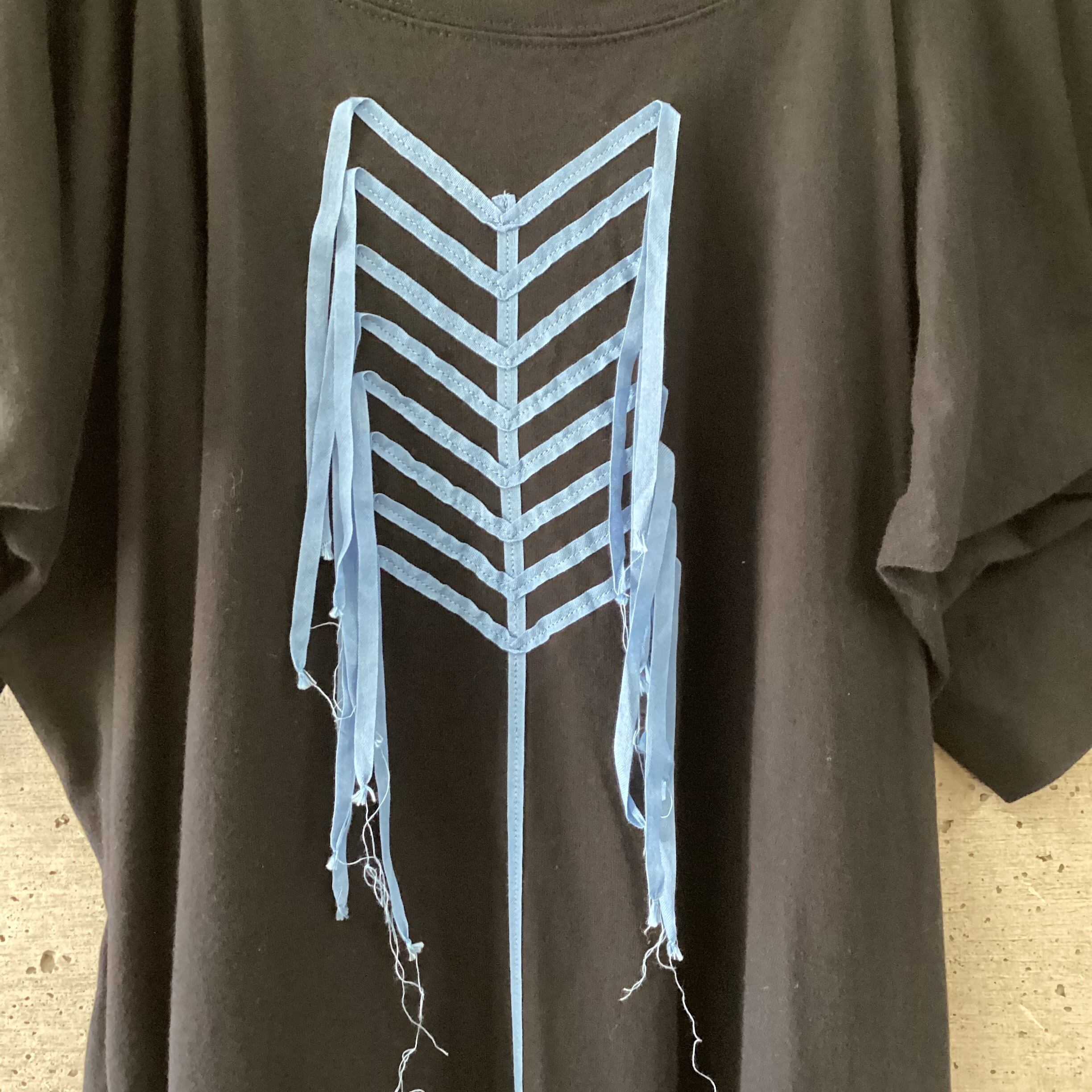フロントには骨のようなモチーフがテープで縫い付けられており、ブランドらしい独特の世界観を感じられます。