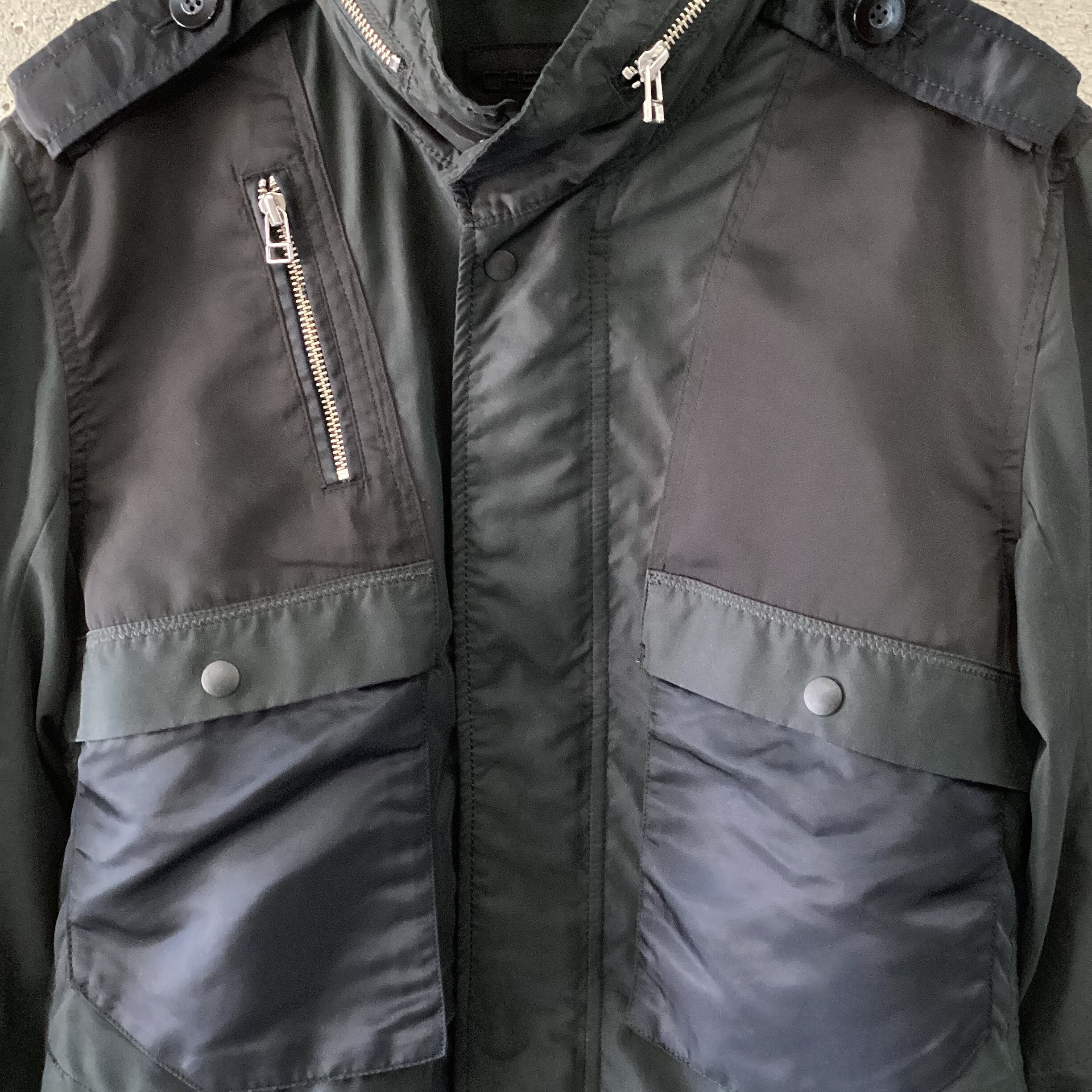 All black mixed material jacket