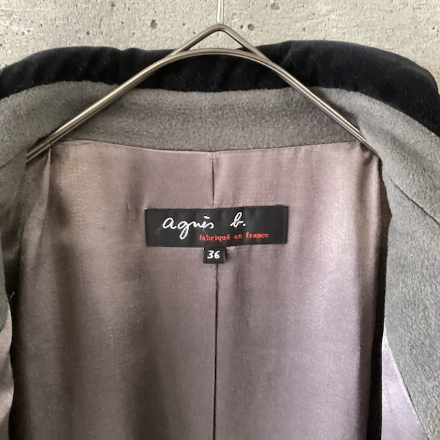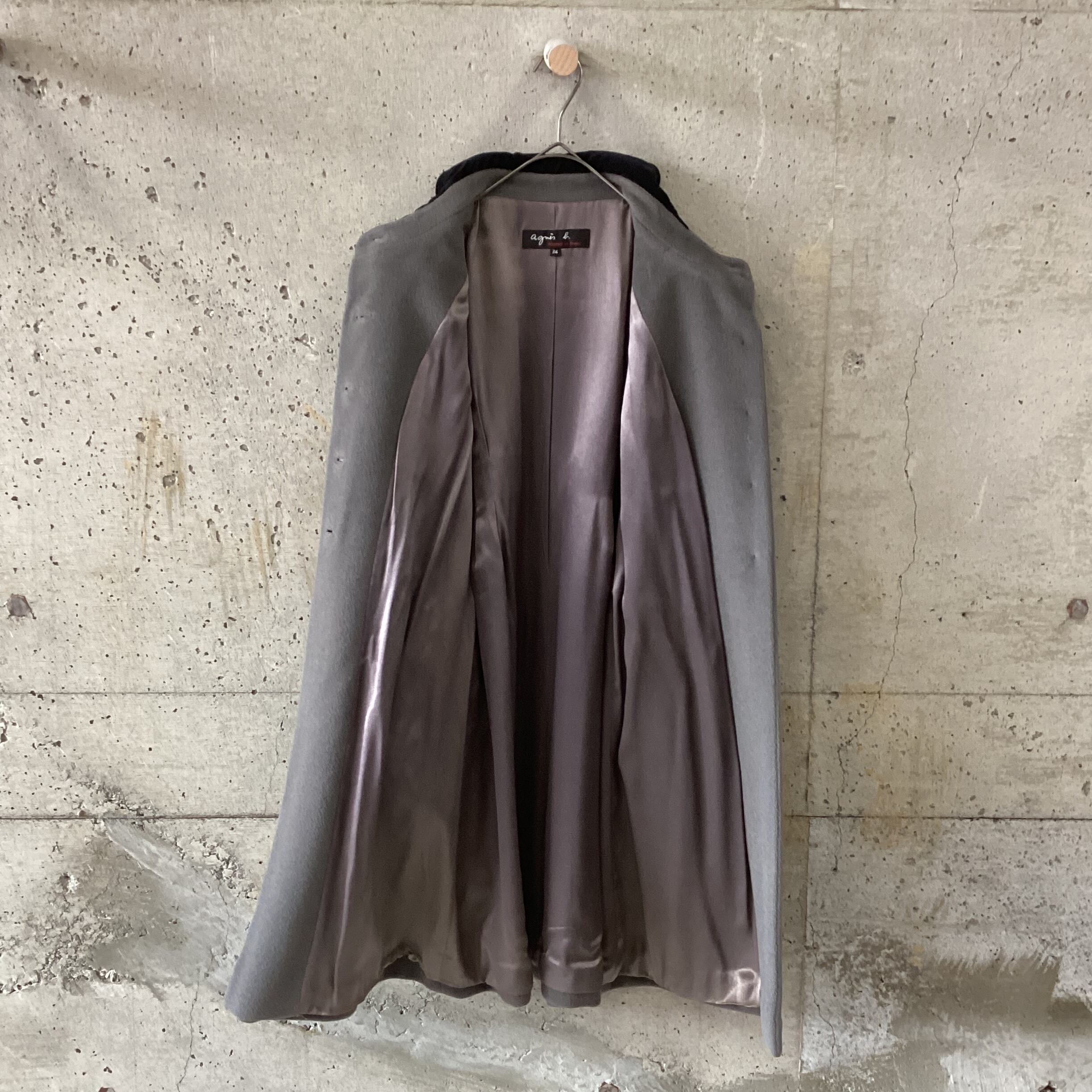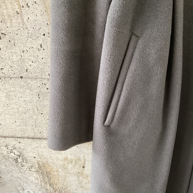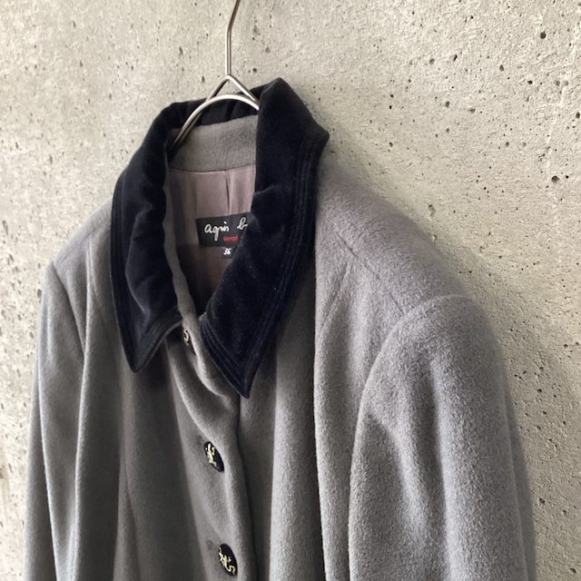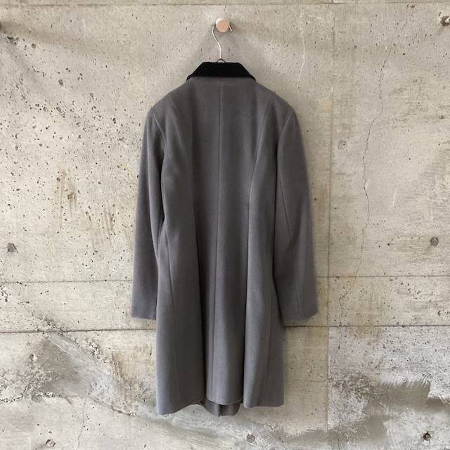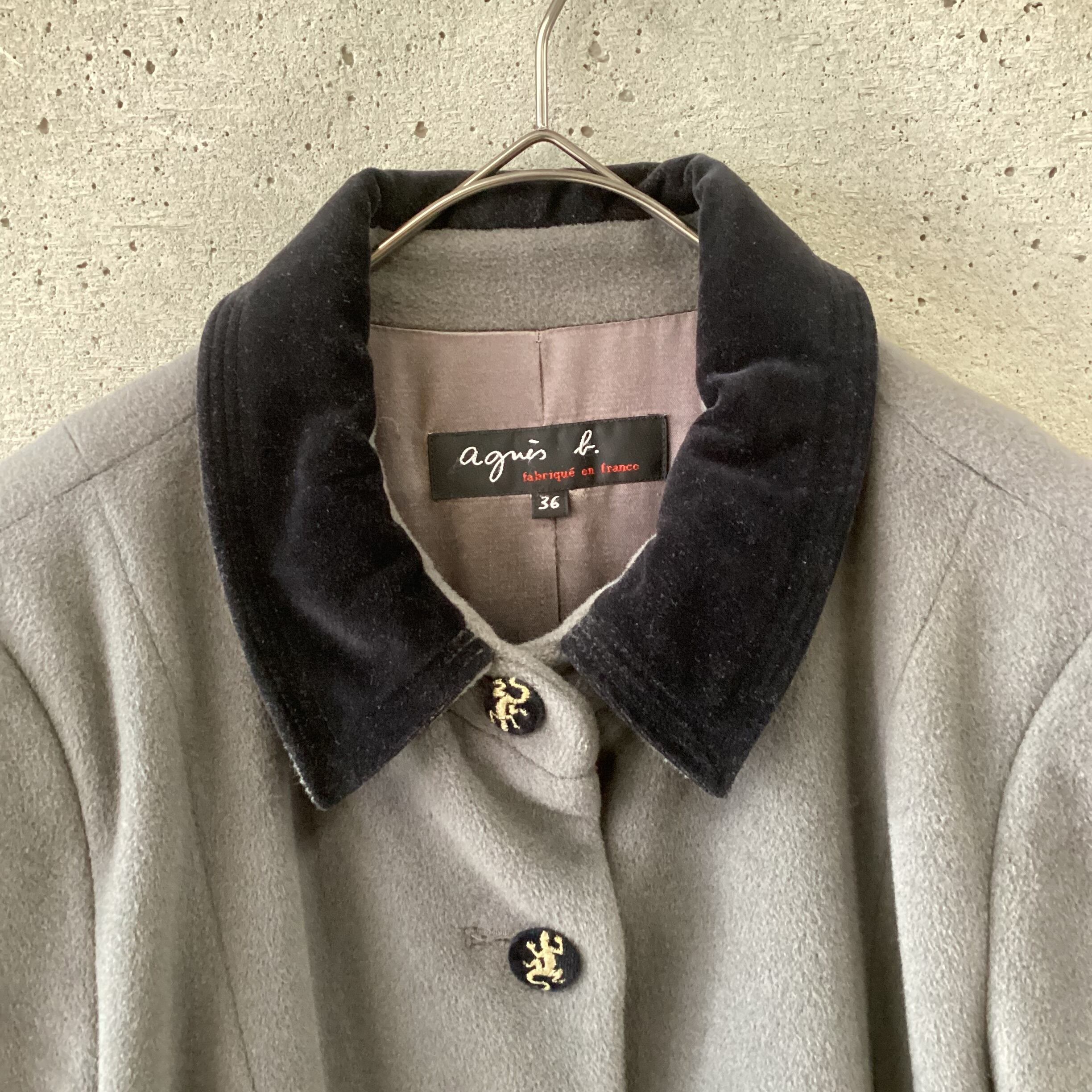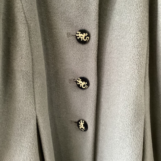 ベロアの襟と、トカゲモチーフのボタンがクラシカルな雰囲気のウールコートです。
