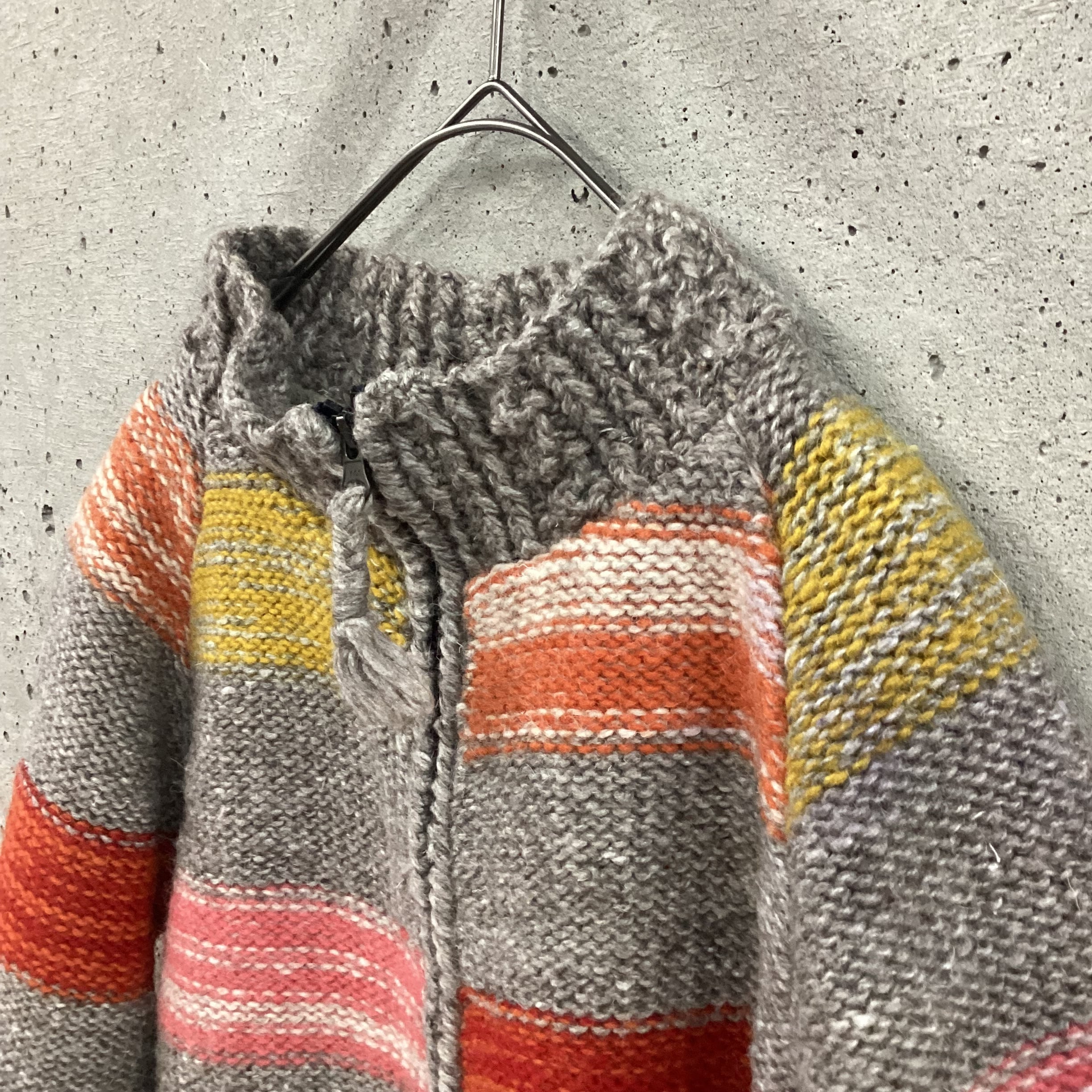 ダブルジップになっていて、上の持ち手には毛糸で編まれた可愛らしい持ち手が付いています。