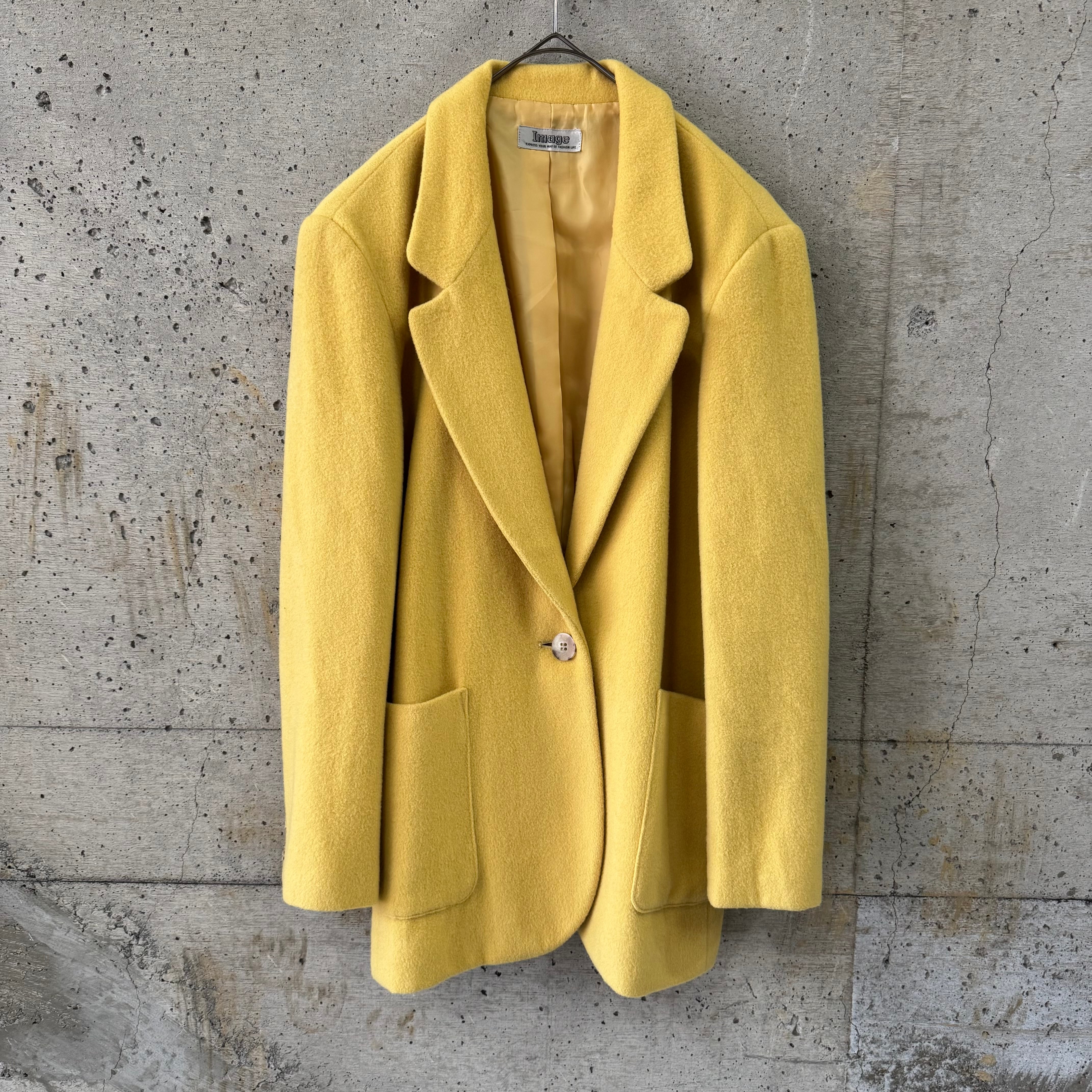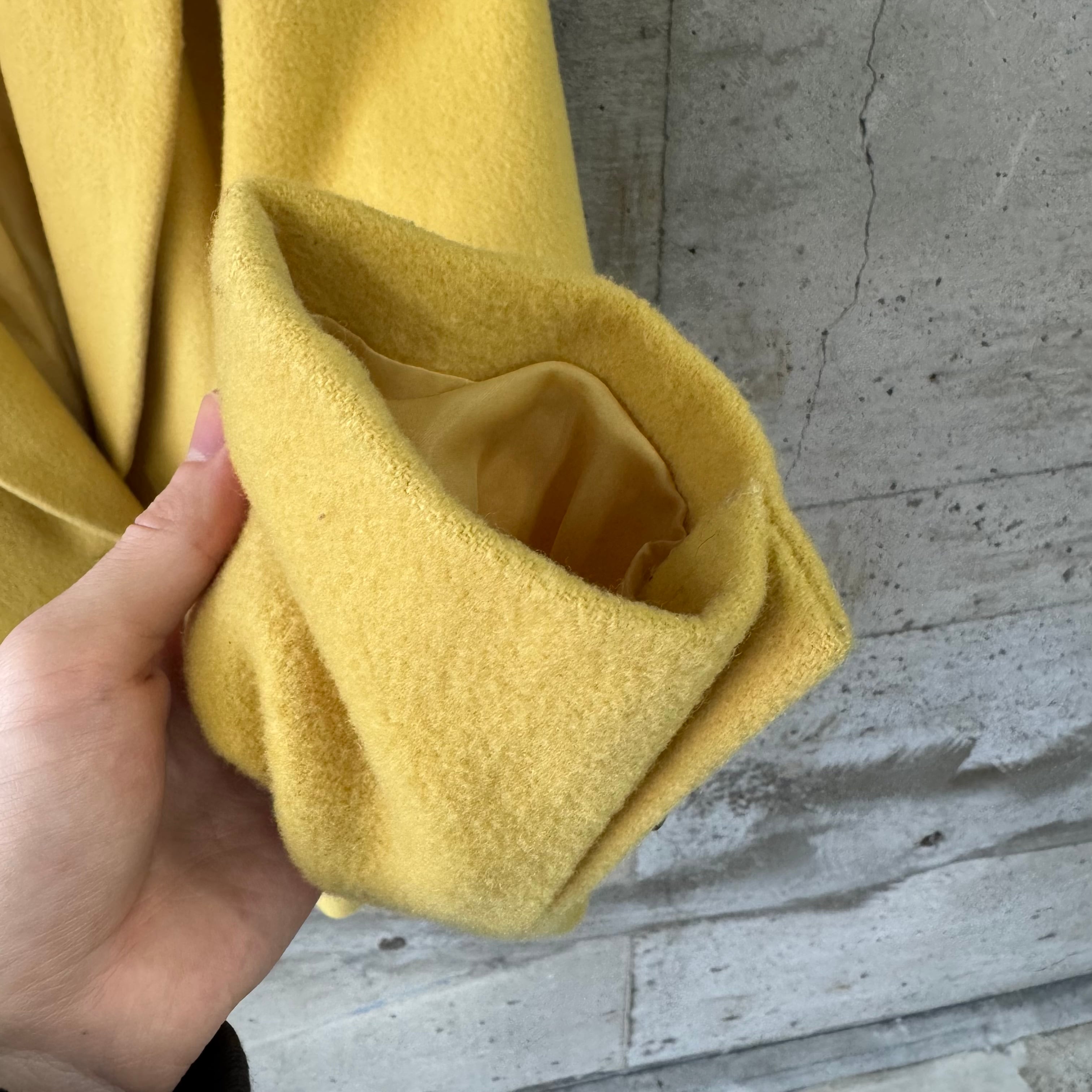 ひよこ色のような淡い黄色と、起毛したウール生地の質感がよくあい、綺麗でありながら可愛らしい雰囲気も醸します。