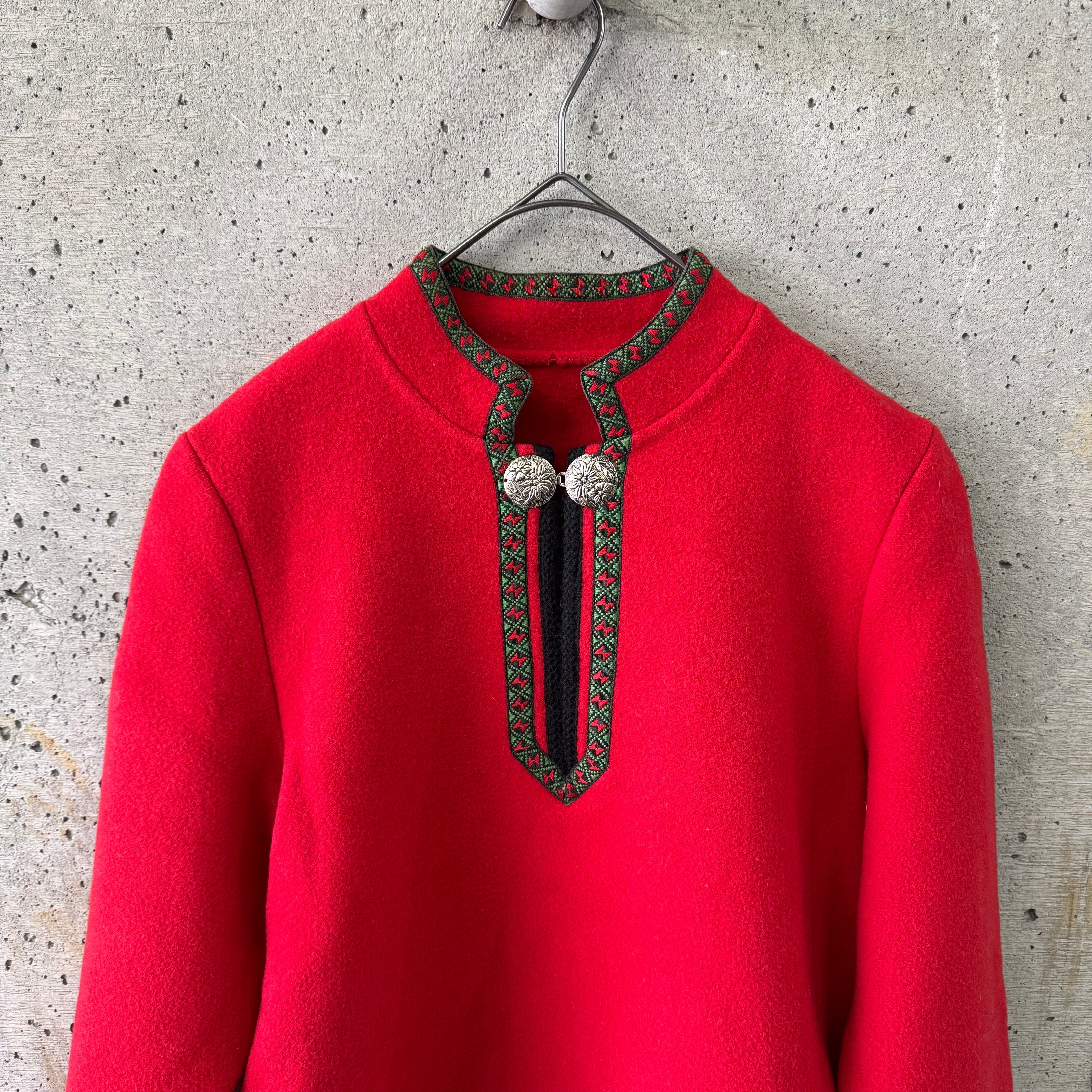 真っ赤な生地がとても可愛く、黒のサーキュラースカートなどと合わせるのがおすすめです。