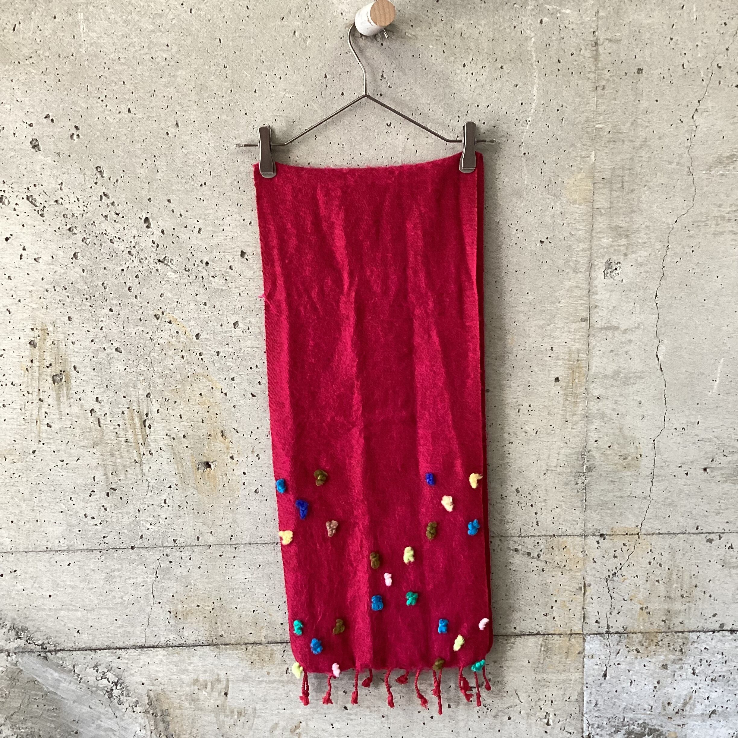 ビビットな色味がとても可愛く、端の方にはカラフルなポコポコが付いていてさらに可愛らしい雰囲気を醸します。