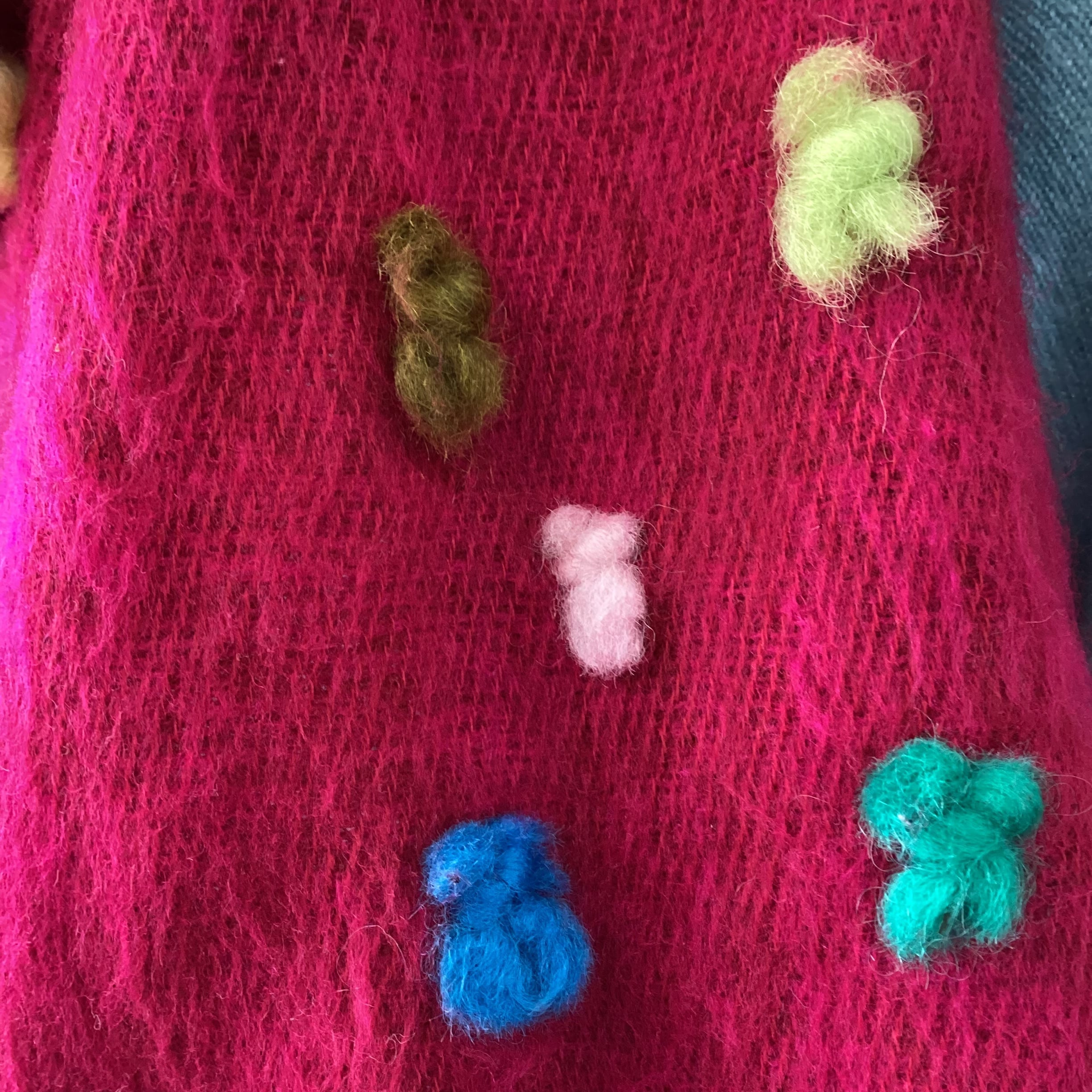 Magenta pom-pom muffler