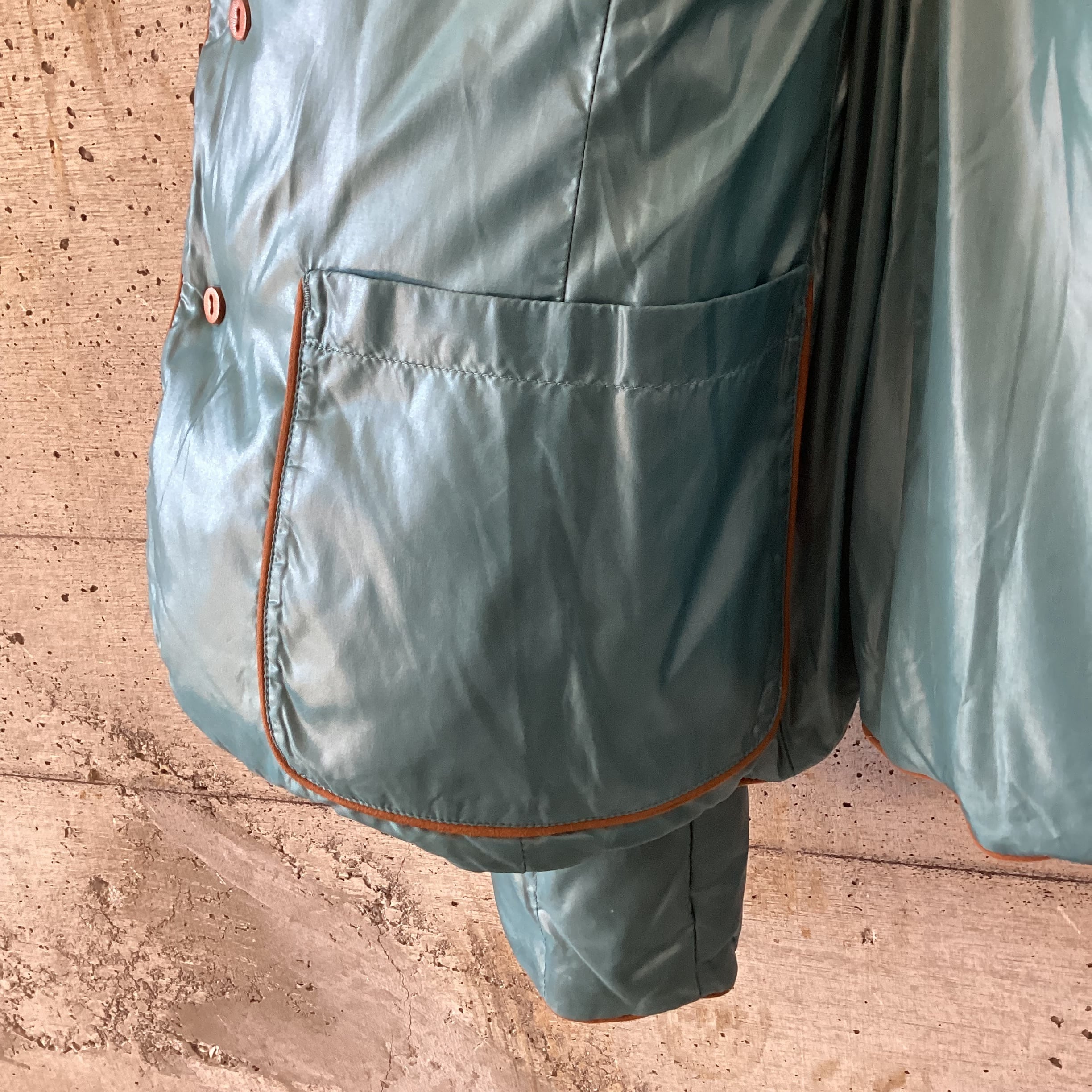 ウッドボタンでブラウンとの統一感があり、温かみのある印象に、幅広い年代で楽しめる1着です。
