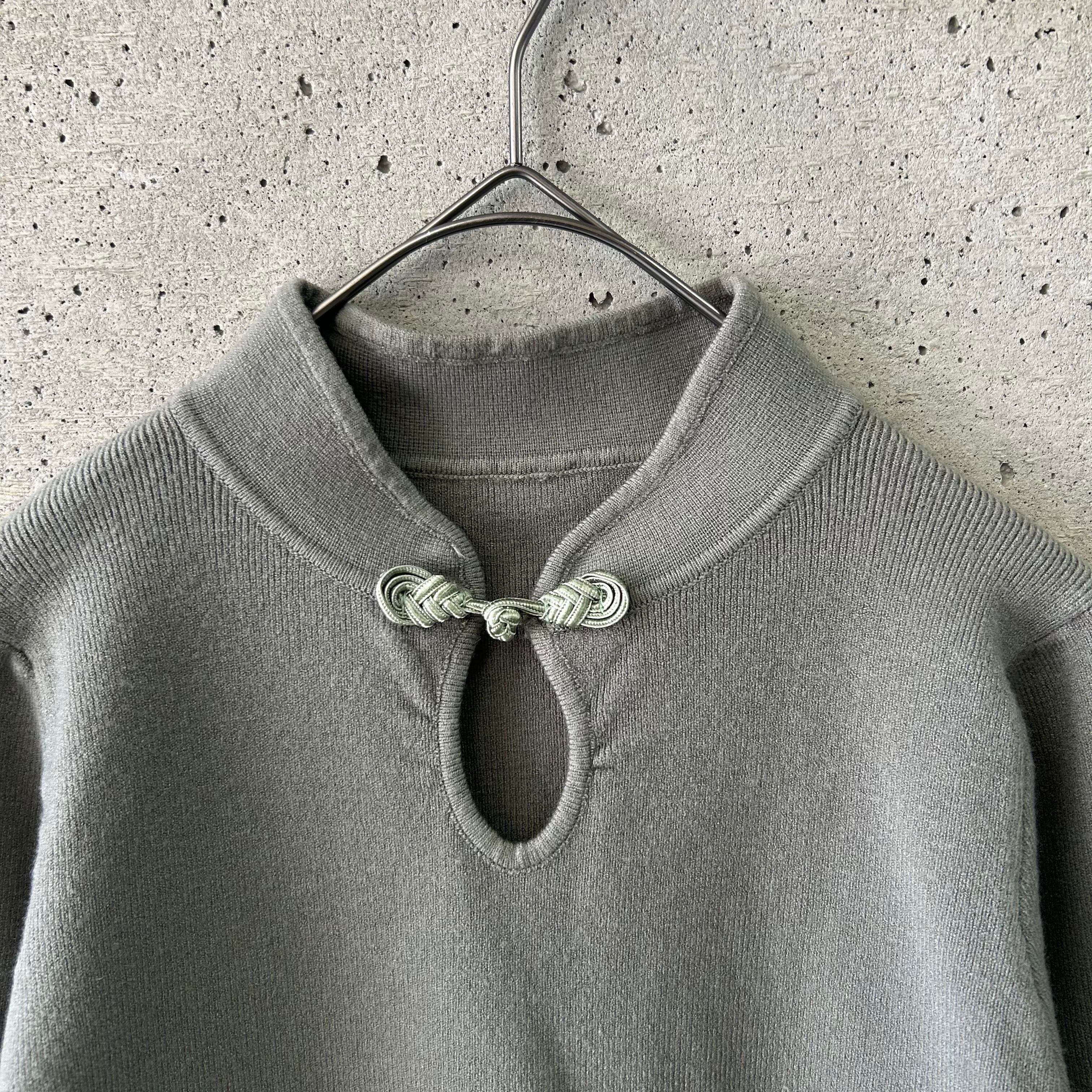 スタンドカラーとチャイナボタンが綺麗めな雰囲気を醸します。