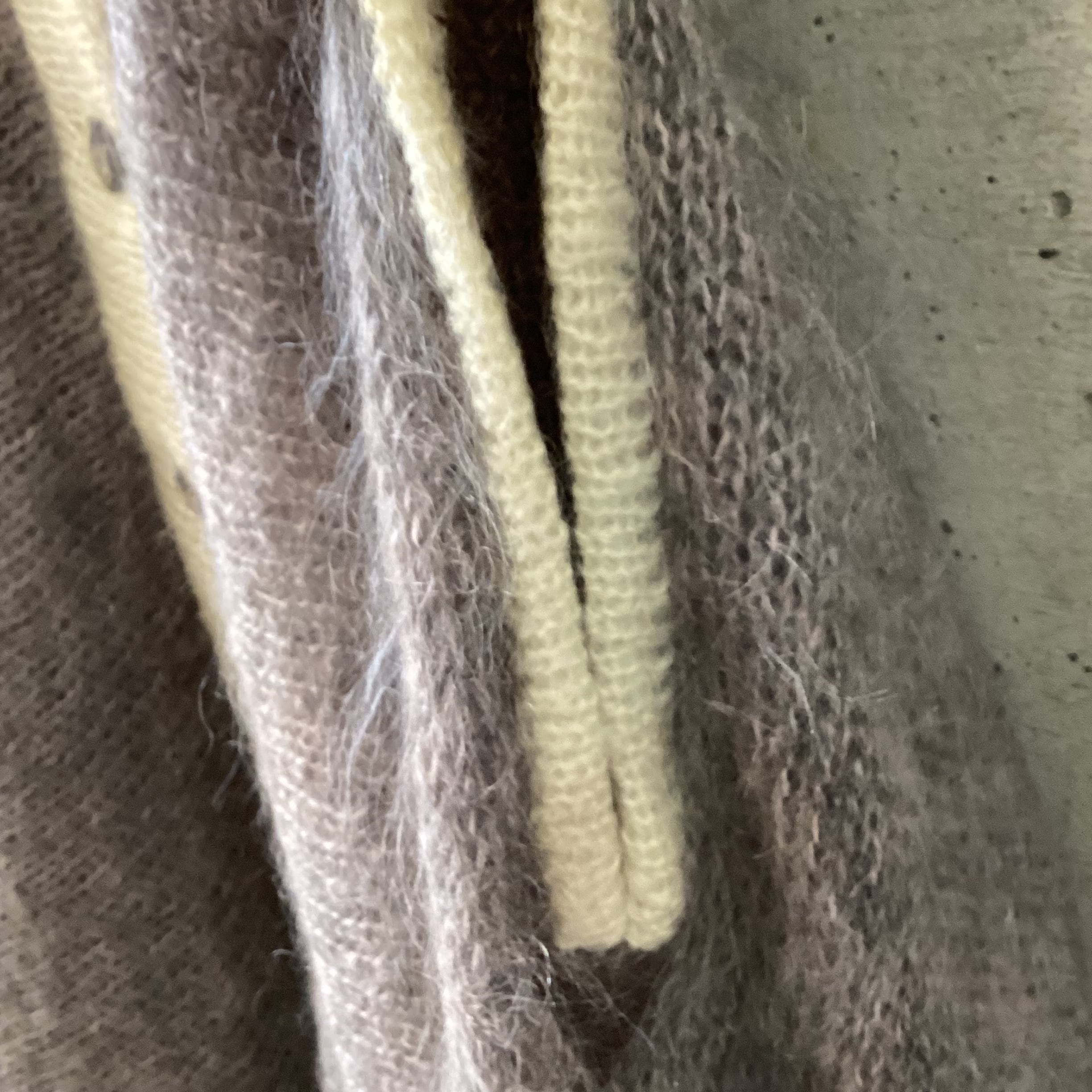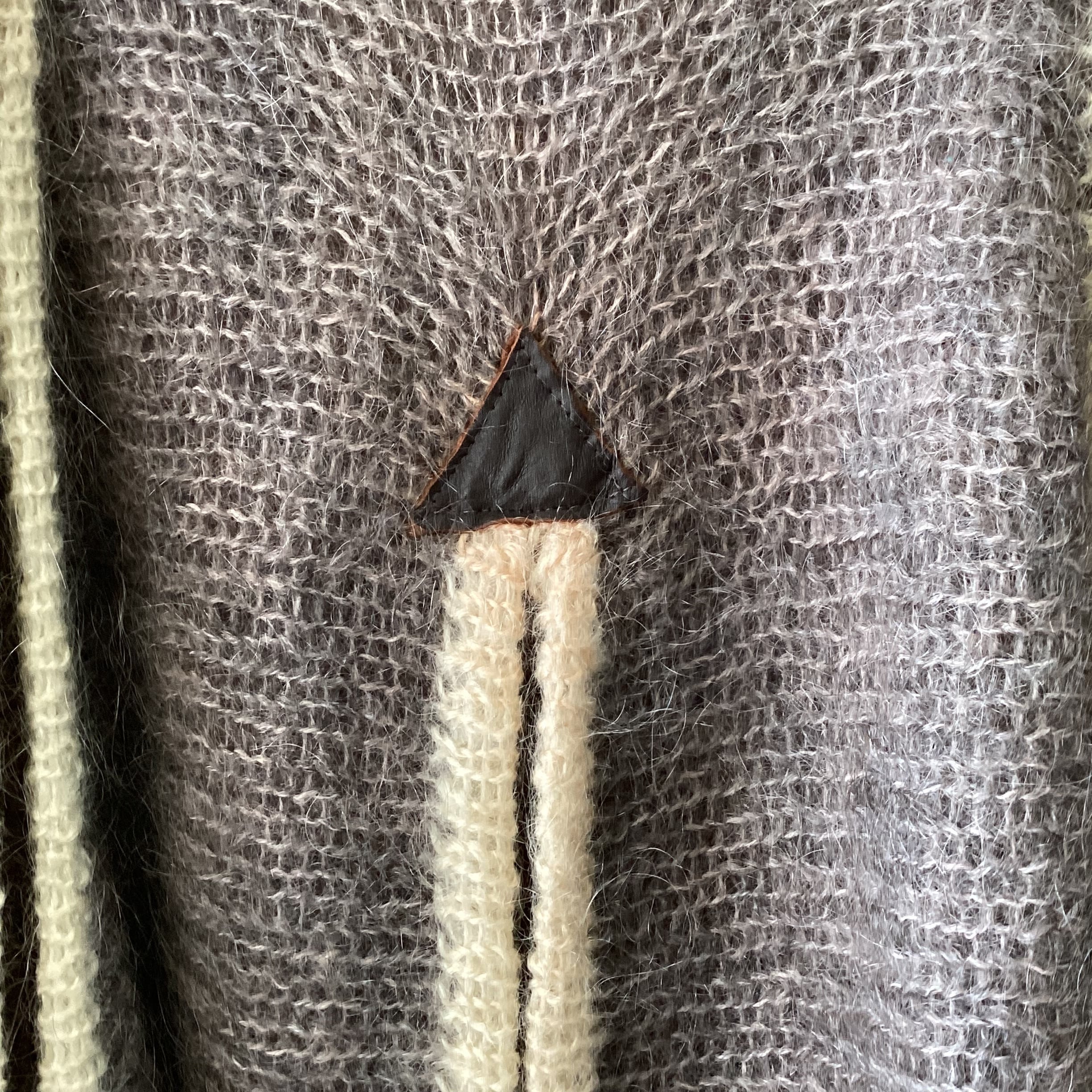 袖にスリットのようなものがついていて、中にレザーが仕込まれているので動くたびにレザーが見えるとても素敵なデザインです。