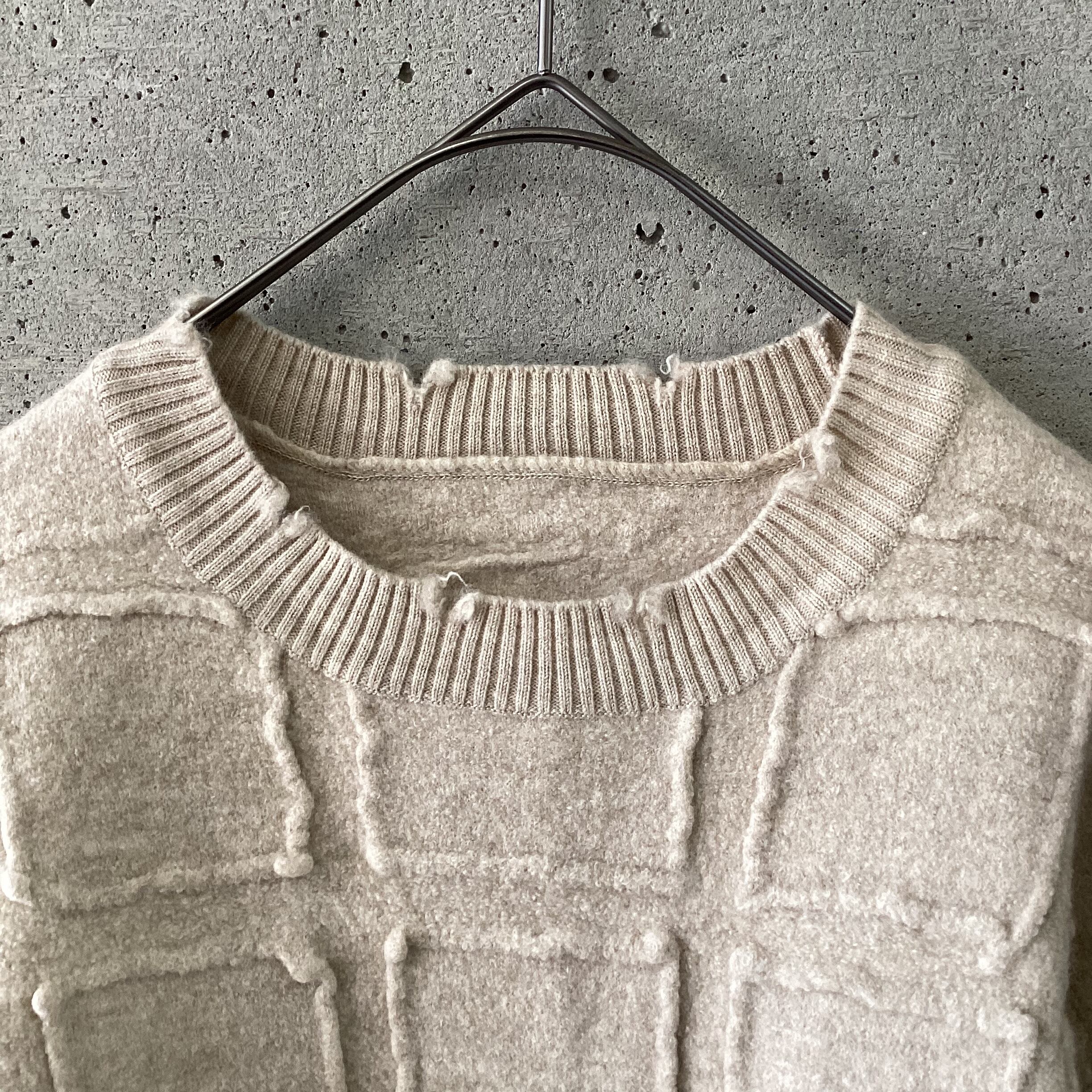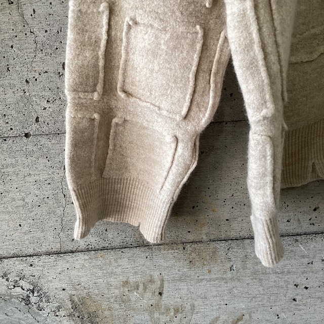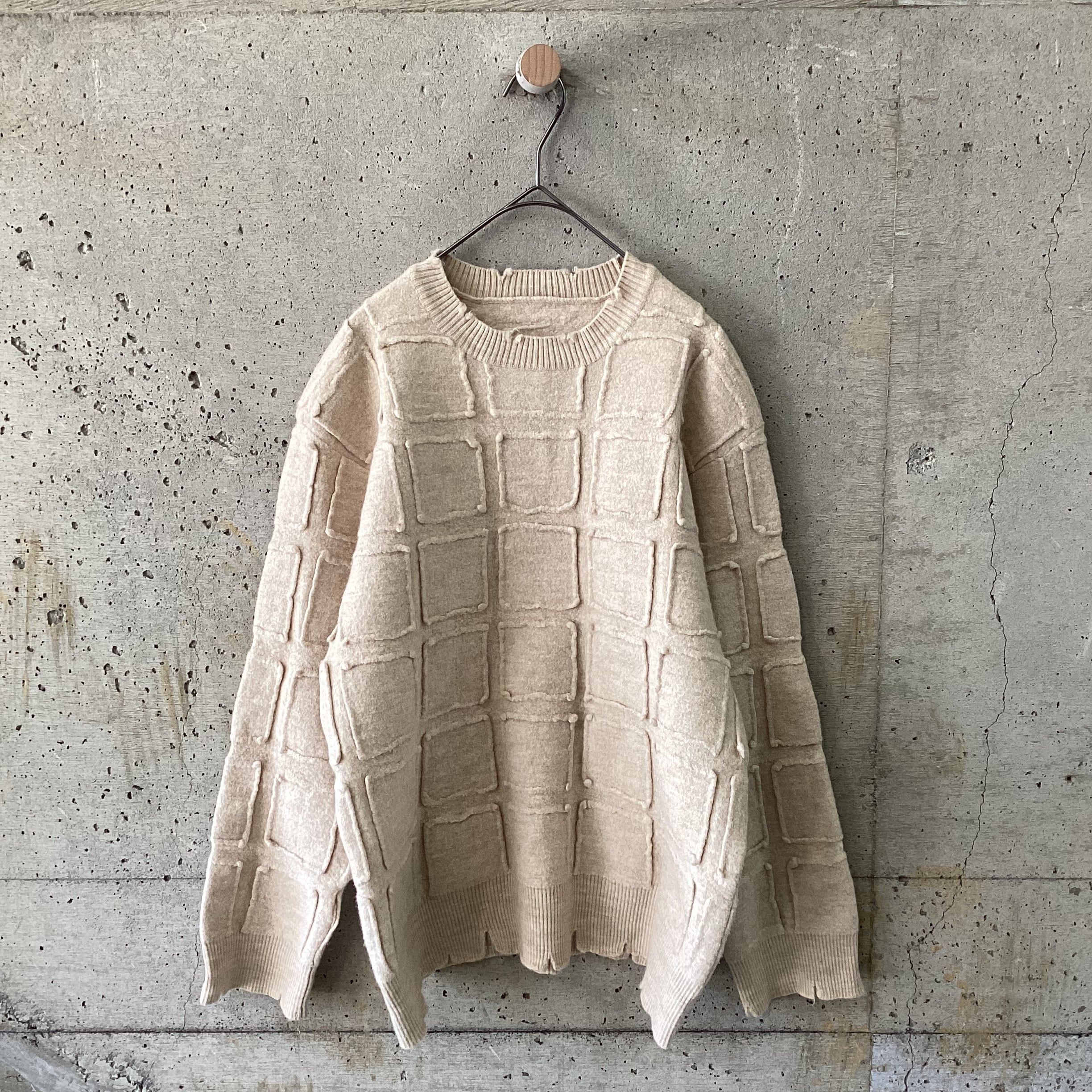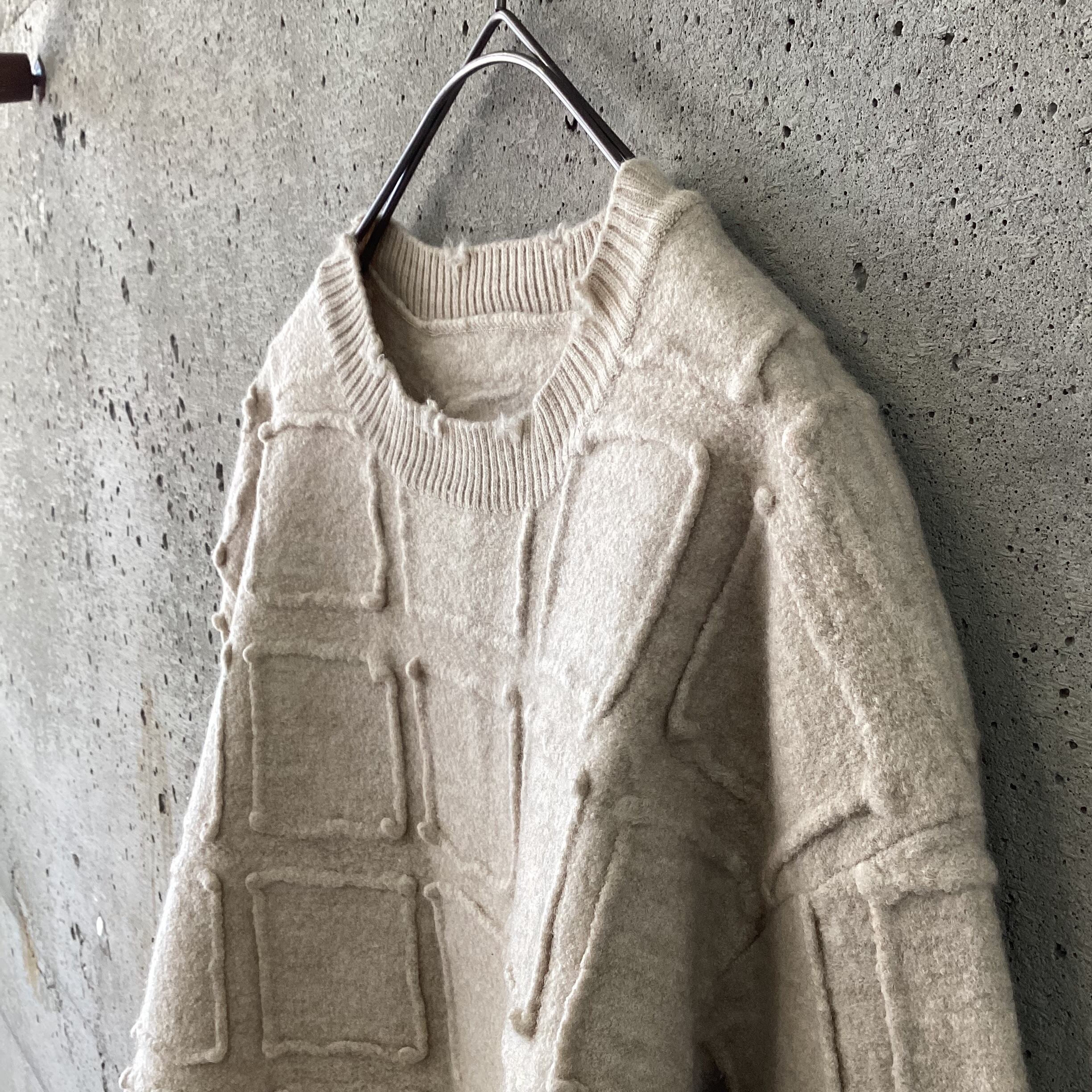 縮絨加工で立体的なスクエア柄を出したニットです。