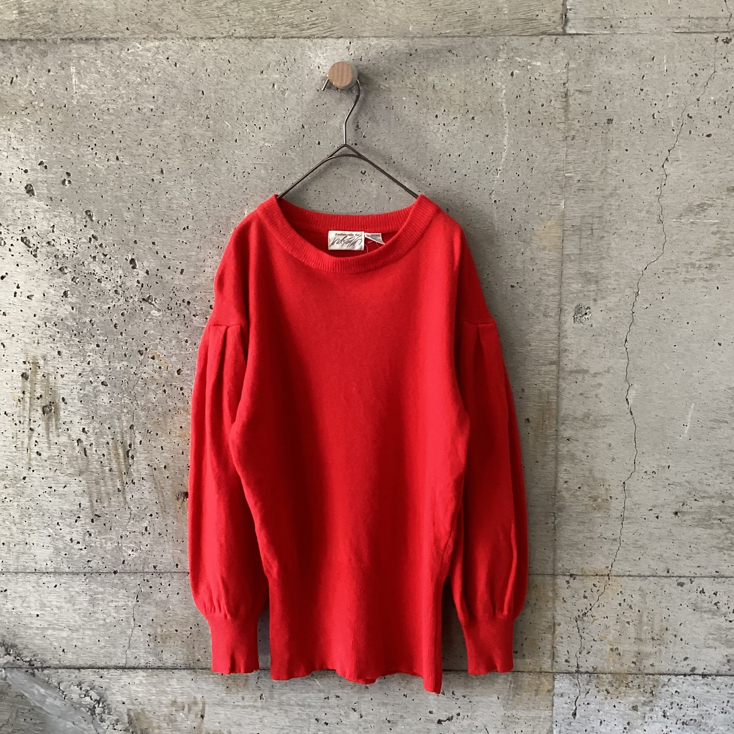 Red tuck volume sleeve knit