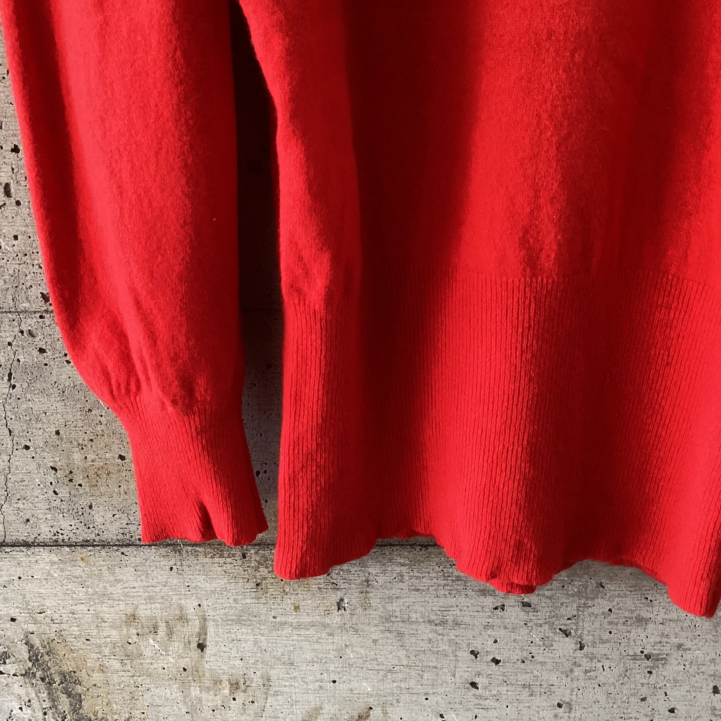 発色のきれいな赤色が印象的なニットです。