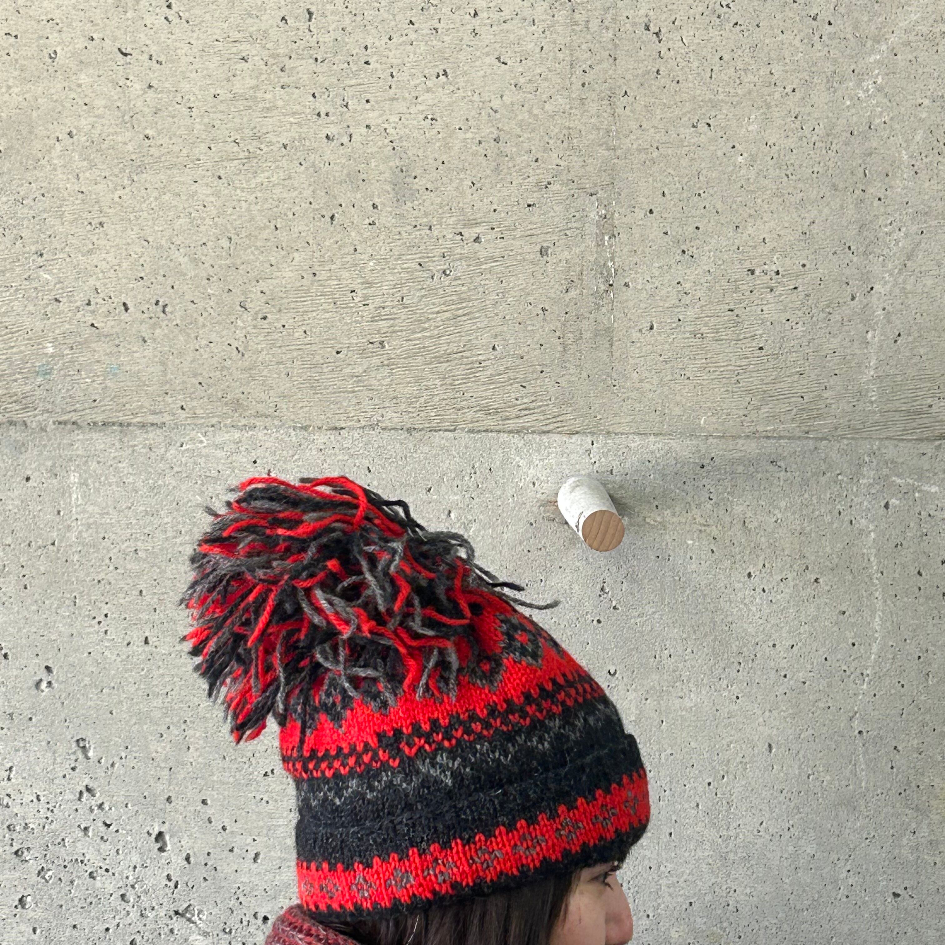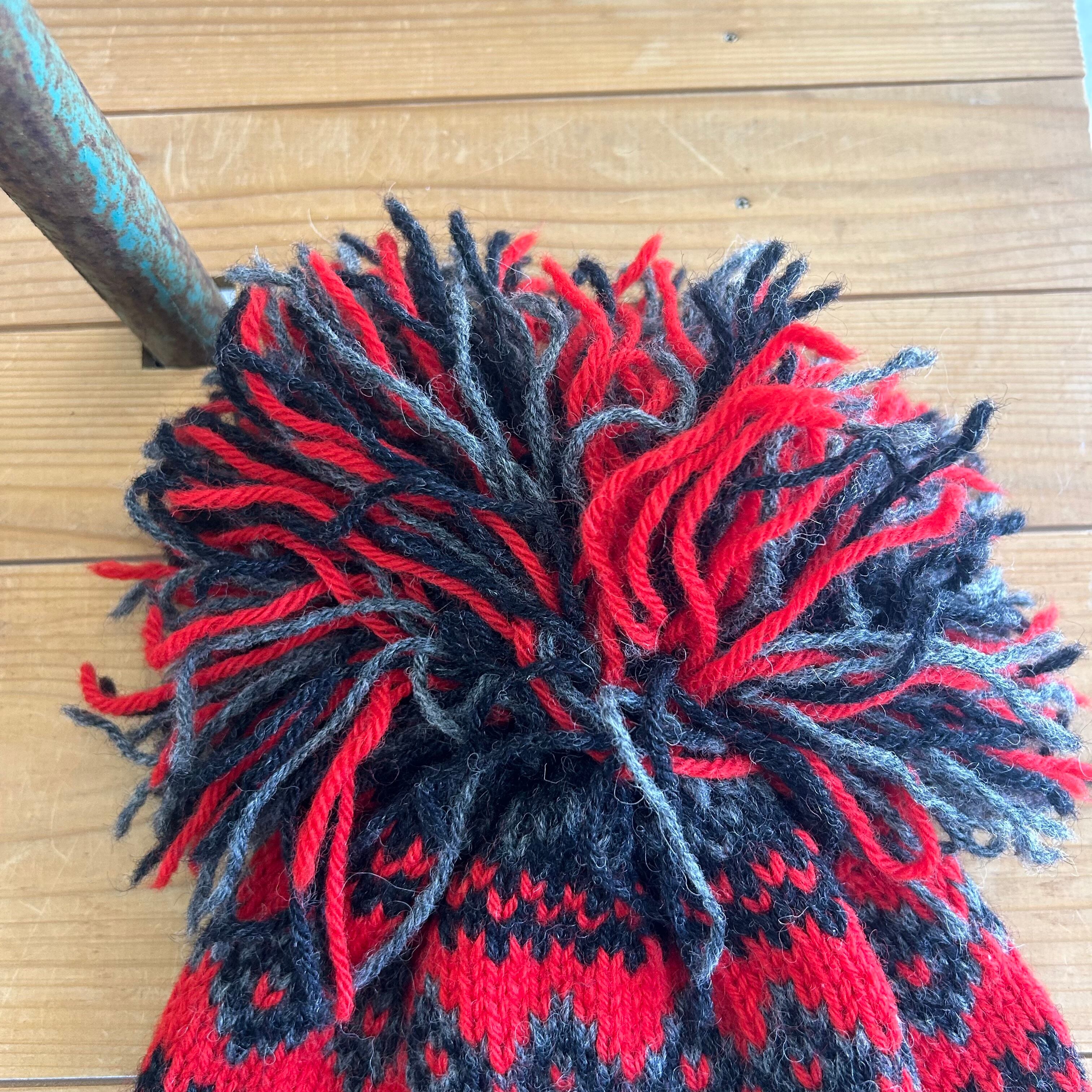 Large pom-pom knit hat