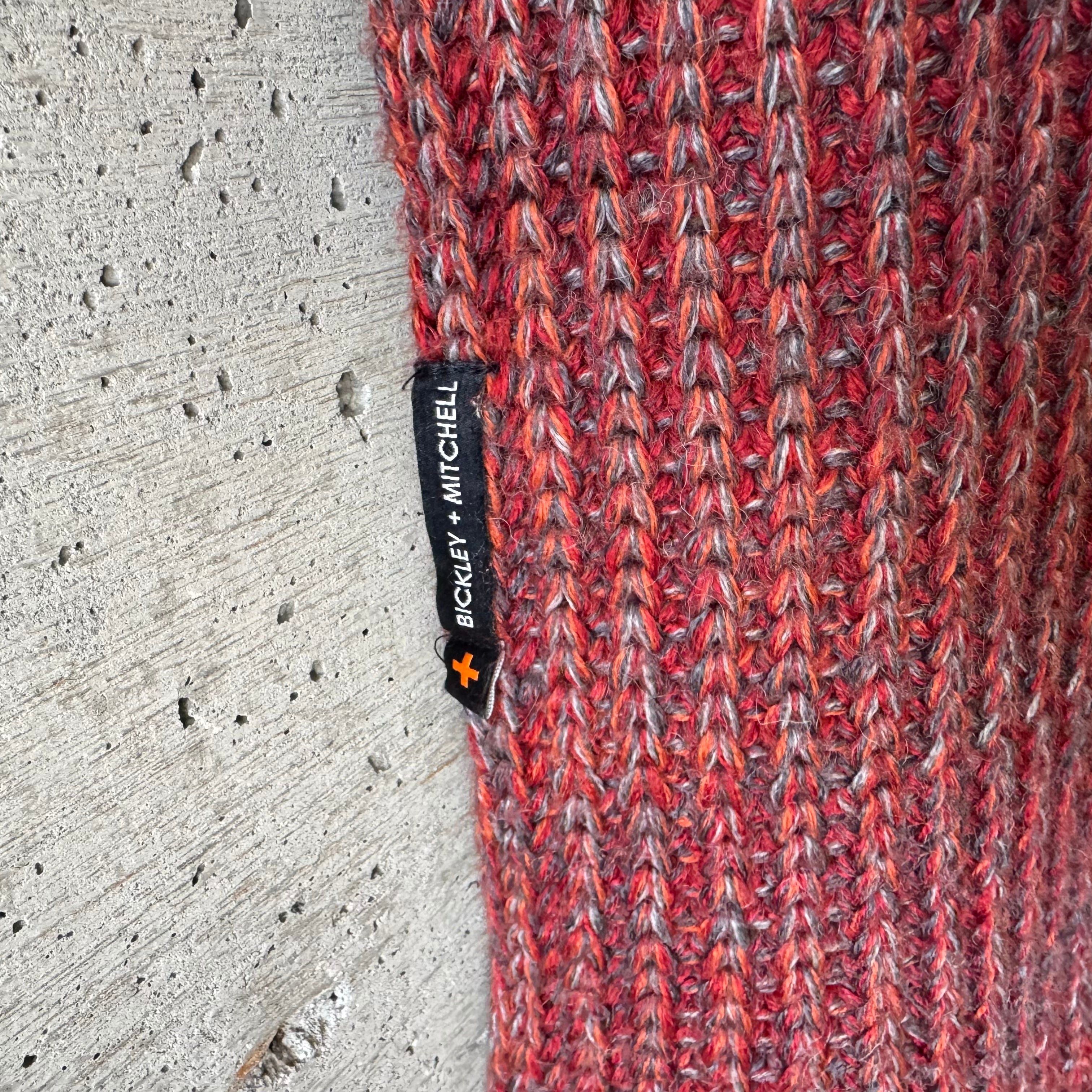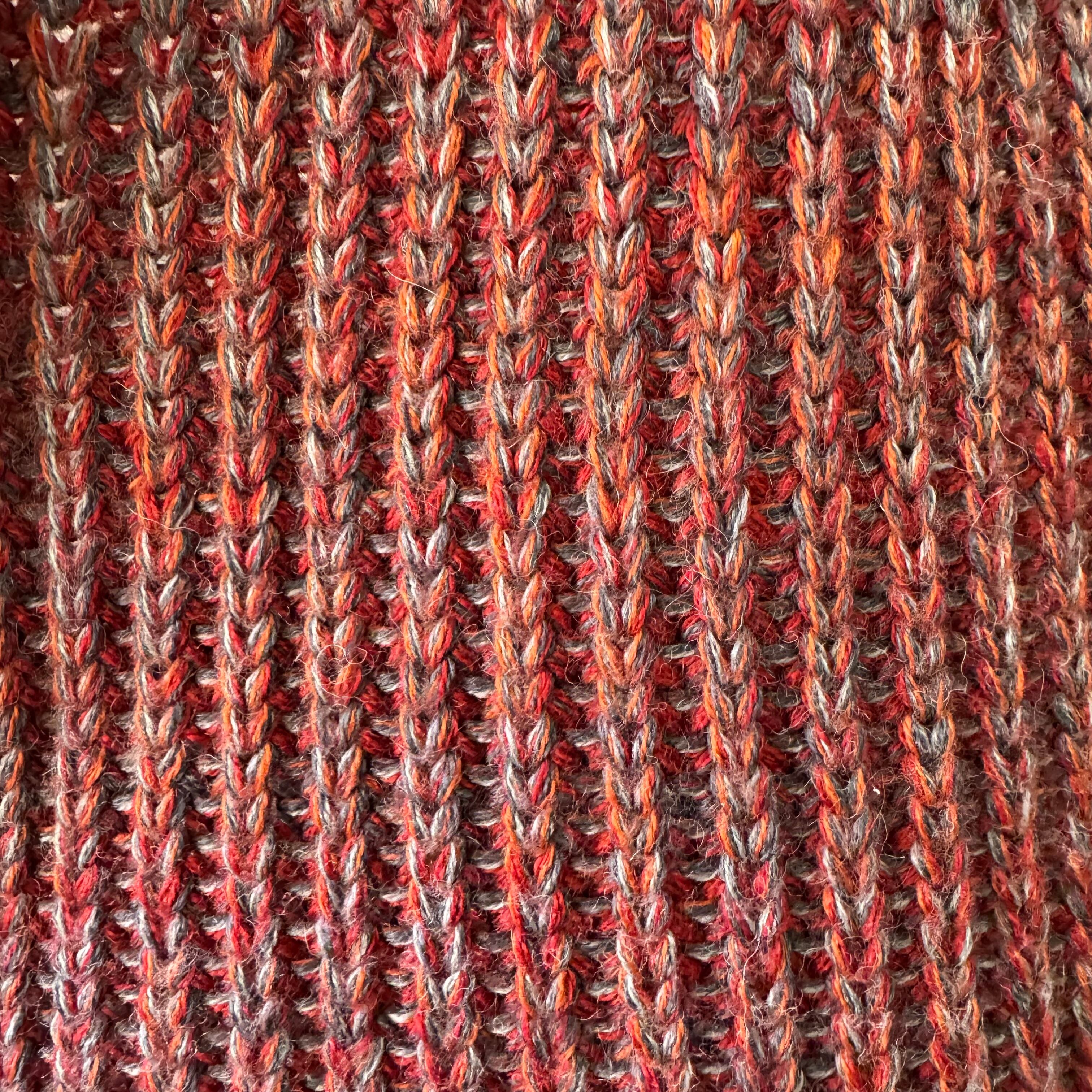 赤とグレーのミックス糸は幅広い年代で巻きやすく、おすすめなアイテムです。