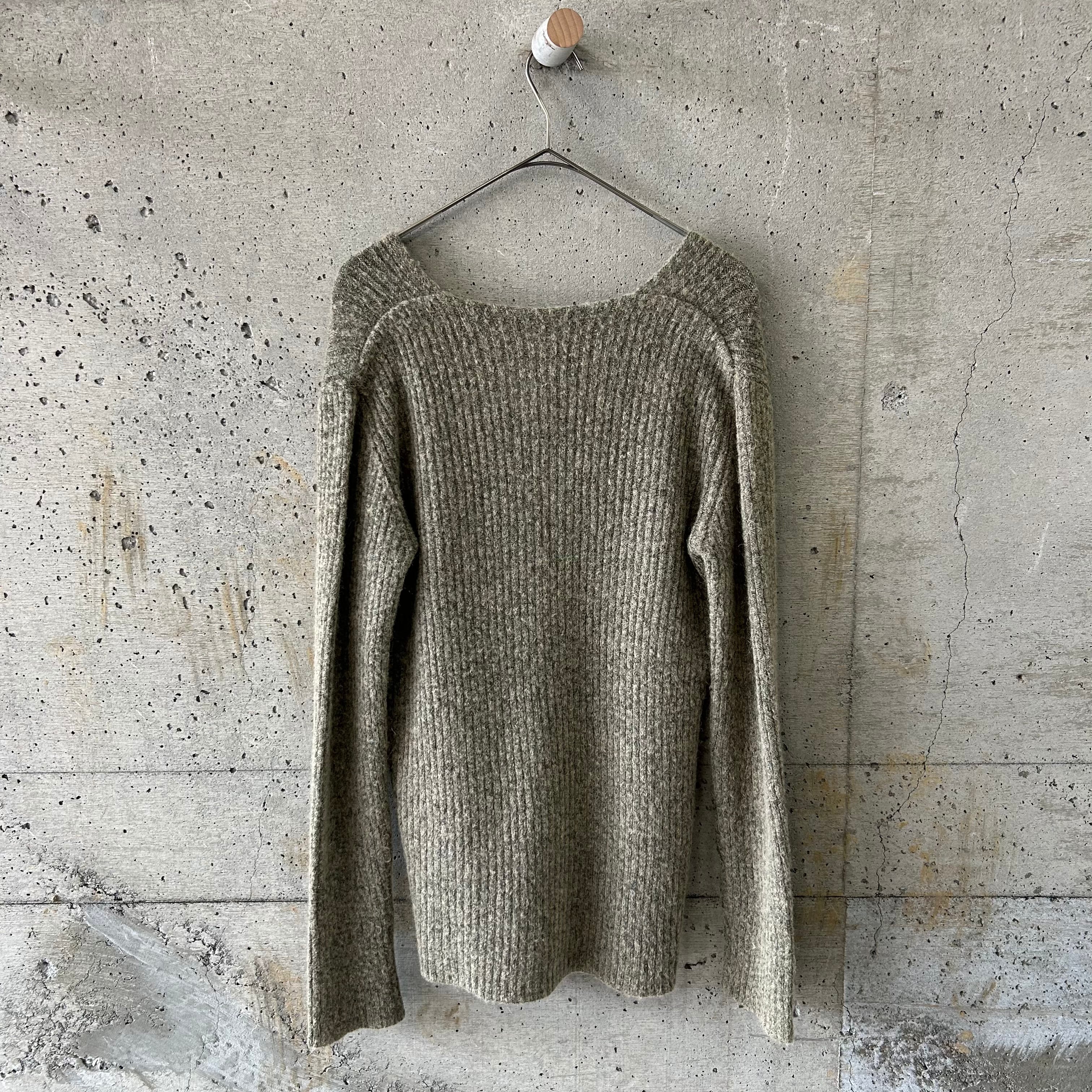 Grey V-neck mohair knit