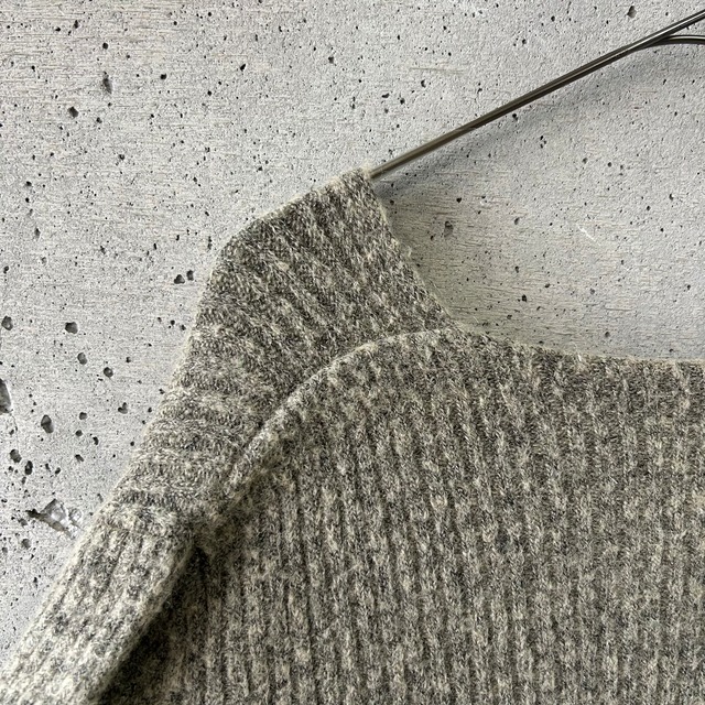 このニットは深めのVネックと長めの裾、袖が特徴的で、Sサイズ表記ですが伸縮性も身幅もあるのでたくさんの人にフィットします。