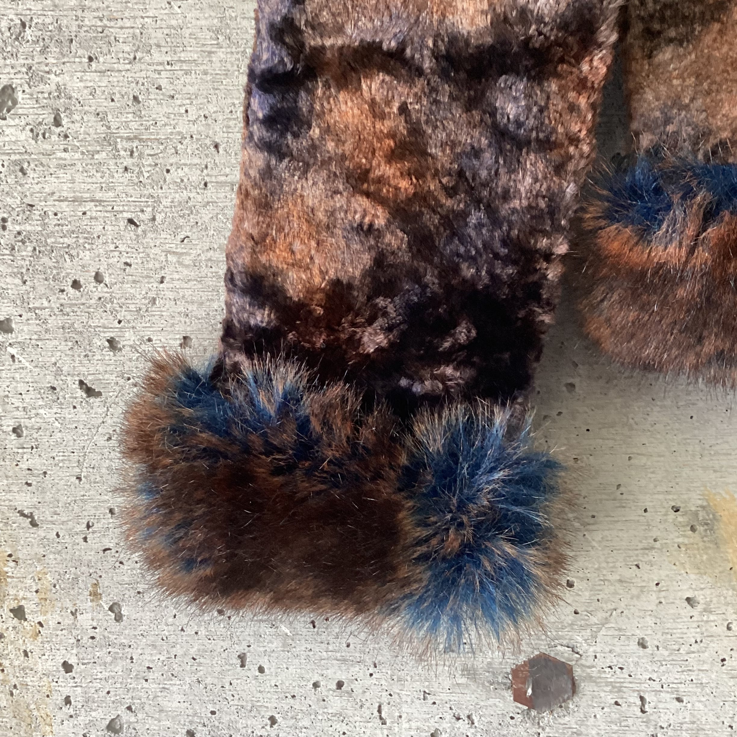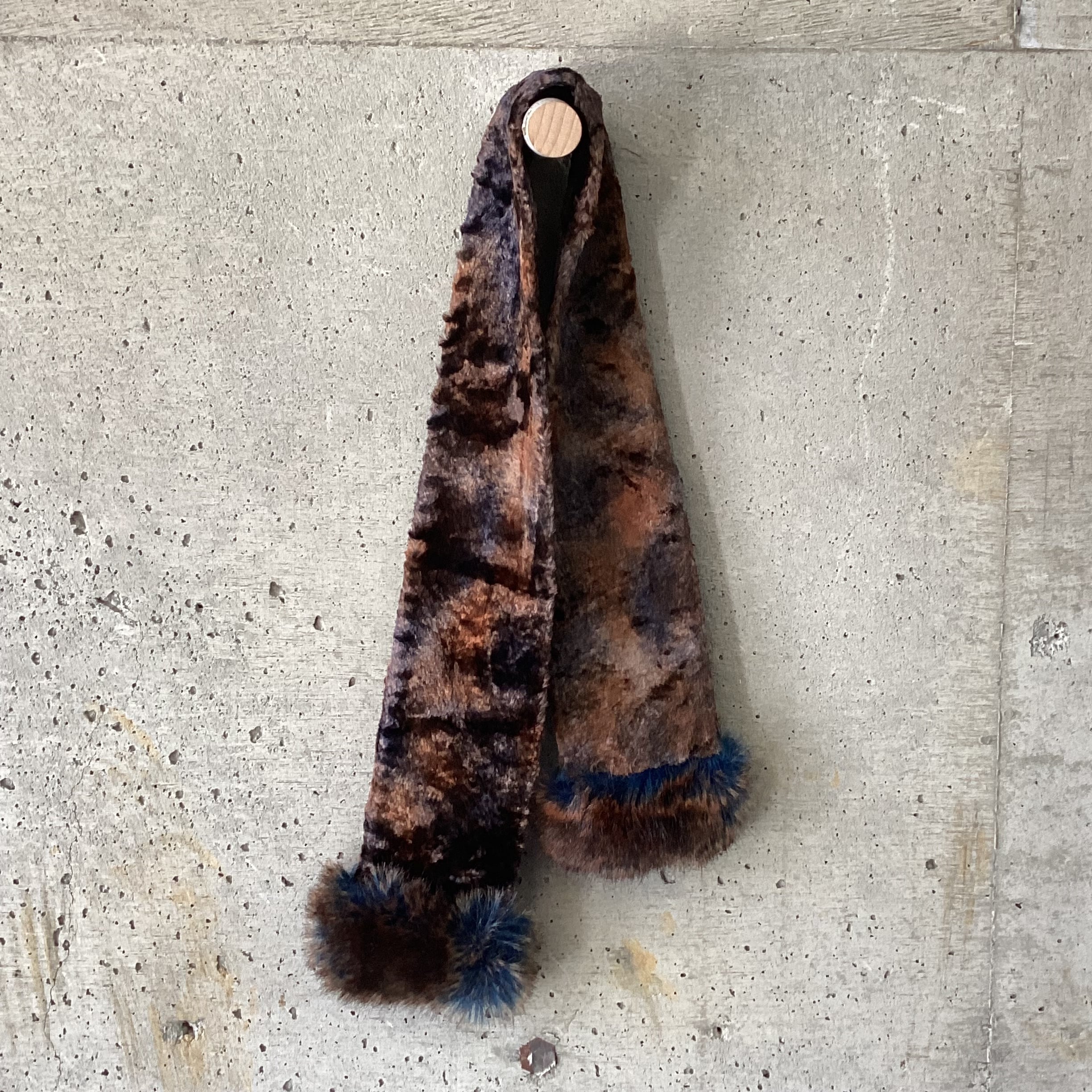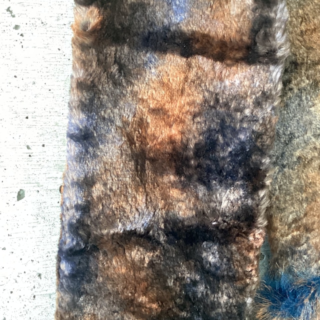 端の飾りのファーは、毛先がブラウンで根本がブルーになっていて撫でると青が浮き出てくるのがとても素敵です。