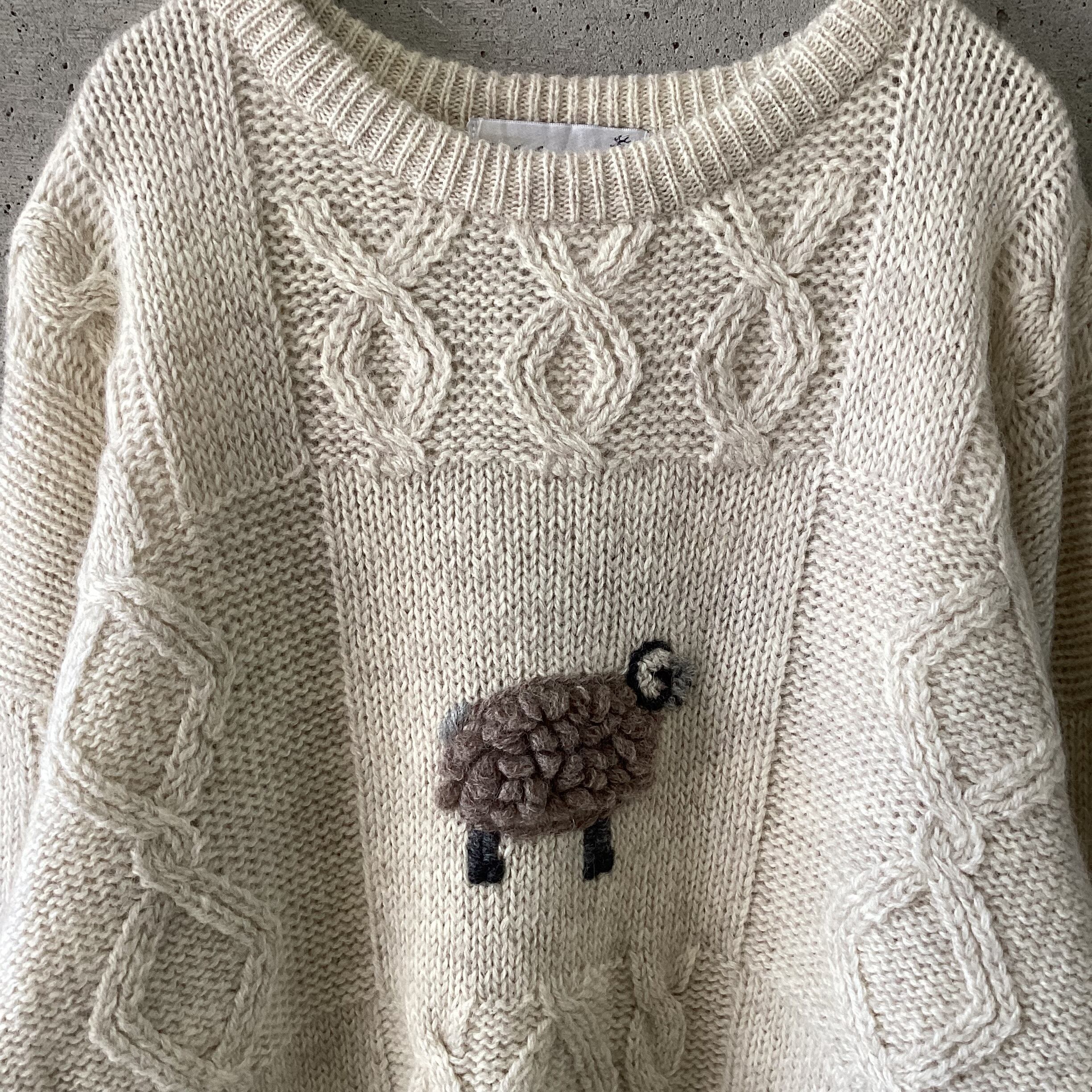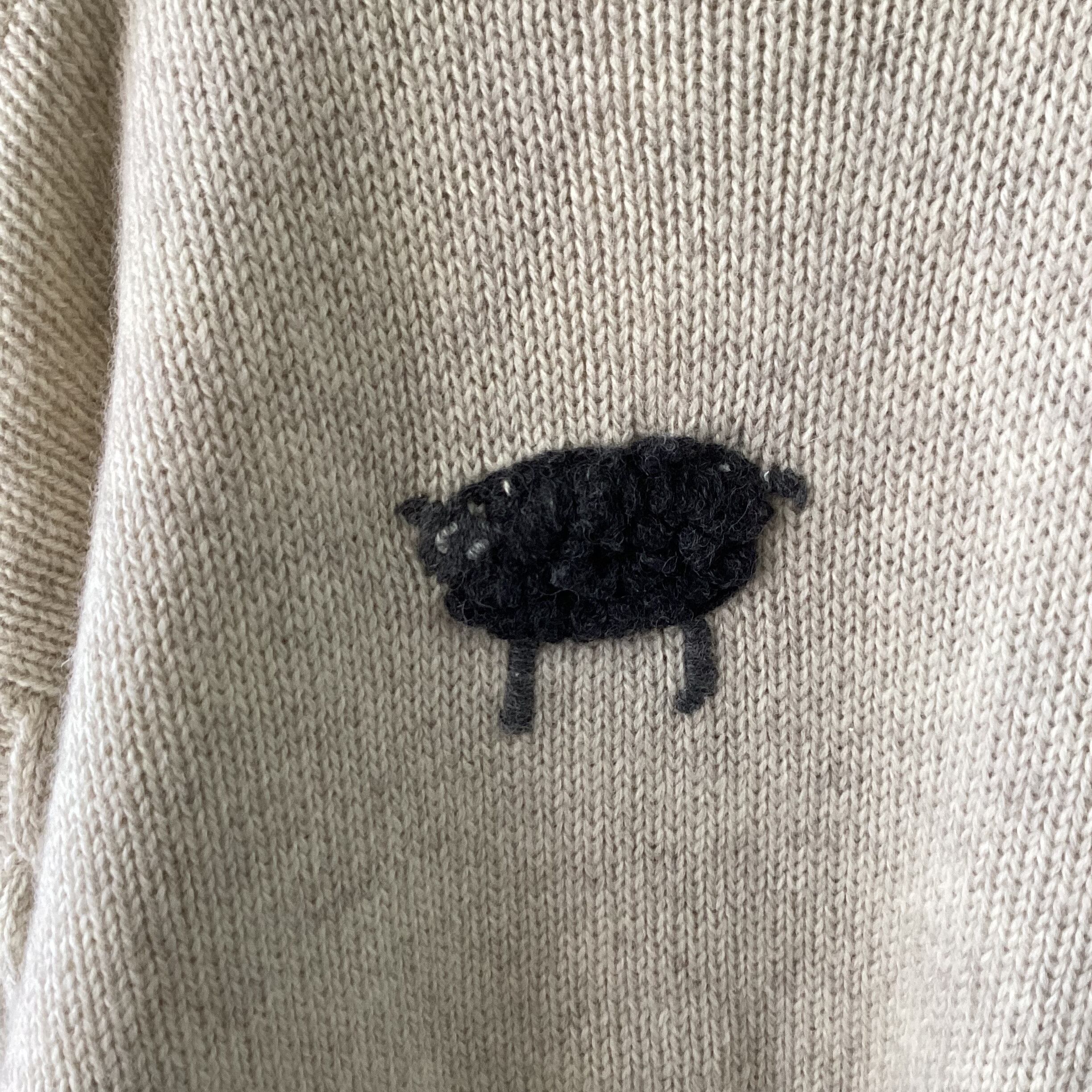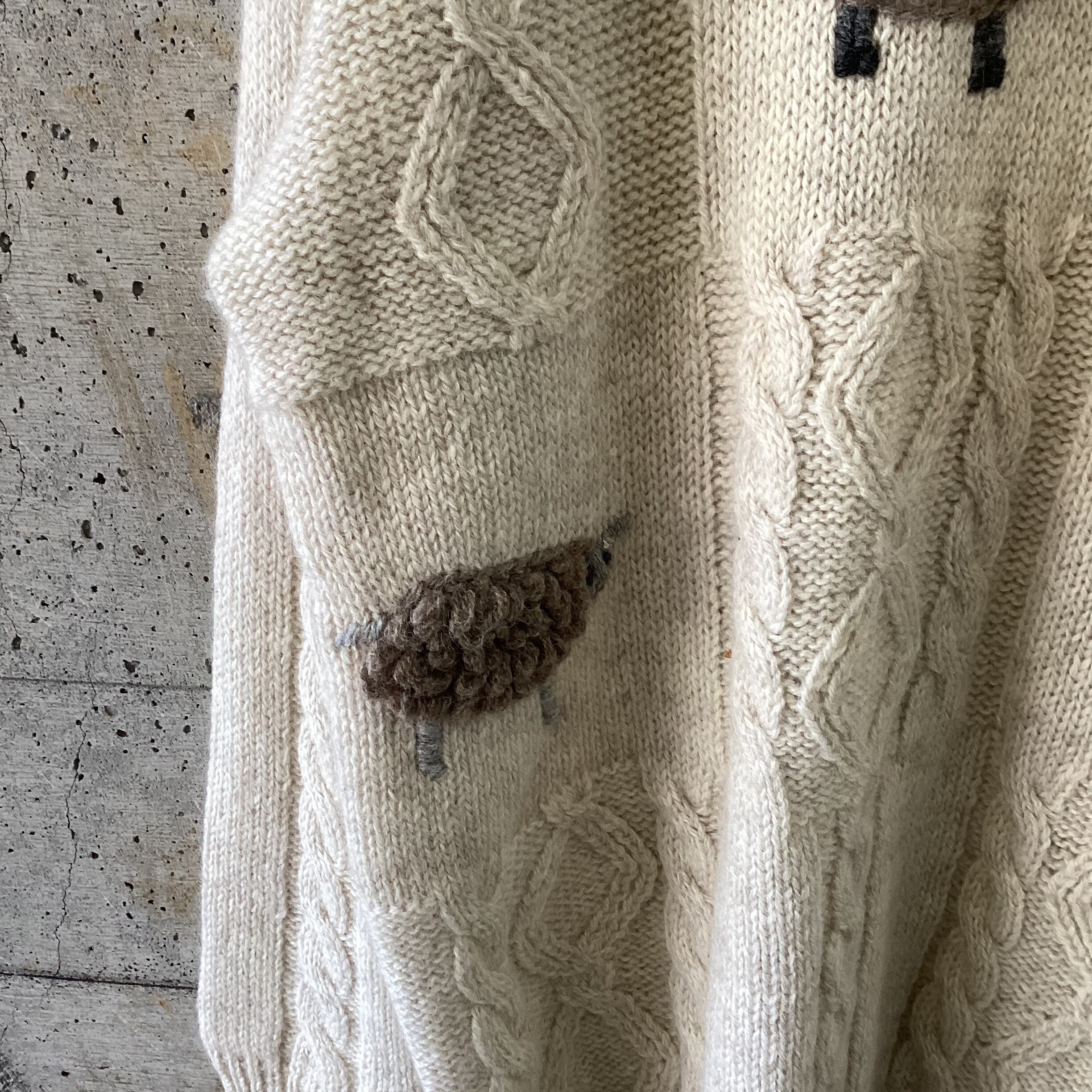 なんとも言えない顔の羊たちが刺繍されたニットです。