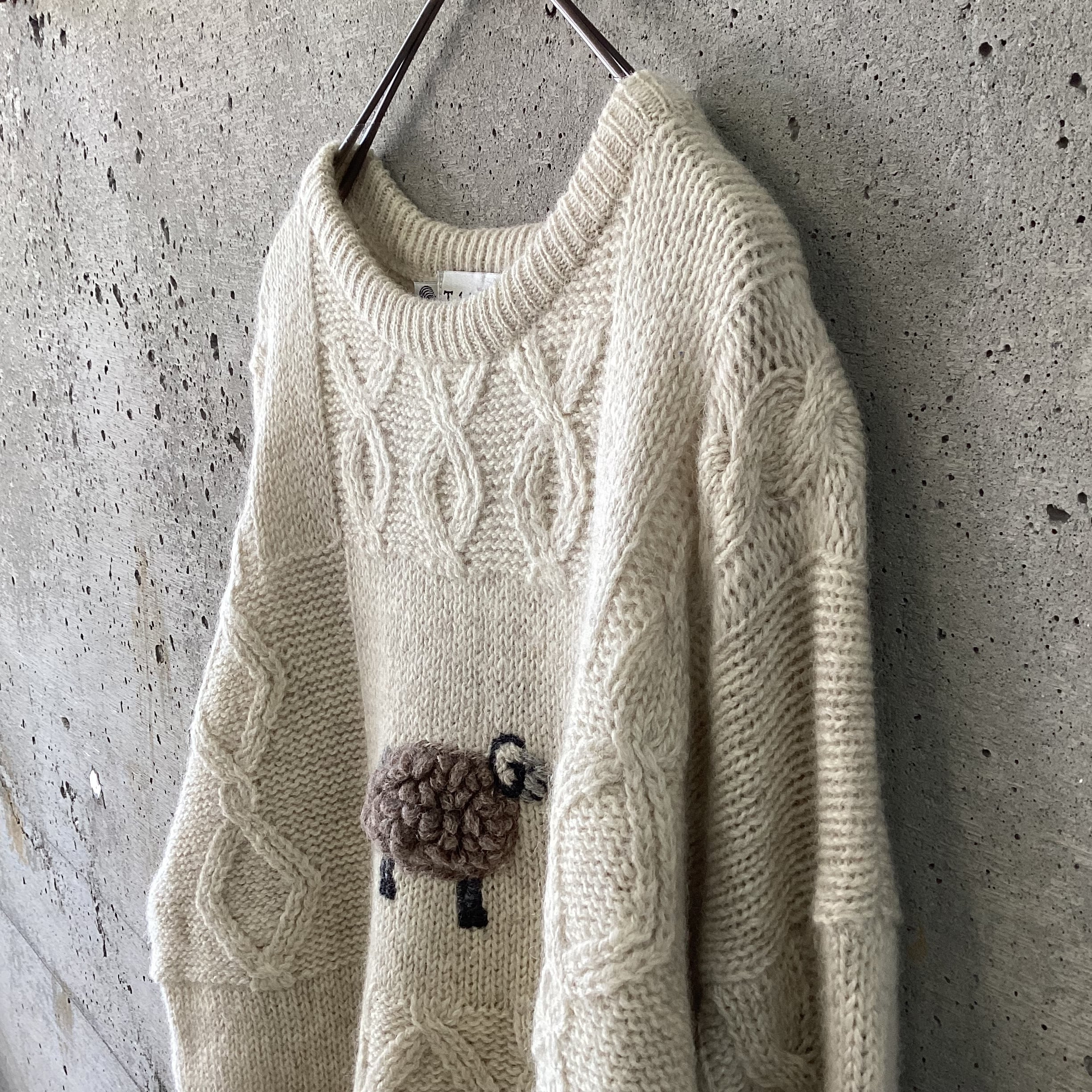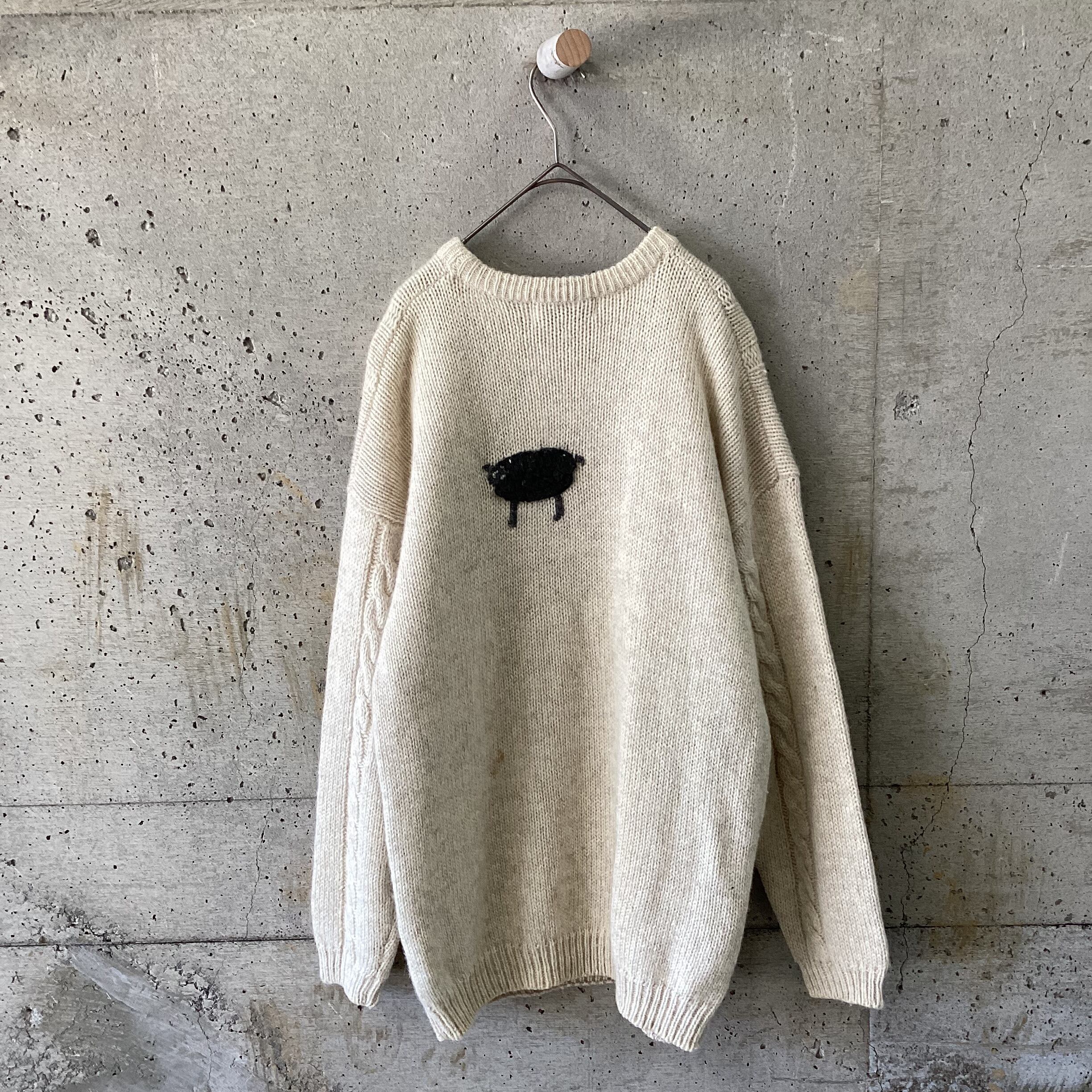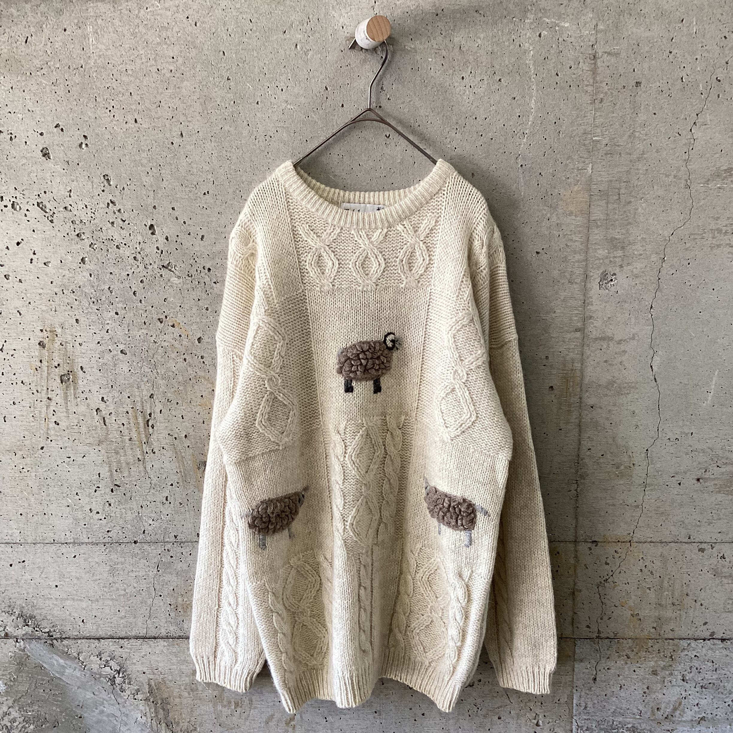 なんとも言えない顔の羊たちが刺繍されたニットです。