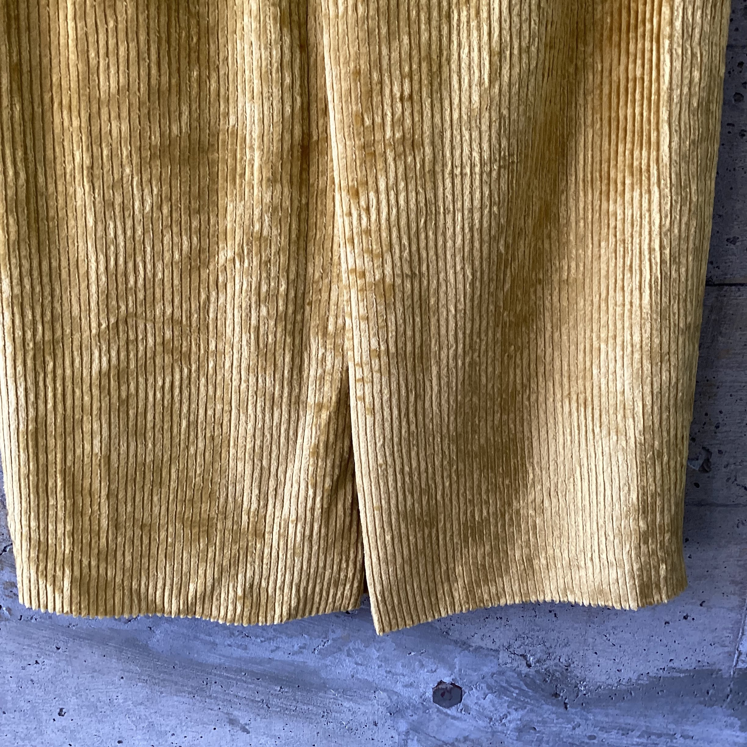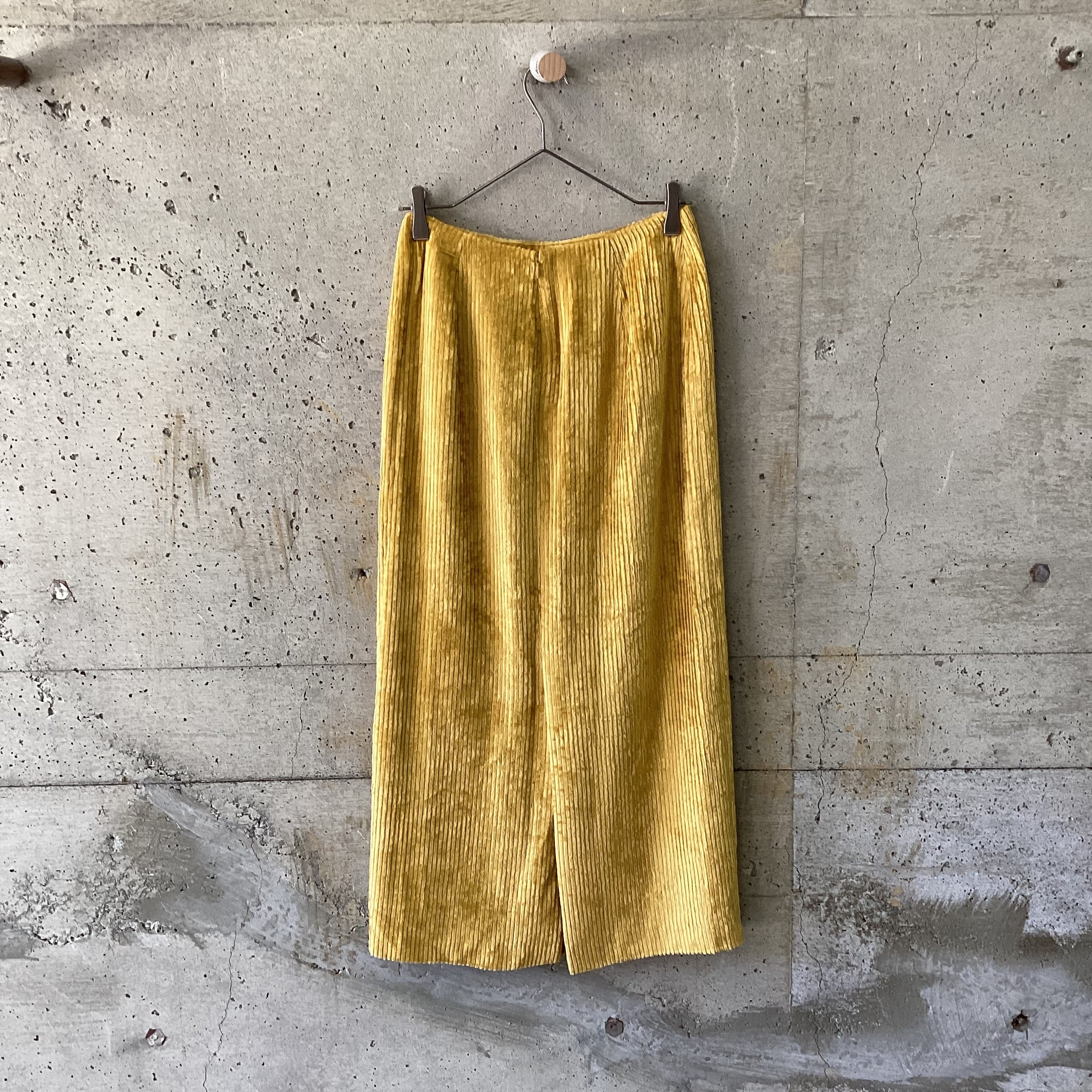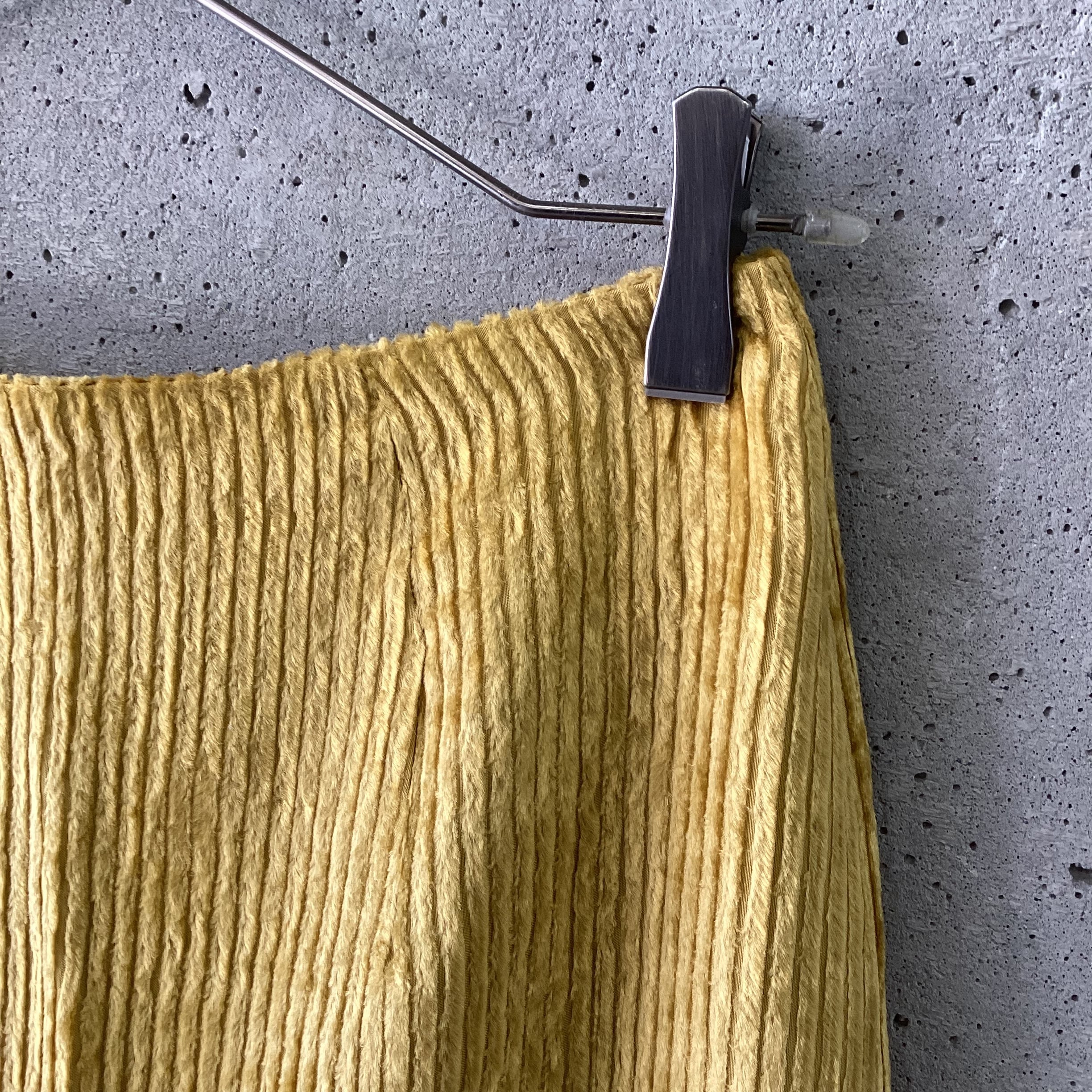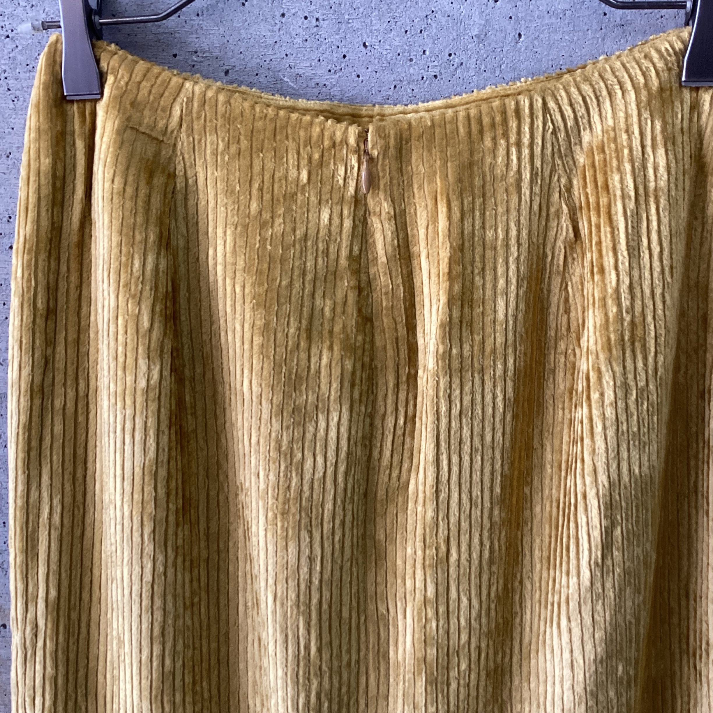 光沢のある黄色のコーデュロイ生地のスカートです。