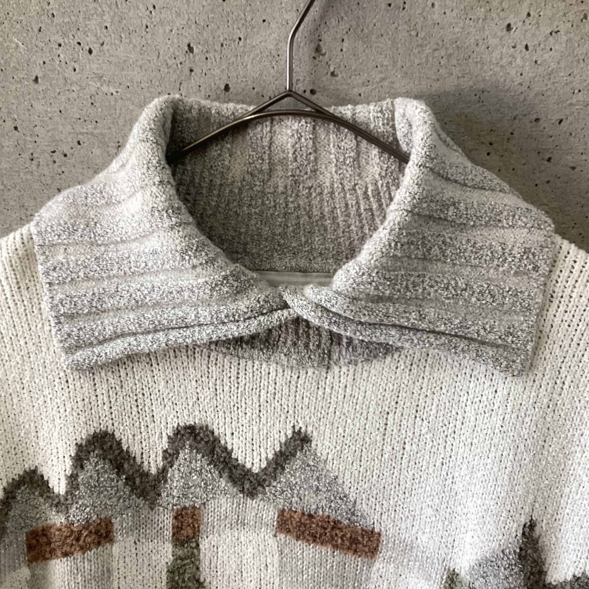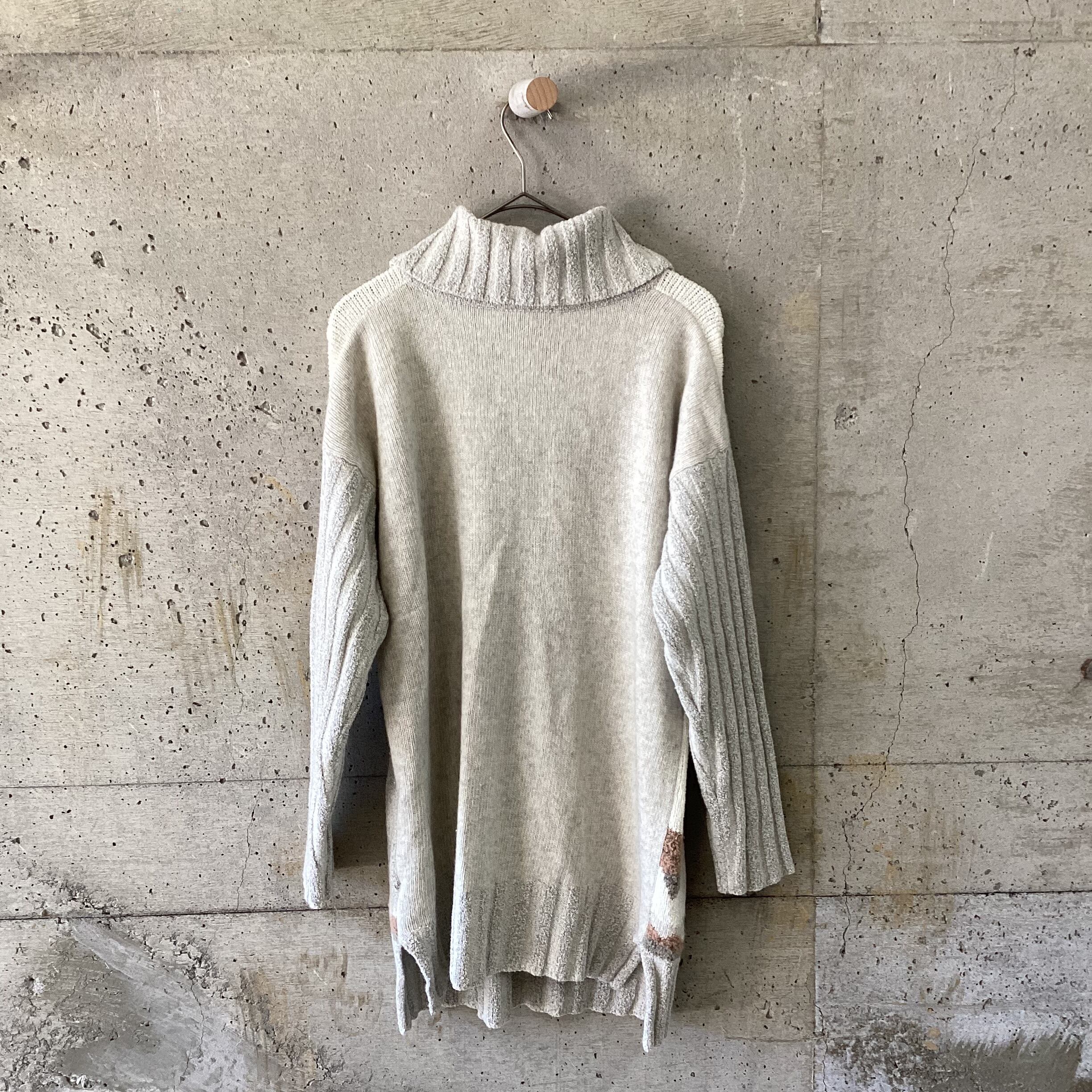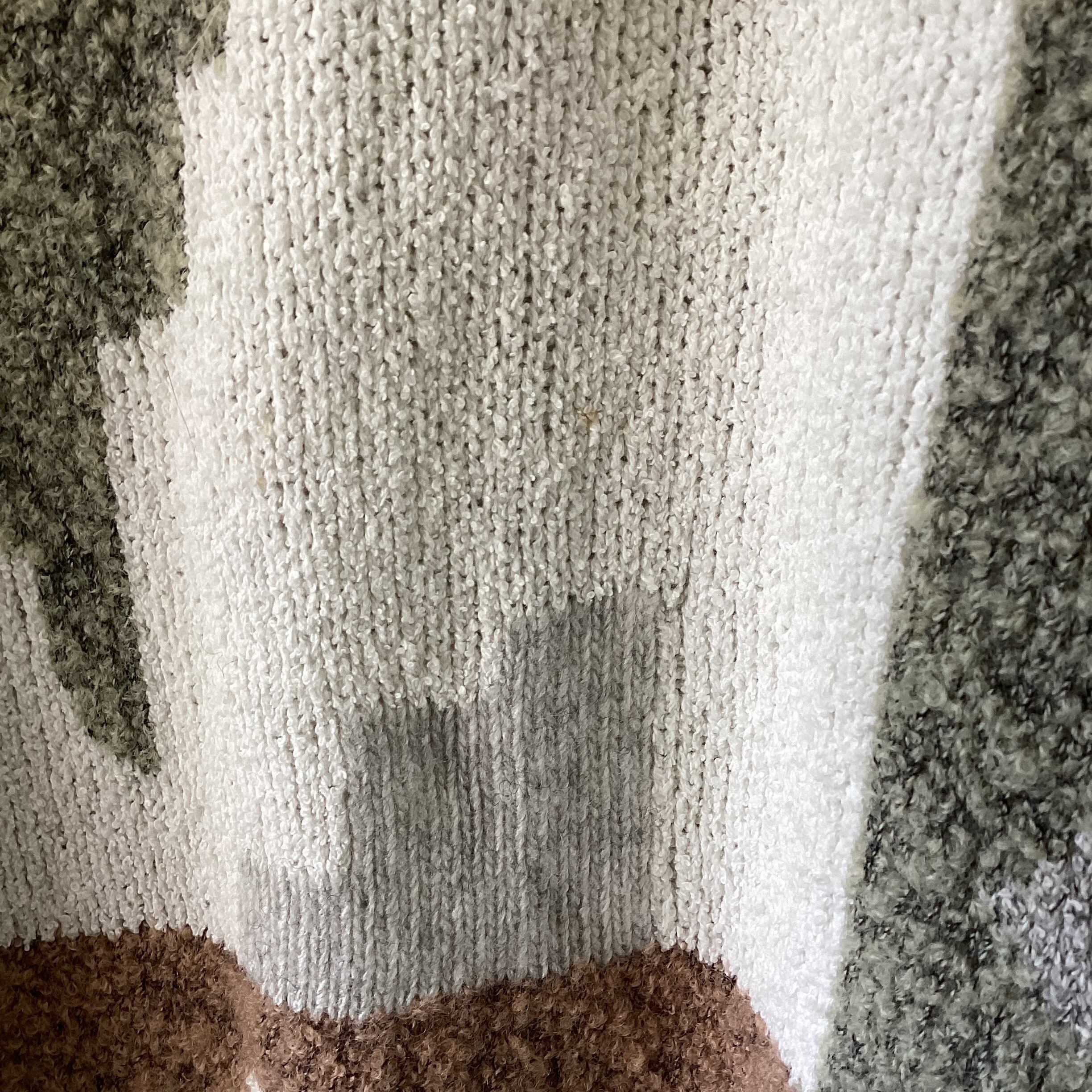 パイル生地のような糸を編んで作られたポコポコとした質感のニットです。