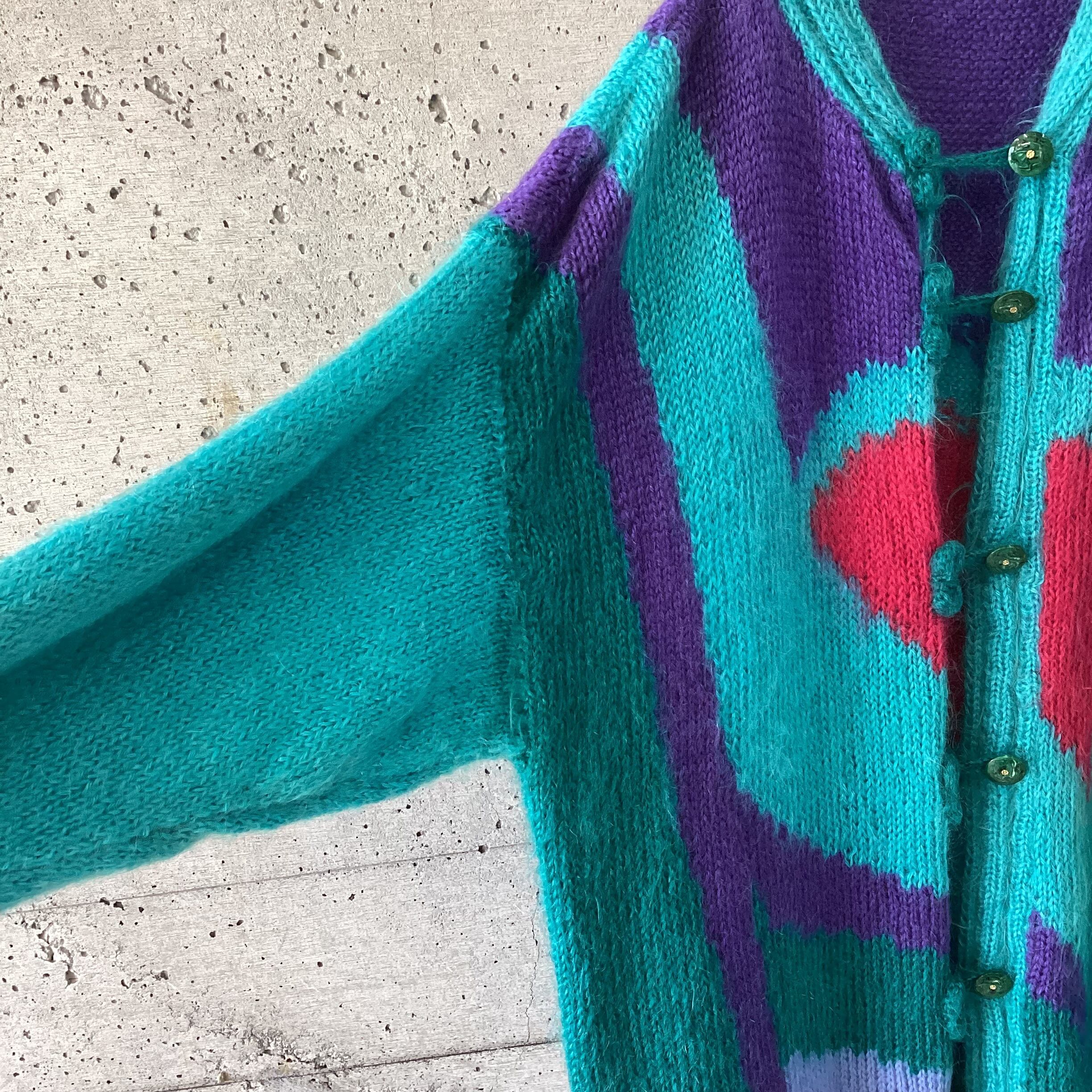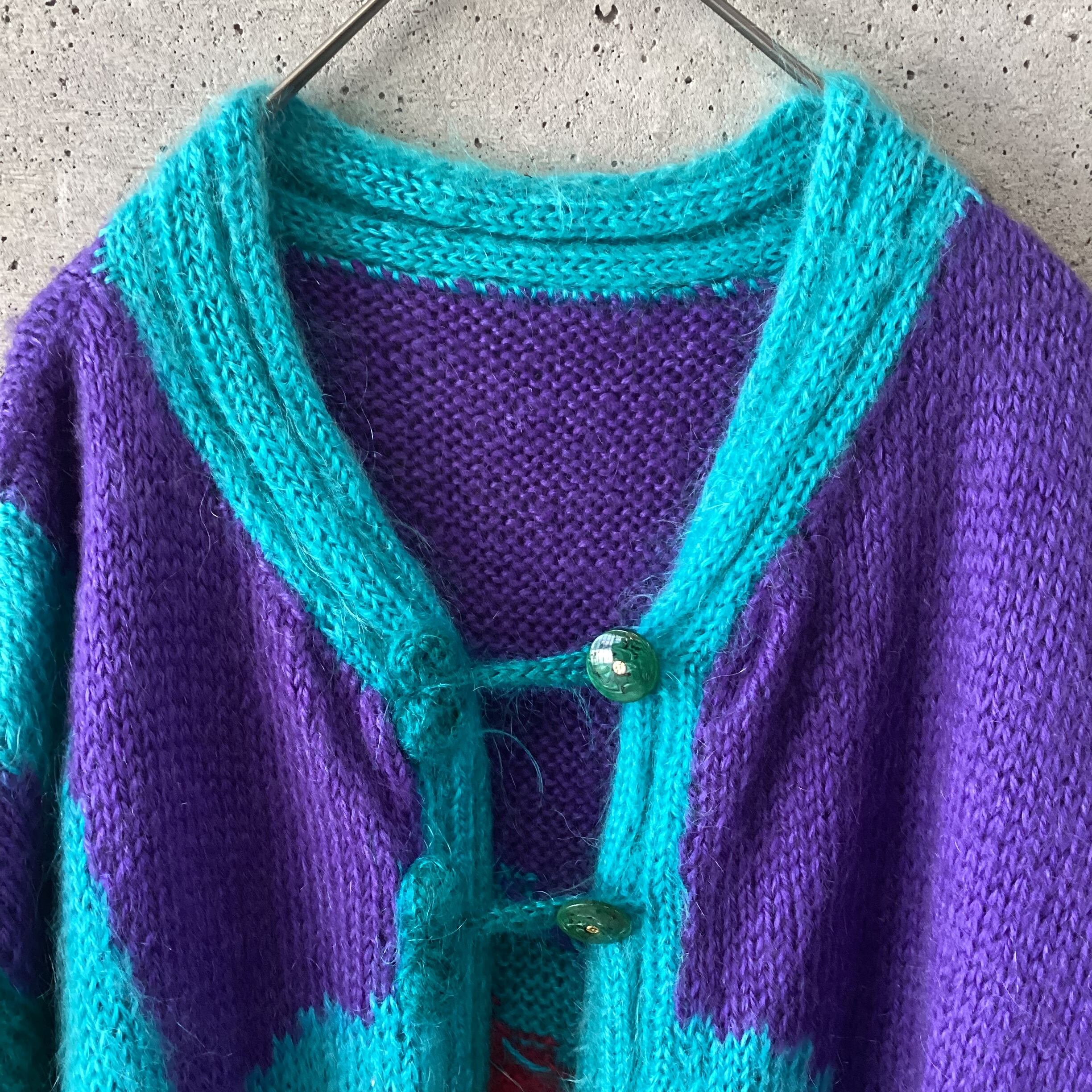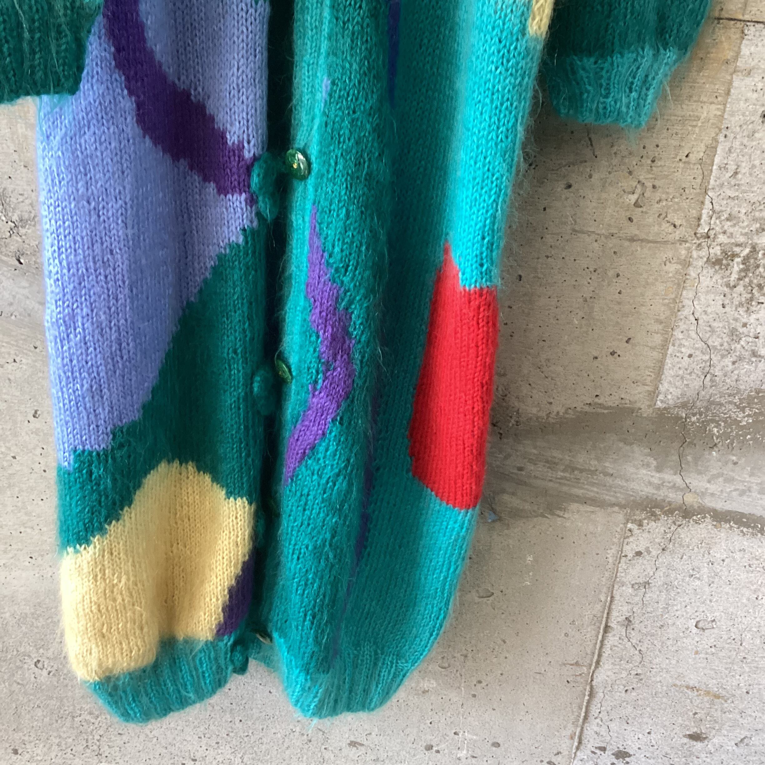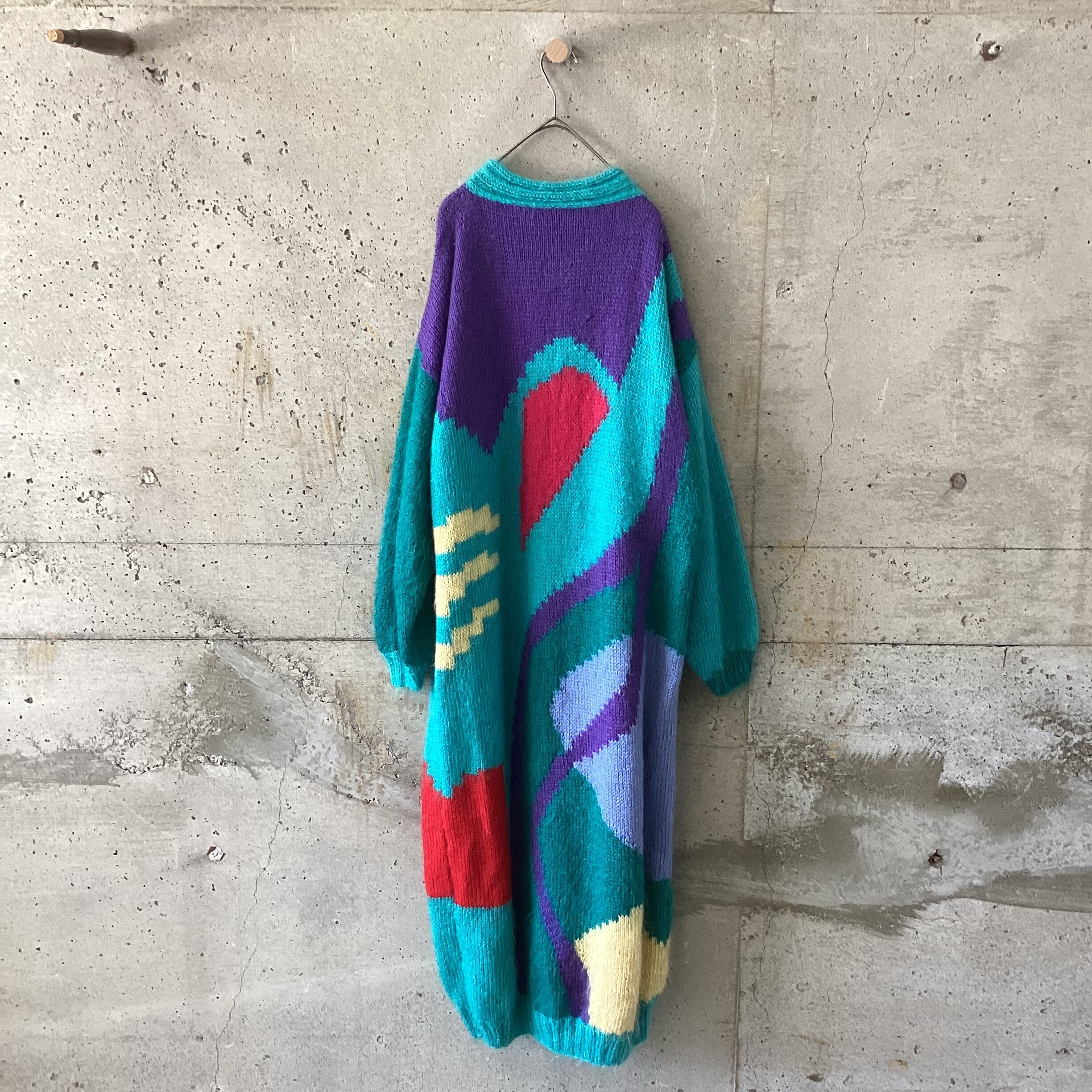 カラフルなモヘアのロングカーディガンです。