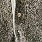 襟元や前たて、ポケット部分には毛足のない毛糸が使われており、全体のふんわりとした印象を程よく引き締めてくれています。