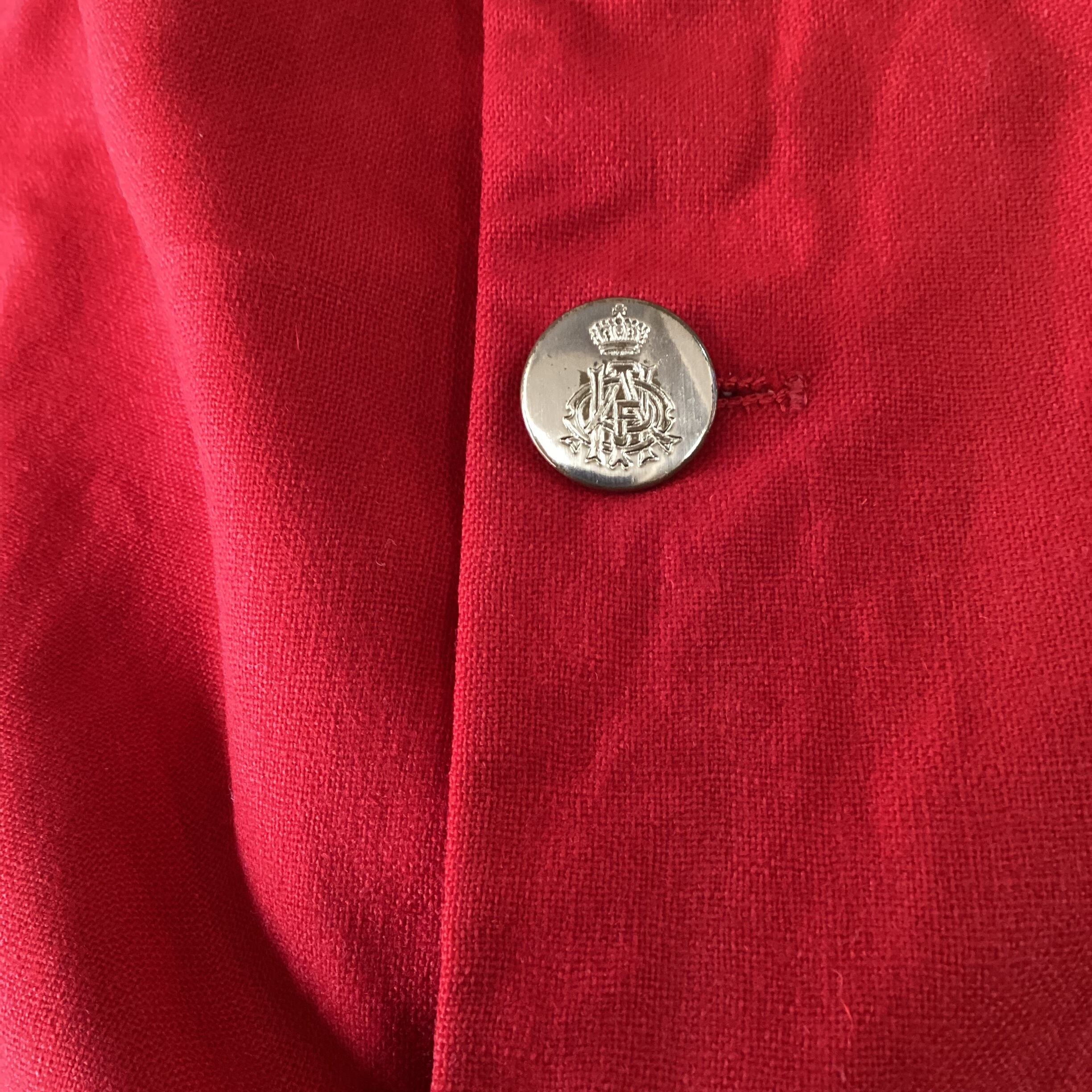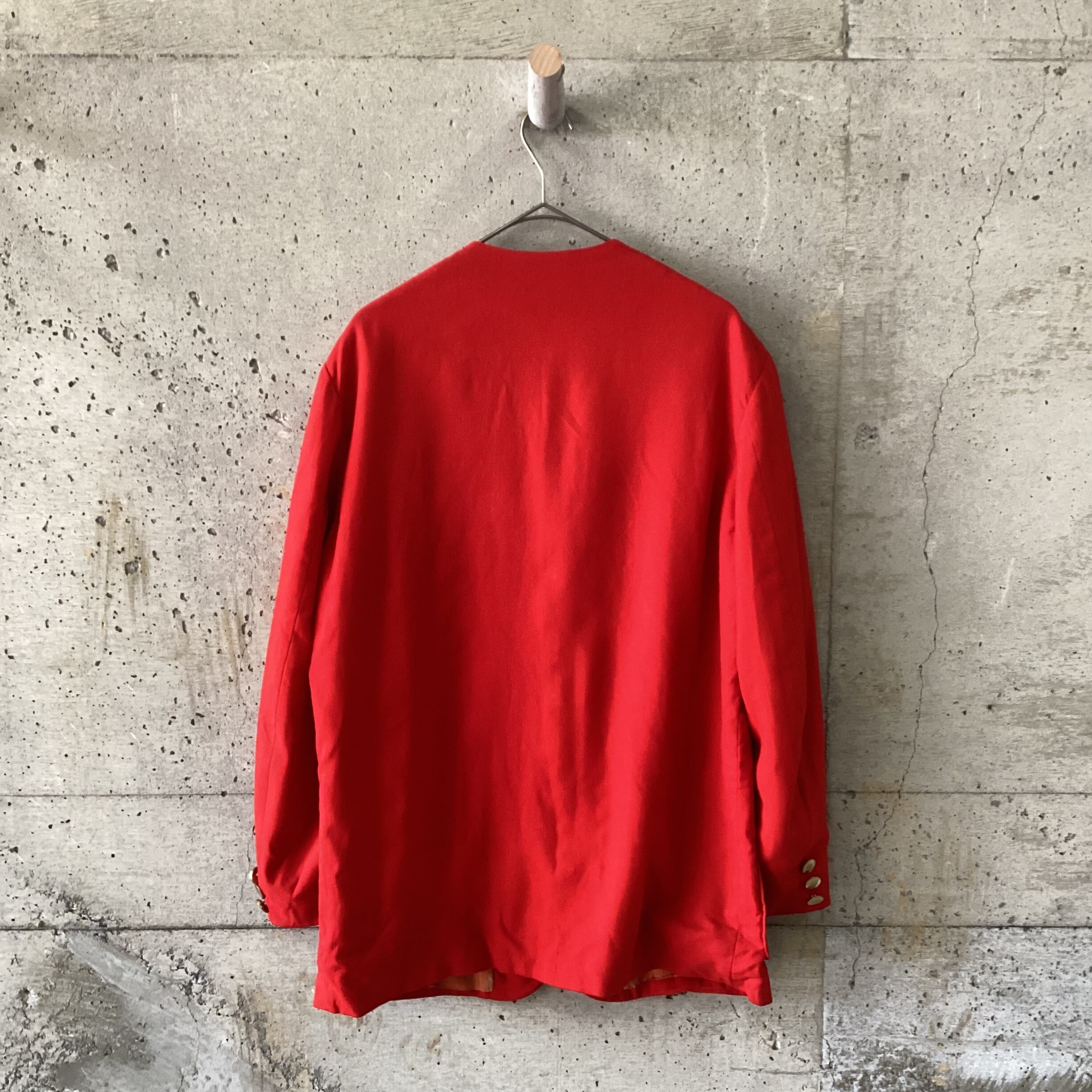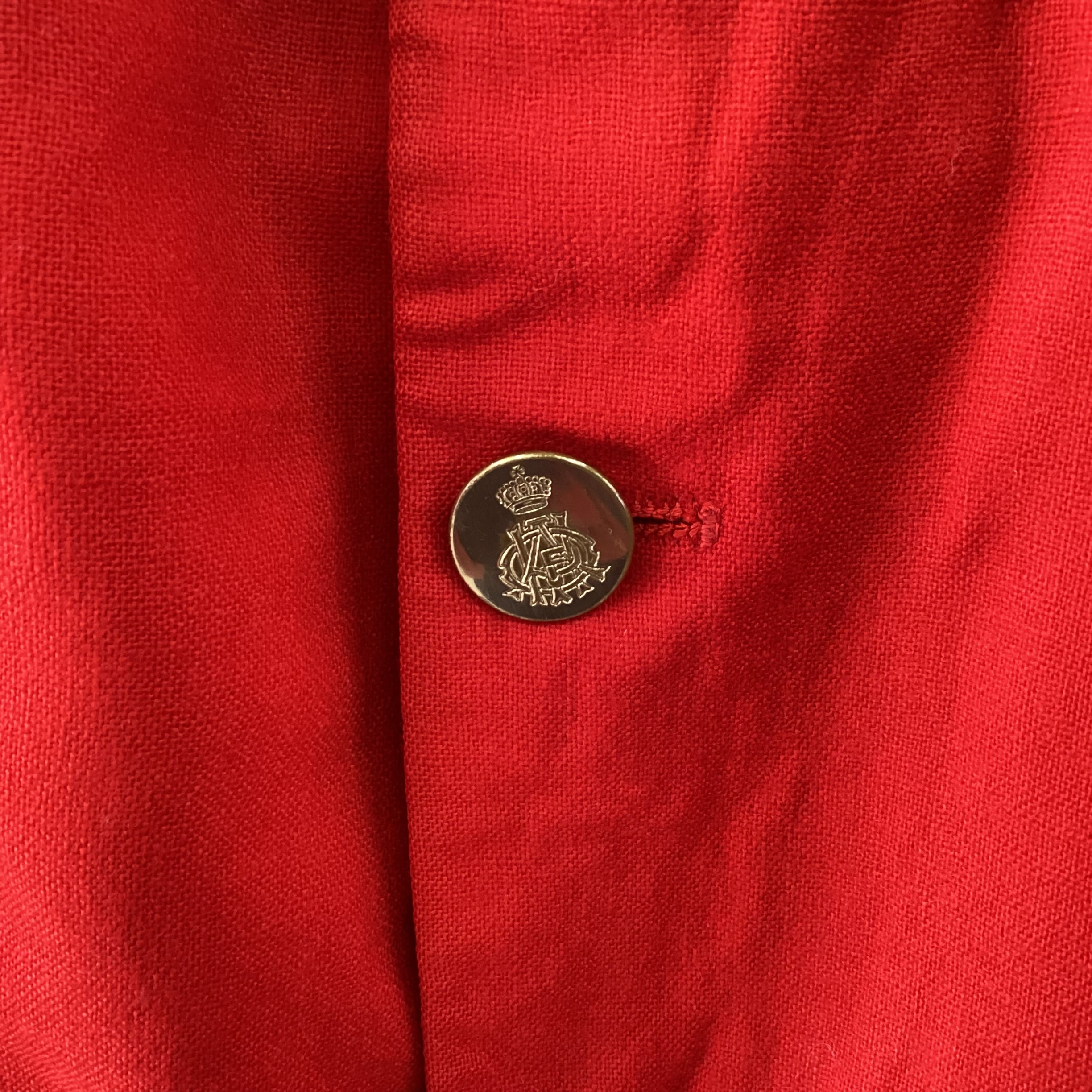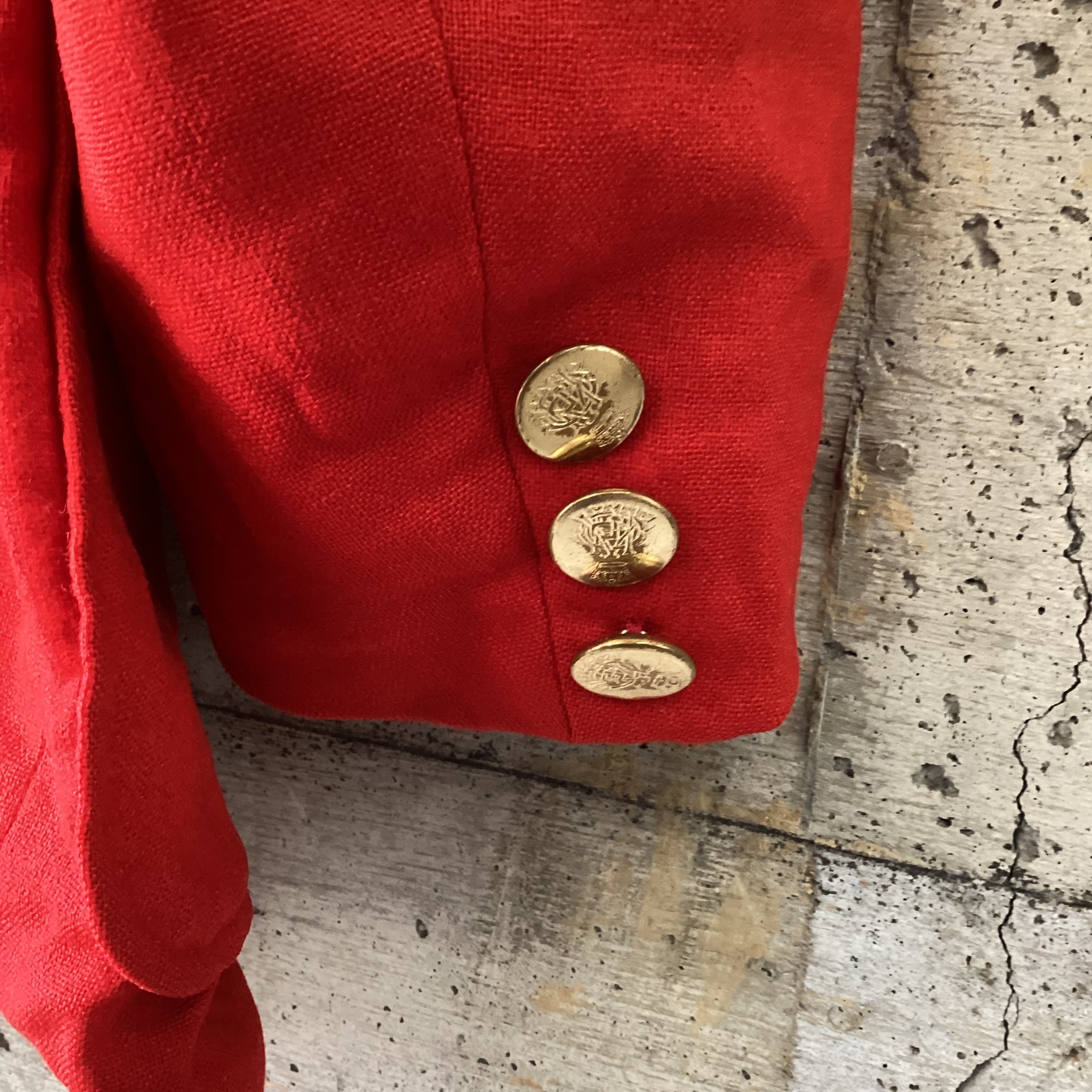 発色の良い綺麗な赤とゴールドのボタンが人目を引くアイテムです