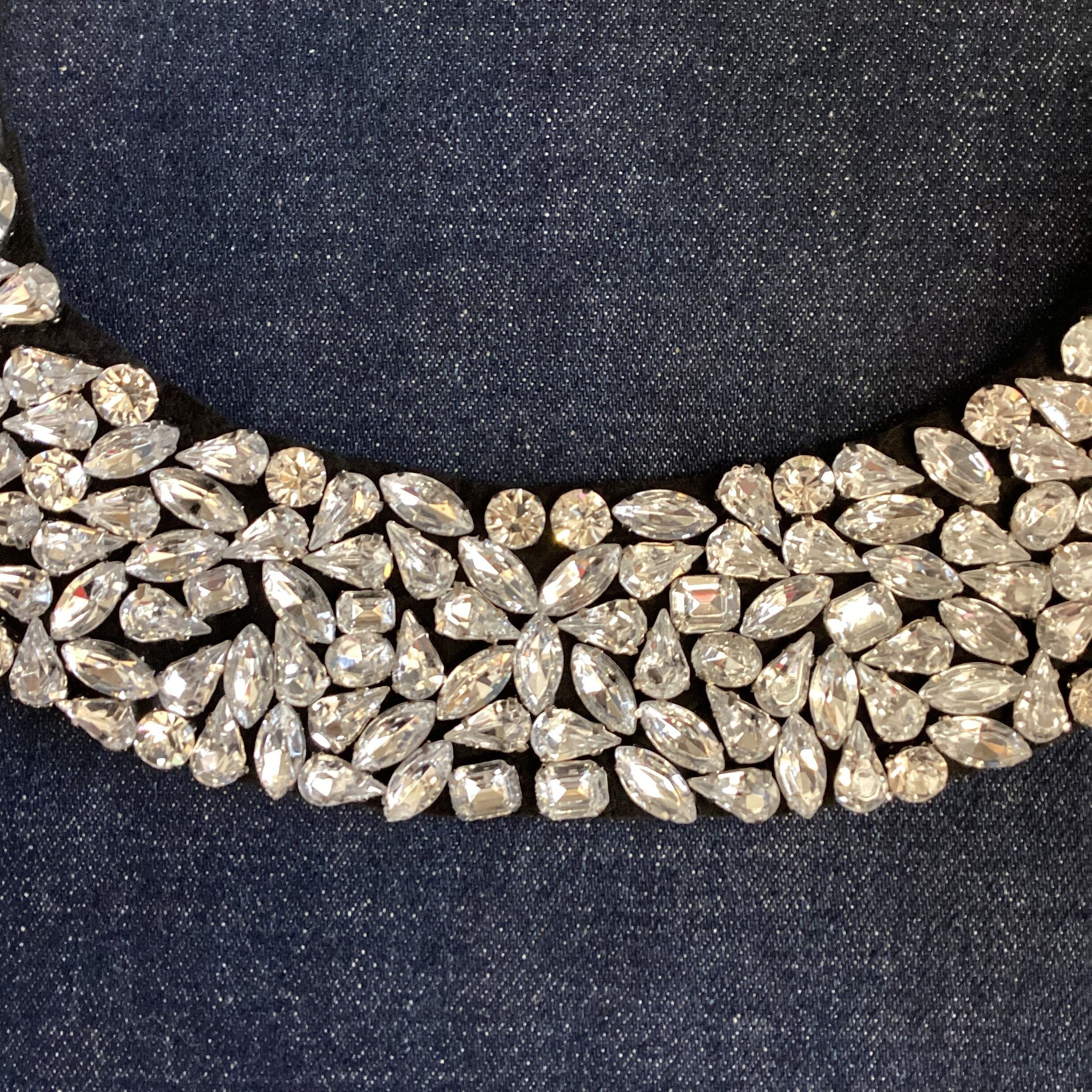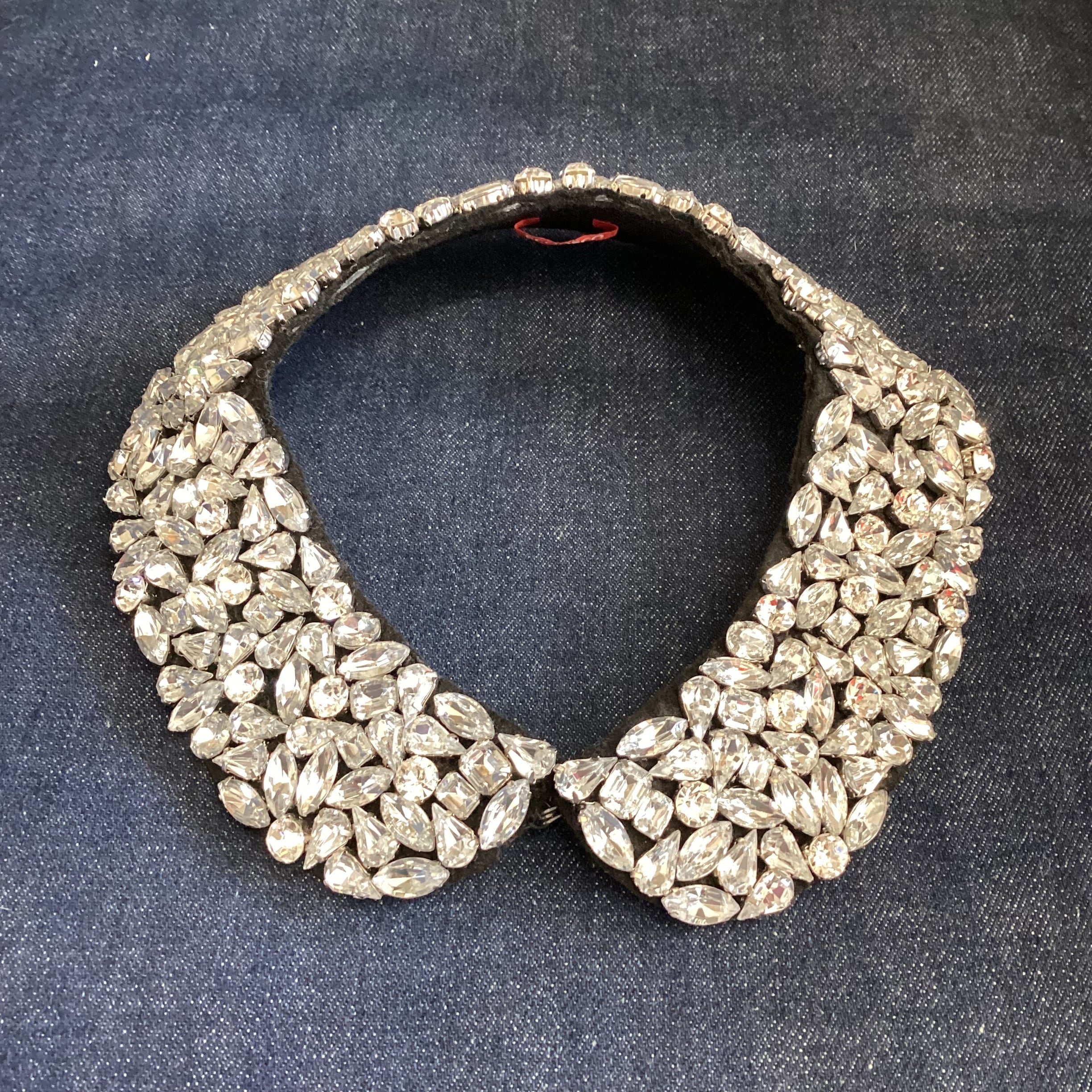 厚手のフェルトを台紙にびっしりとストーンの付いた華やかなつけ襟です。