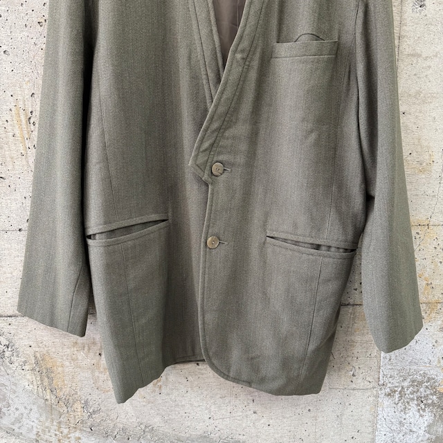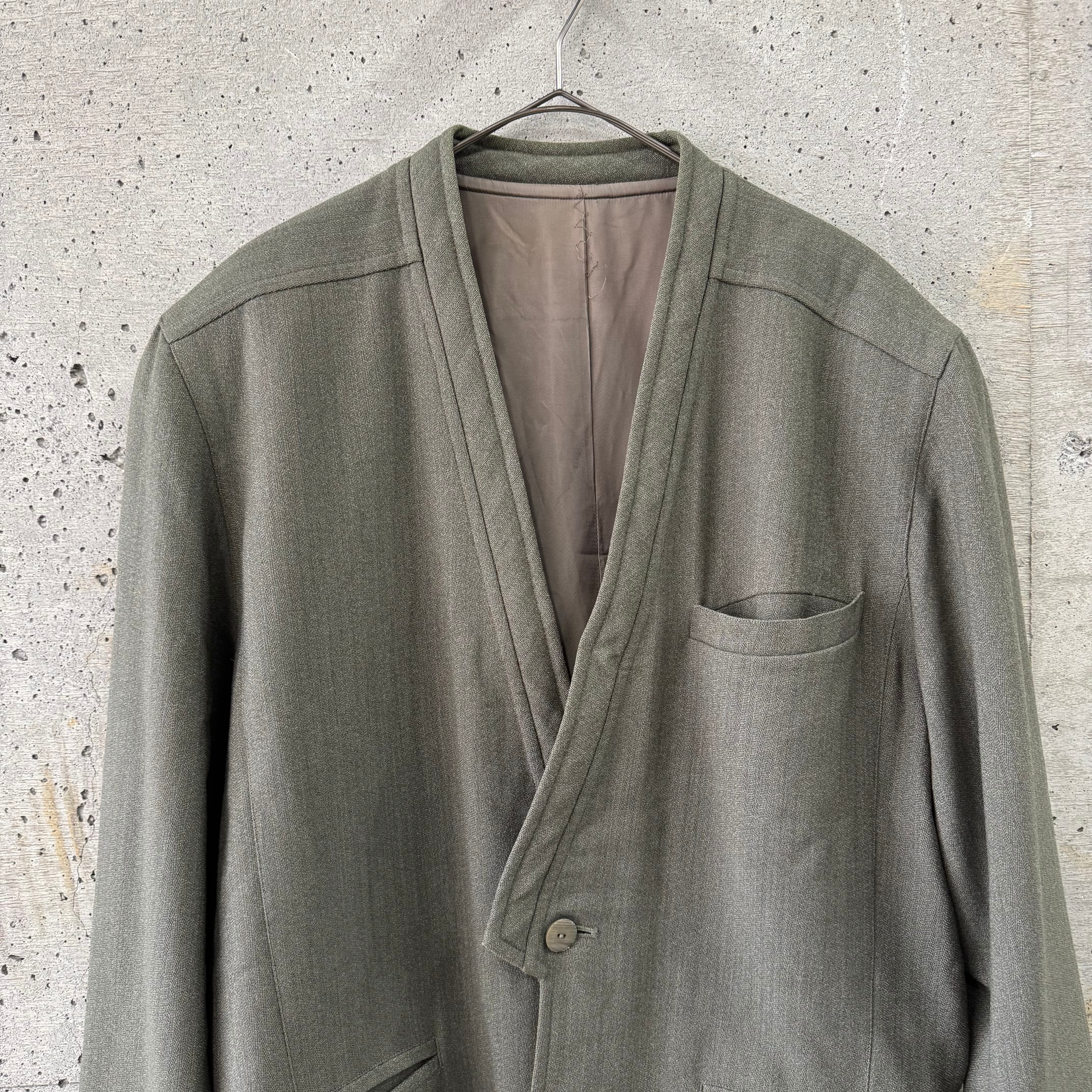 ノーカラーのテーラードジャケットです。