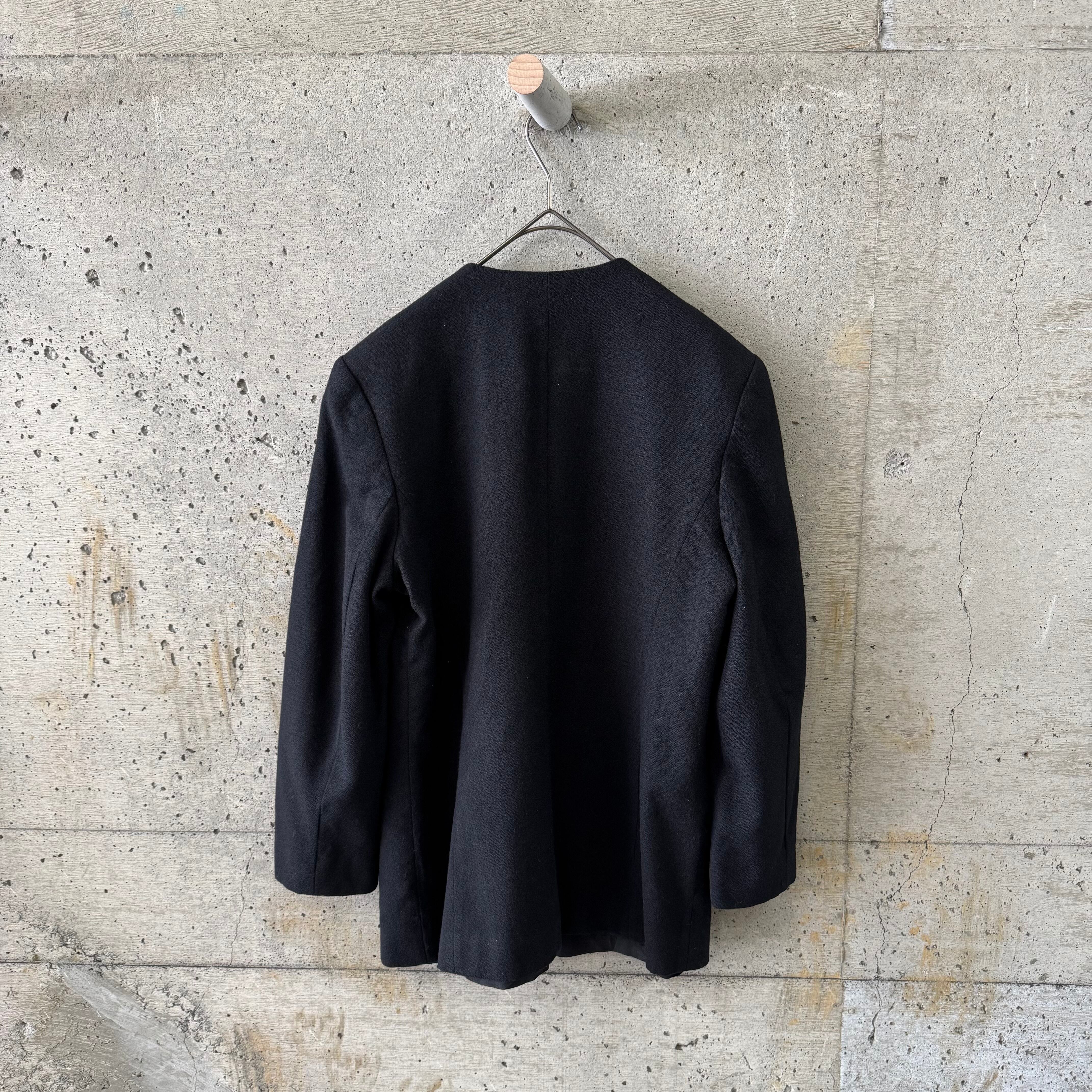 ノーカラーなので、すっきりとした印象で着ることができます。