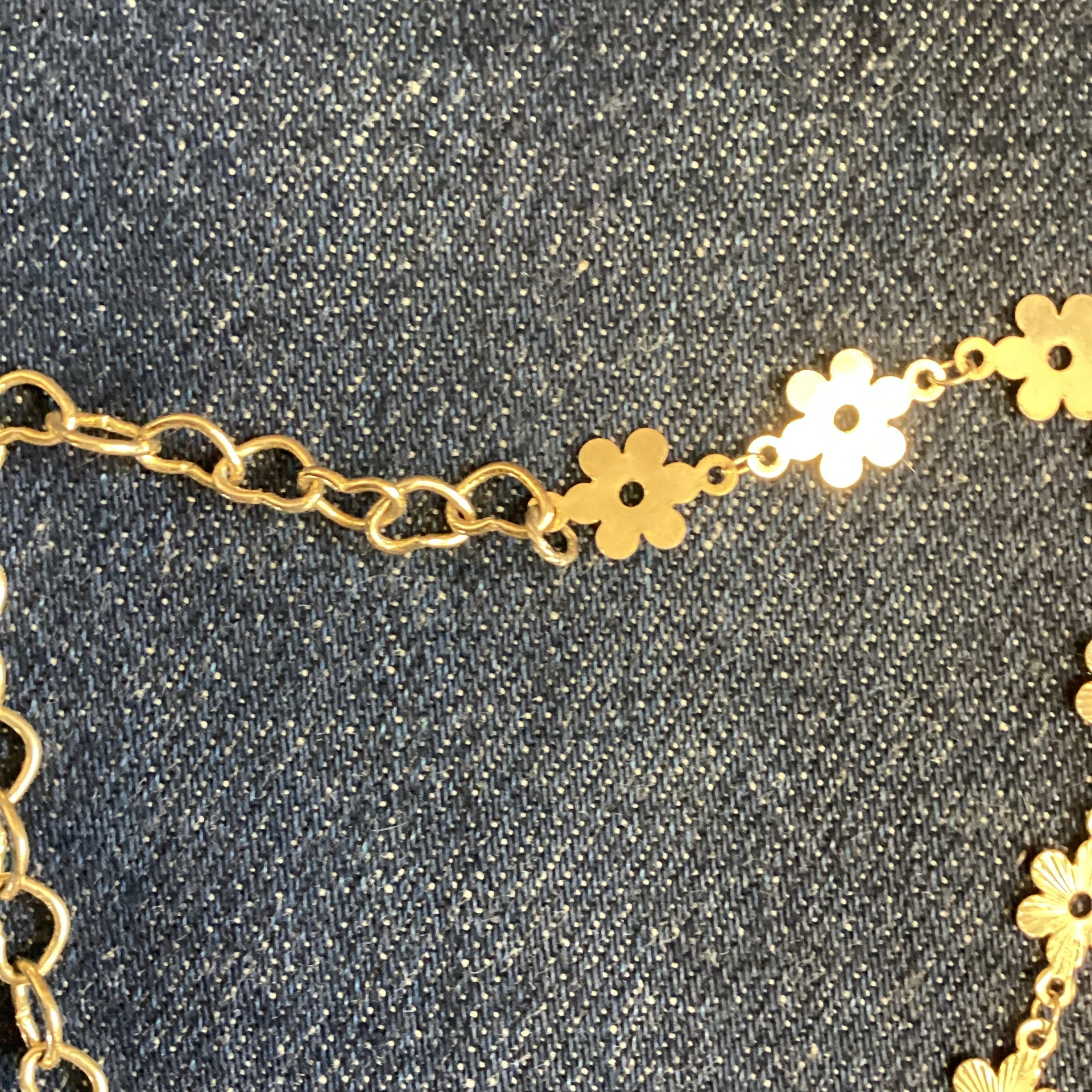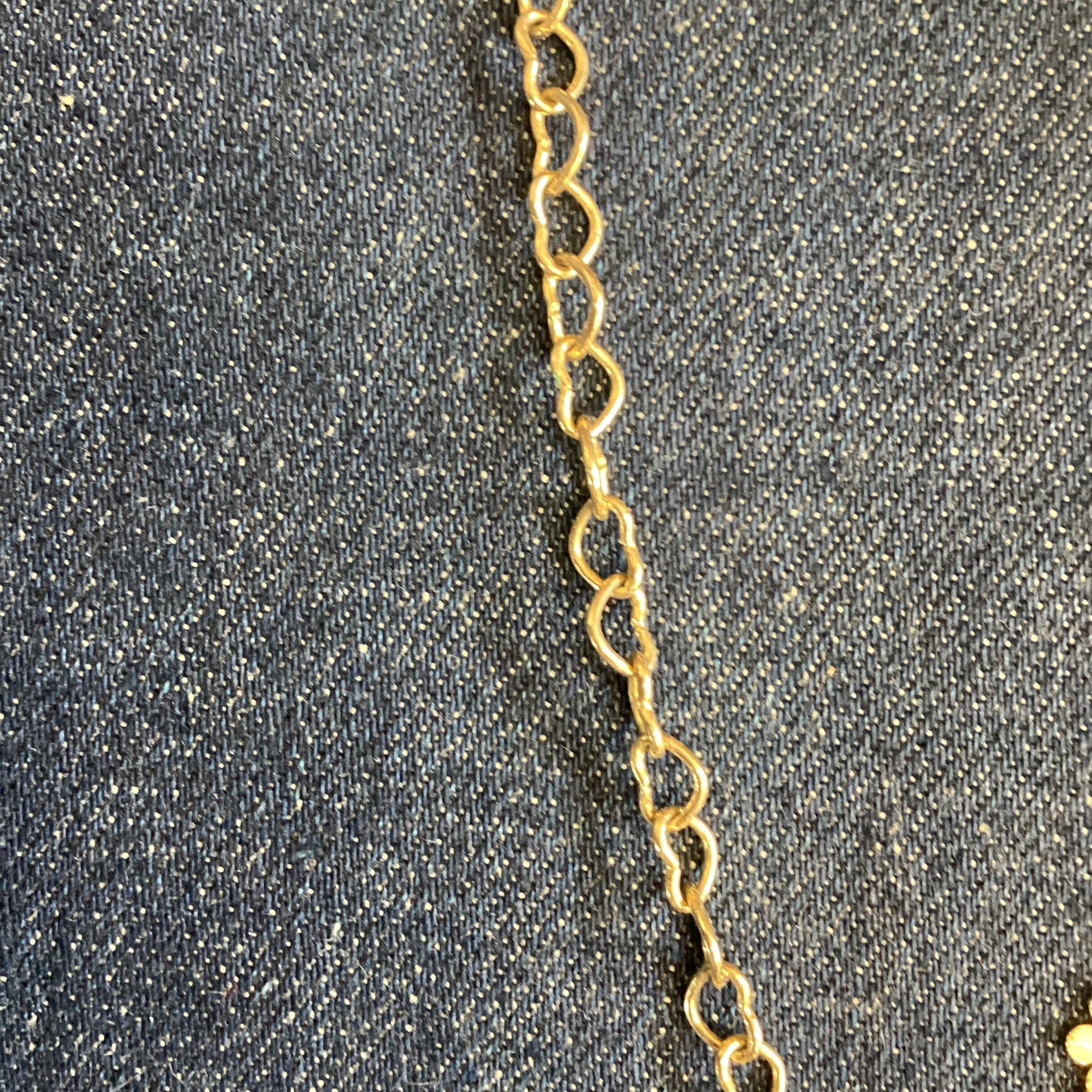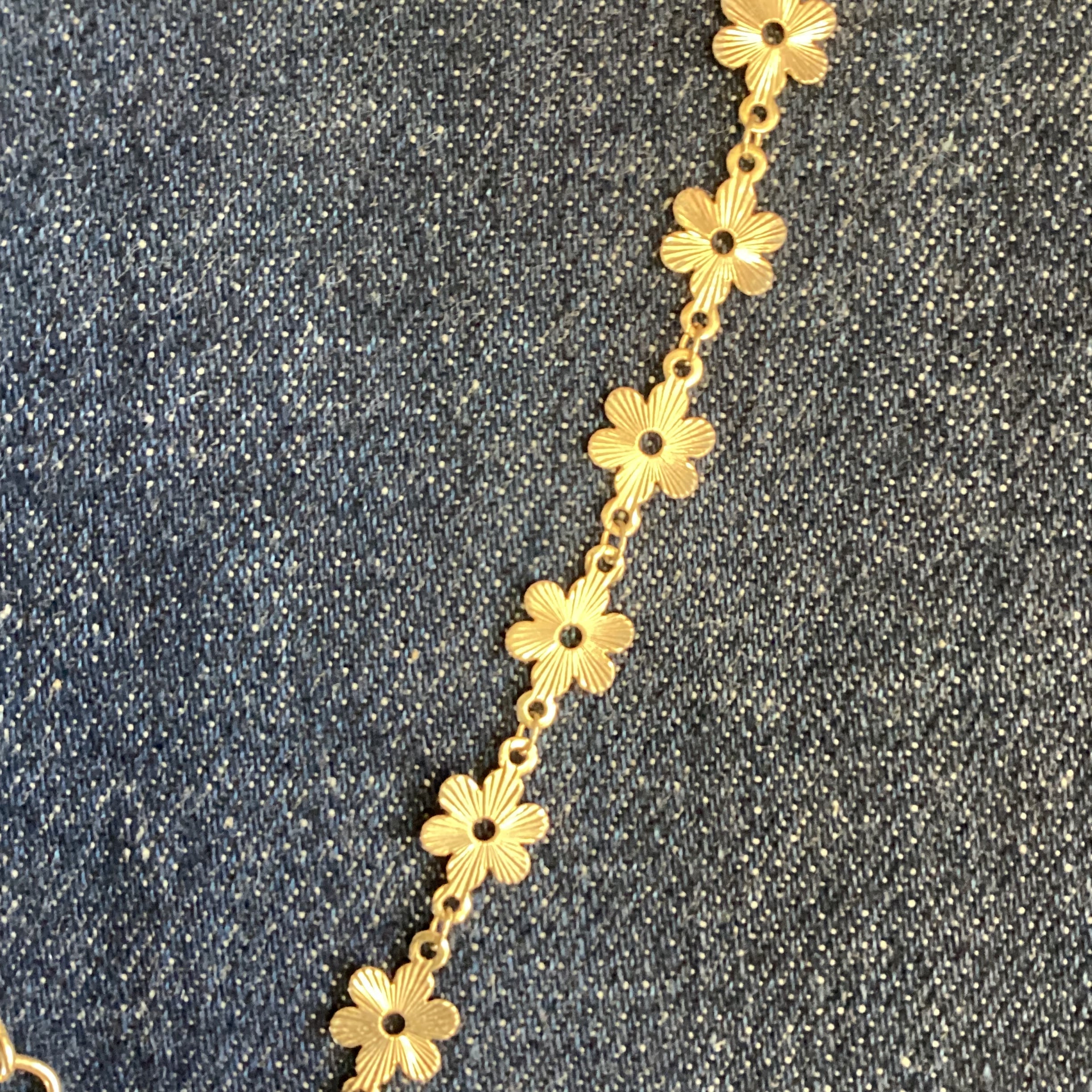 このネックレスはお花とハートのチェーンがとても可愛らしく、握手しているヘッドが特徴的です。