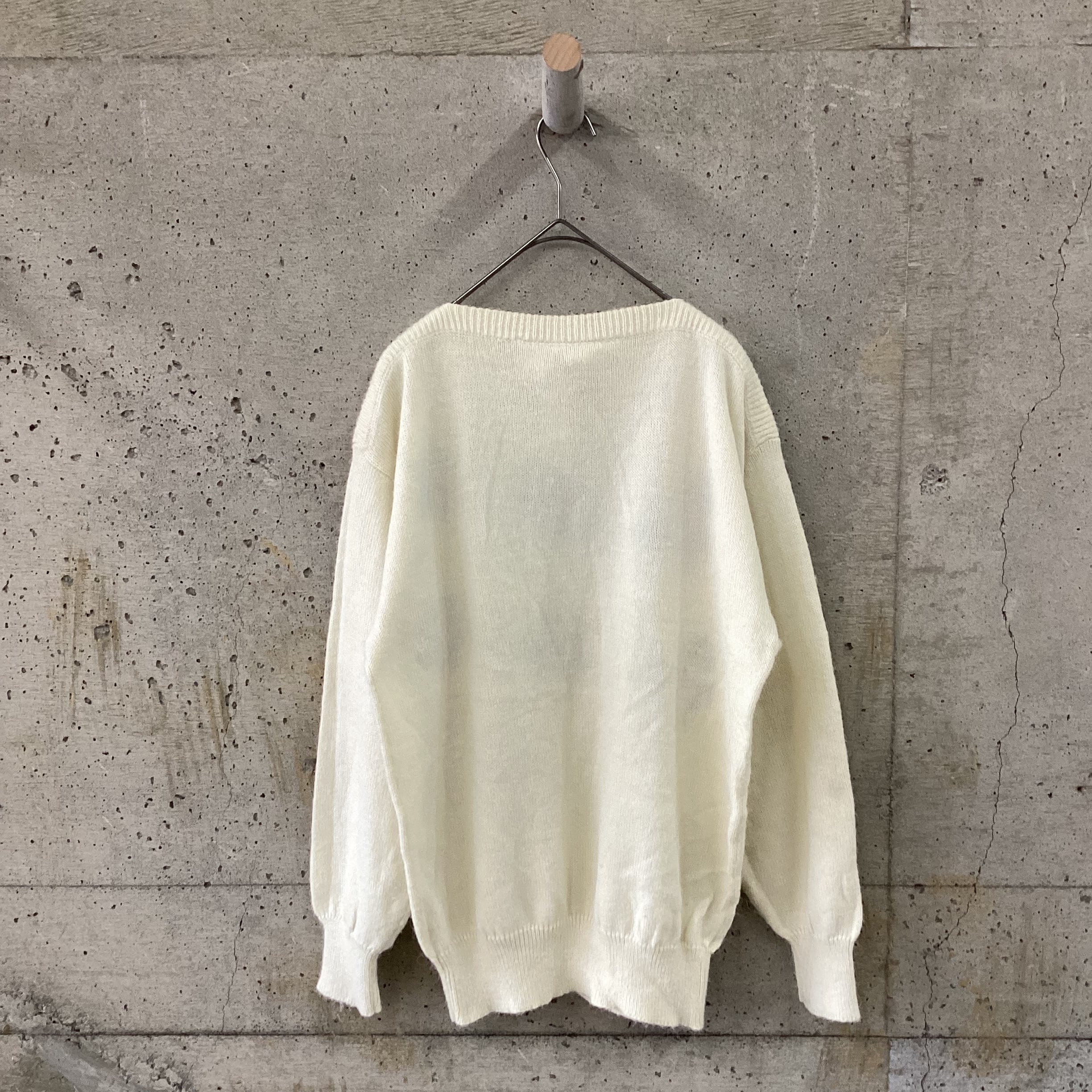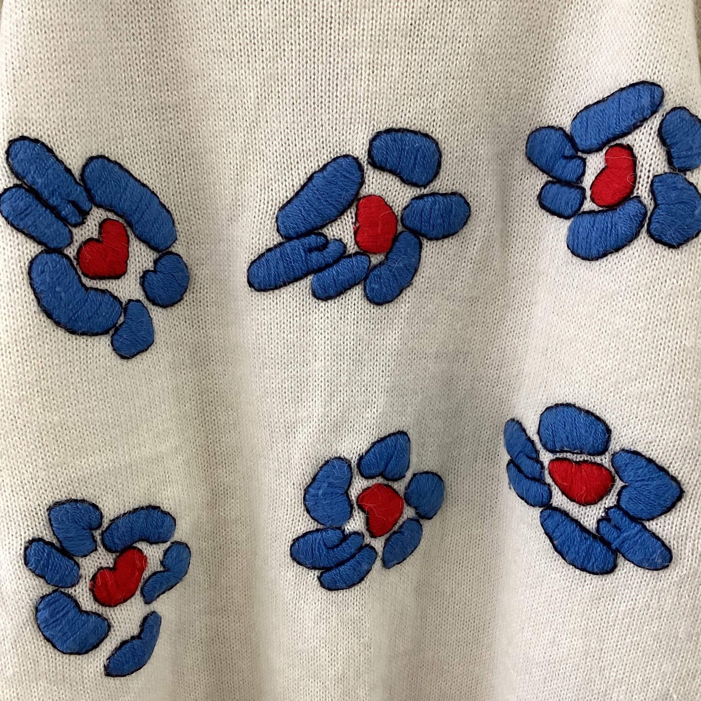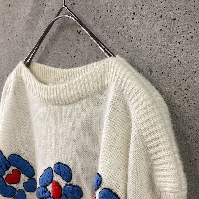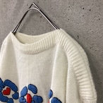 白地に大きなお花の刺繍が施されたニットです。