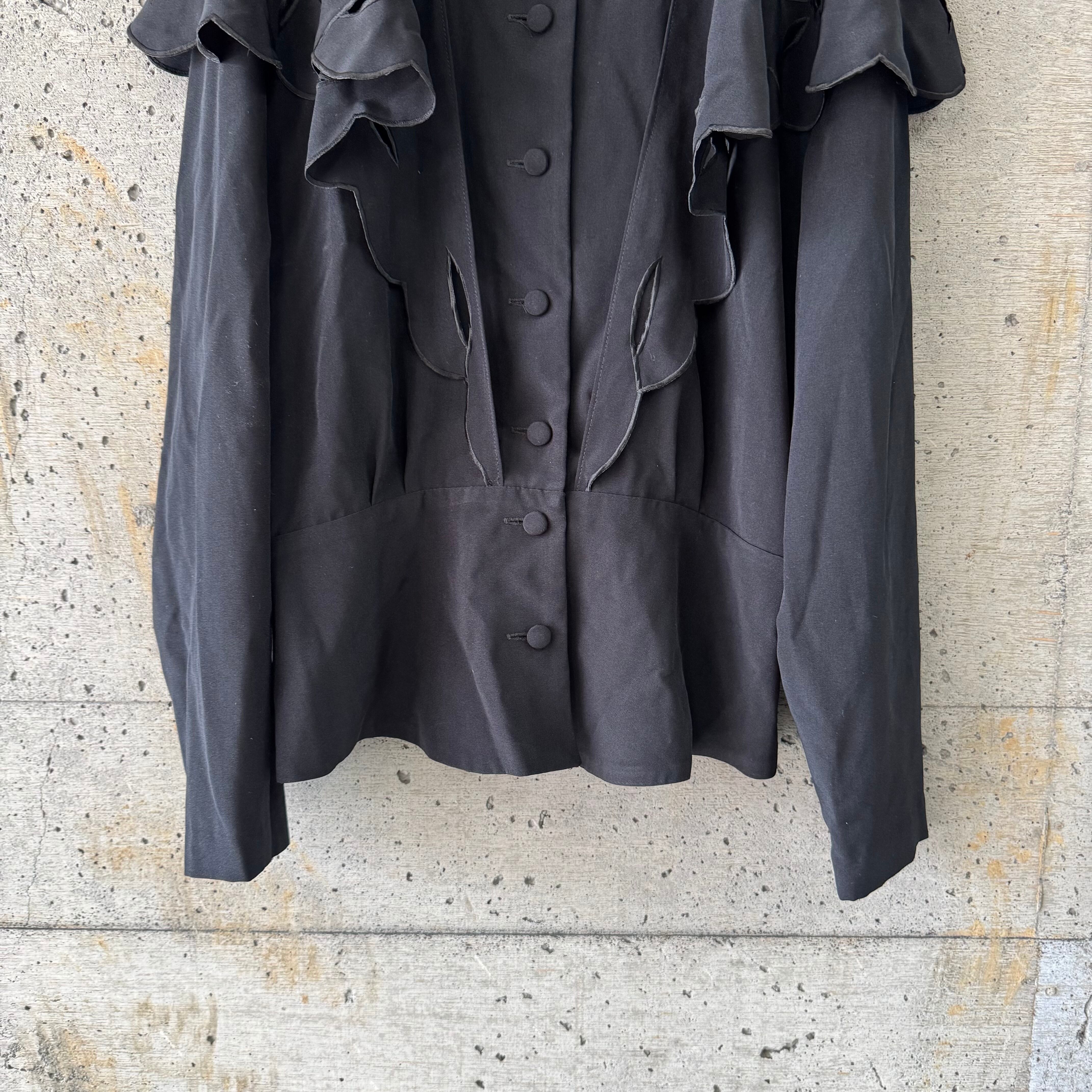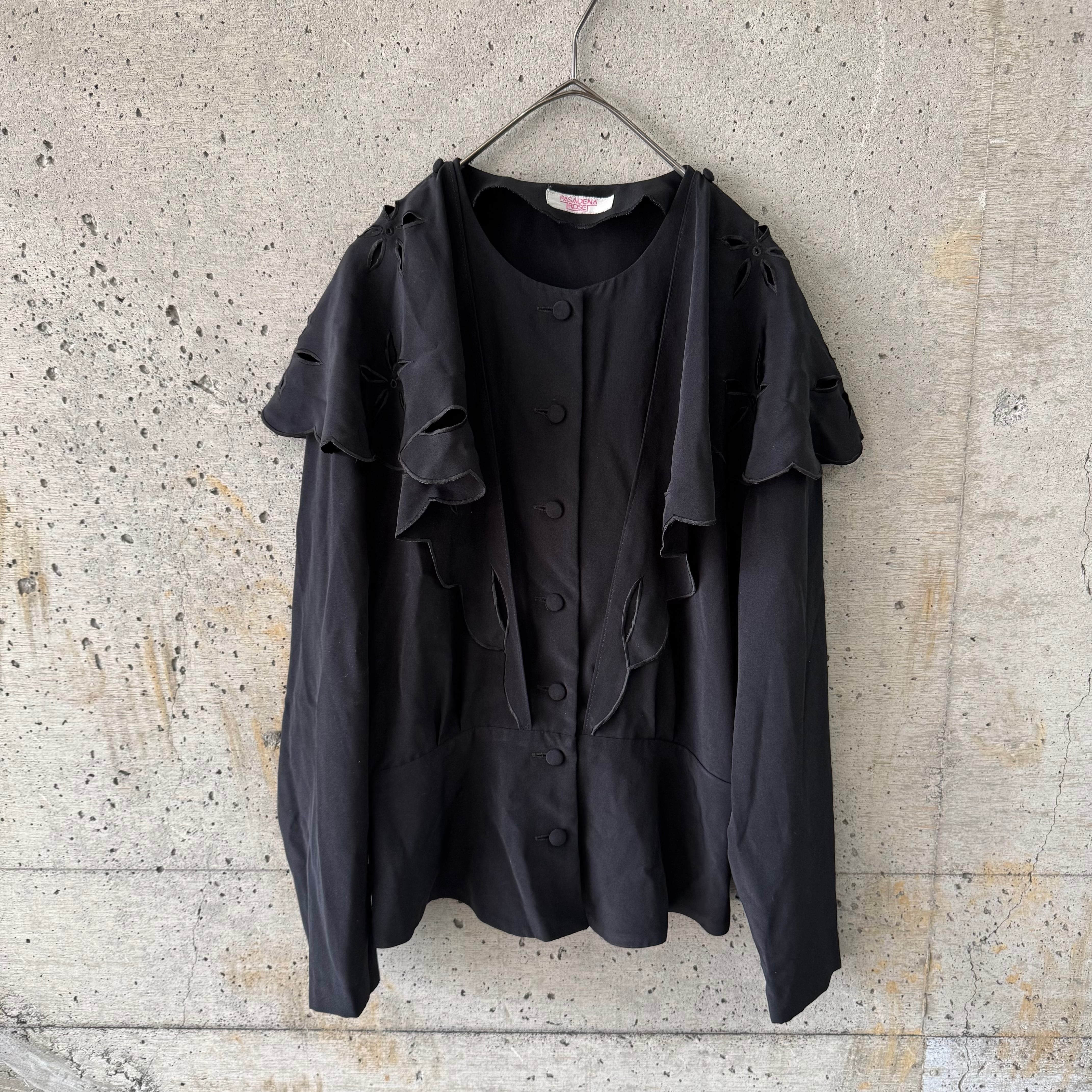 前後ともにVラインを描く、レースのフリルが印象的なブラウス。