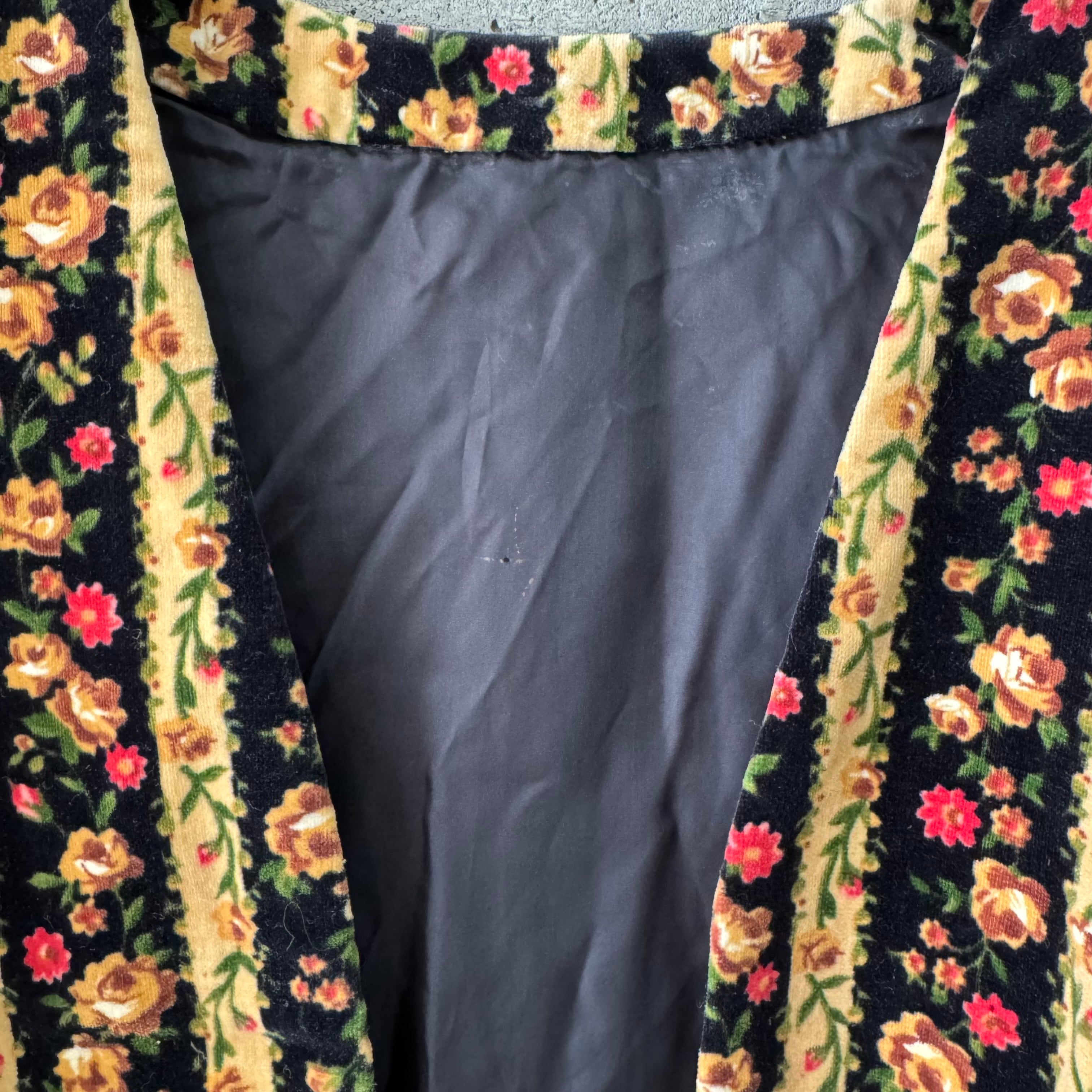 ベロア風の生地に、クラシカルなフラワープリントで、