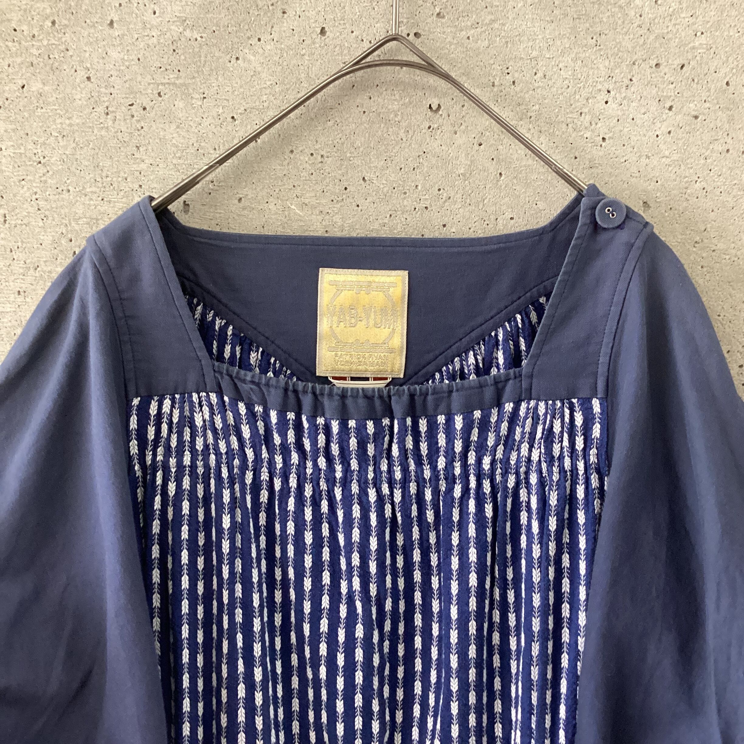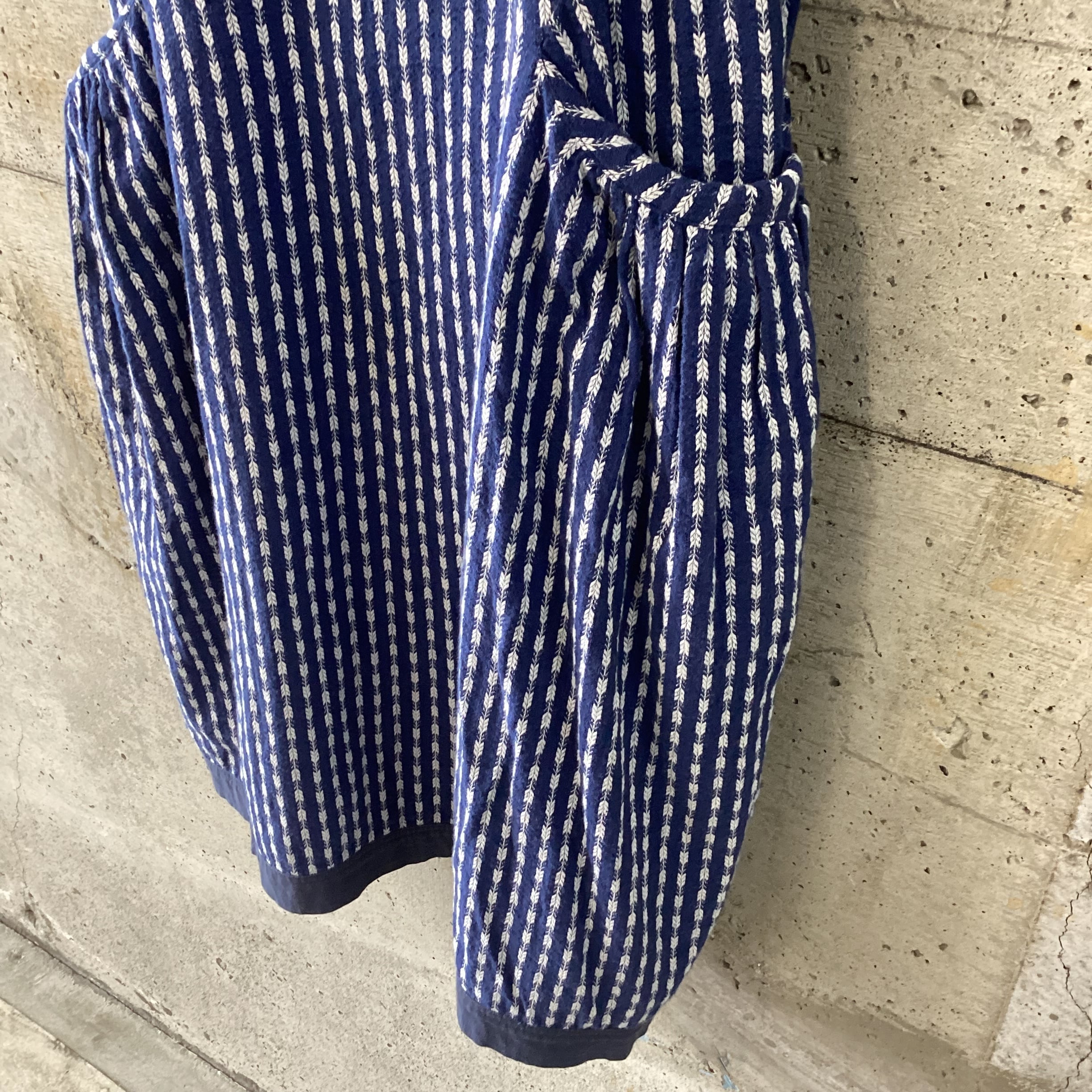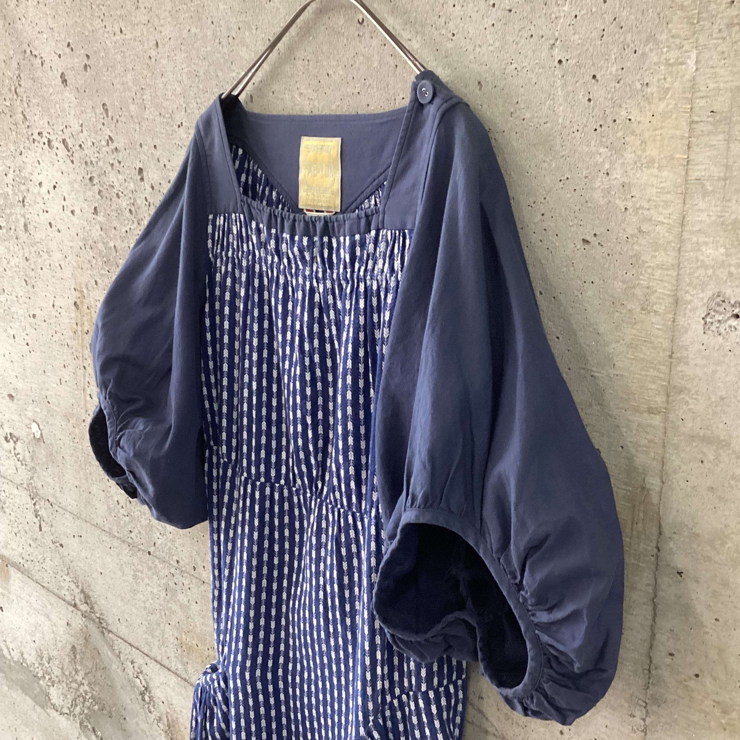 可愛らしいシルエットですがネイビーブルーで落ち着きのある色味をしていて、可愛くなりすぎず、さまざまな年代の方に着ていただけます。