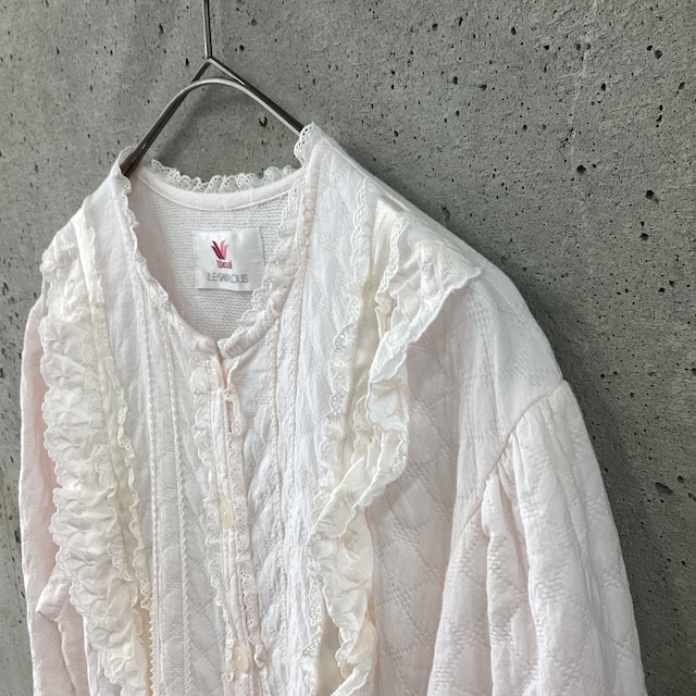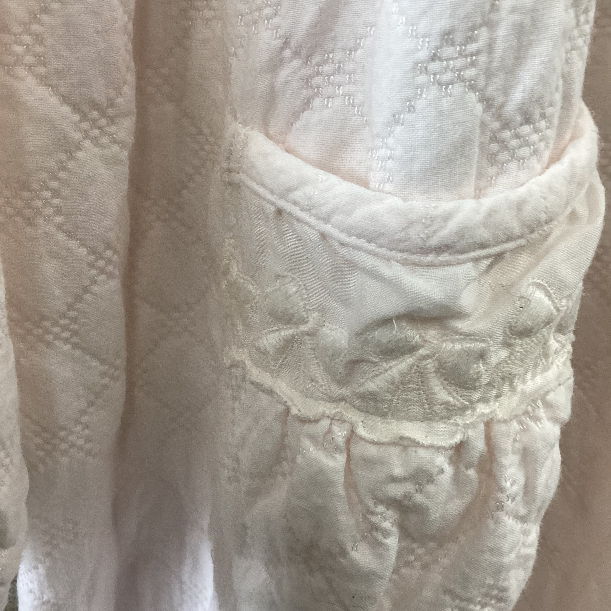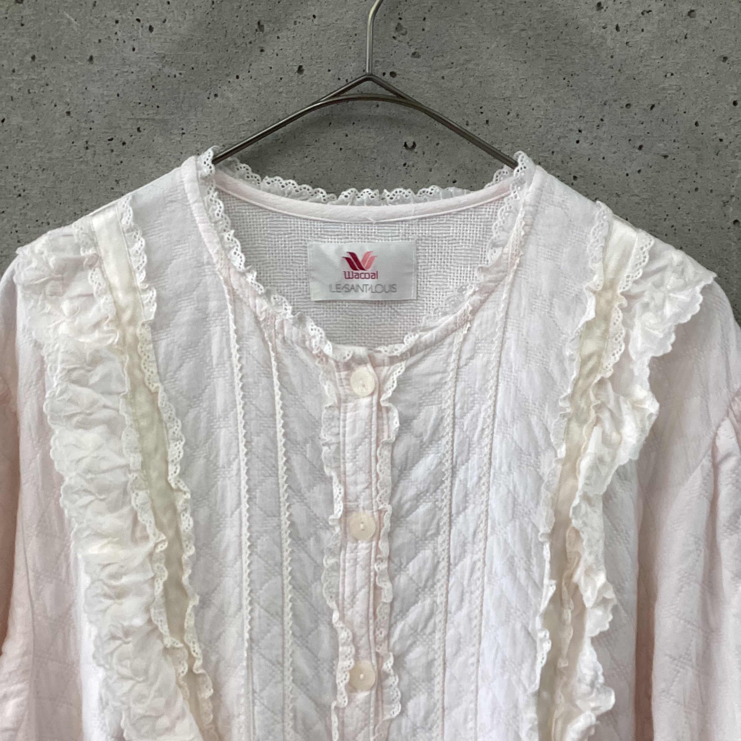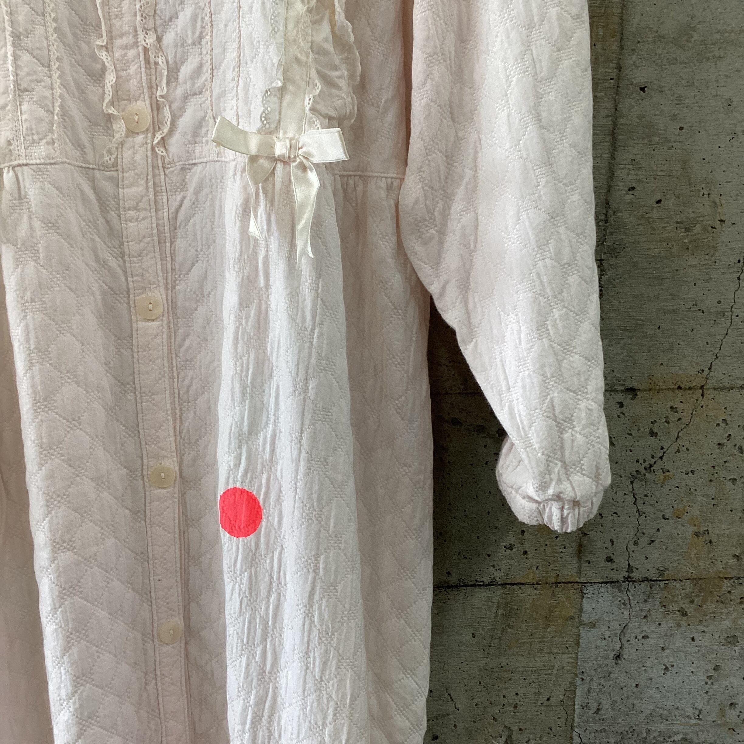 ふんわりとした薄ピンクの生地はとても可愛らしく、所々にあしらわれたリボンのレースが素敵です。