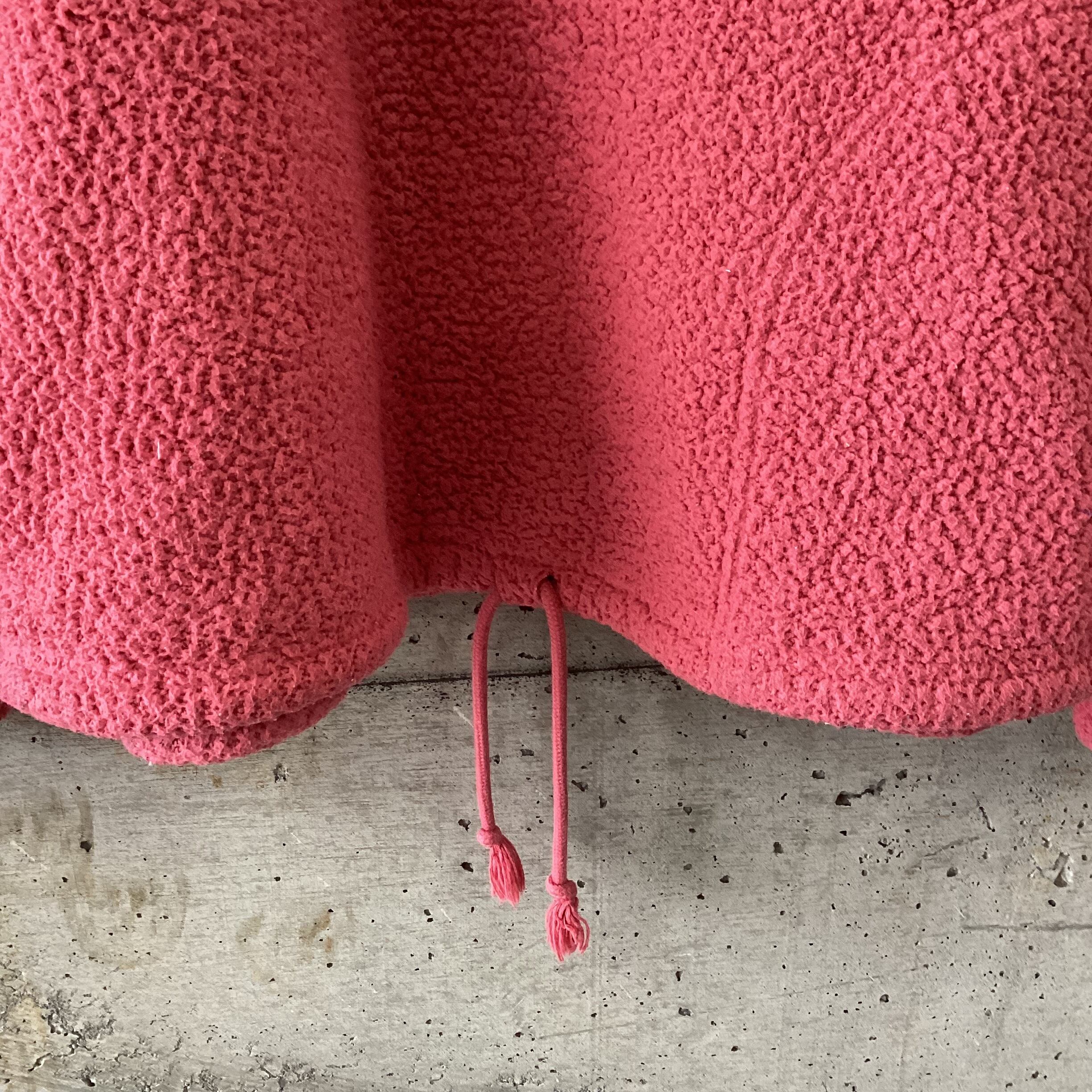 ハイネックはぴったり締まるタイプではなく、ゆるやかに首元に沿うデザインになっていて、裾にはコード入りで、絞るとコンパクトなシルエットに変化します。