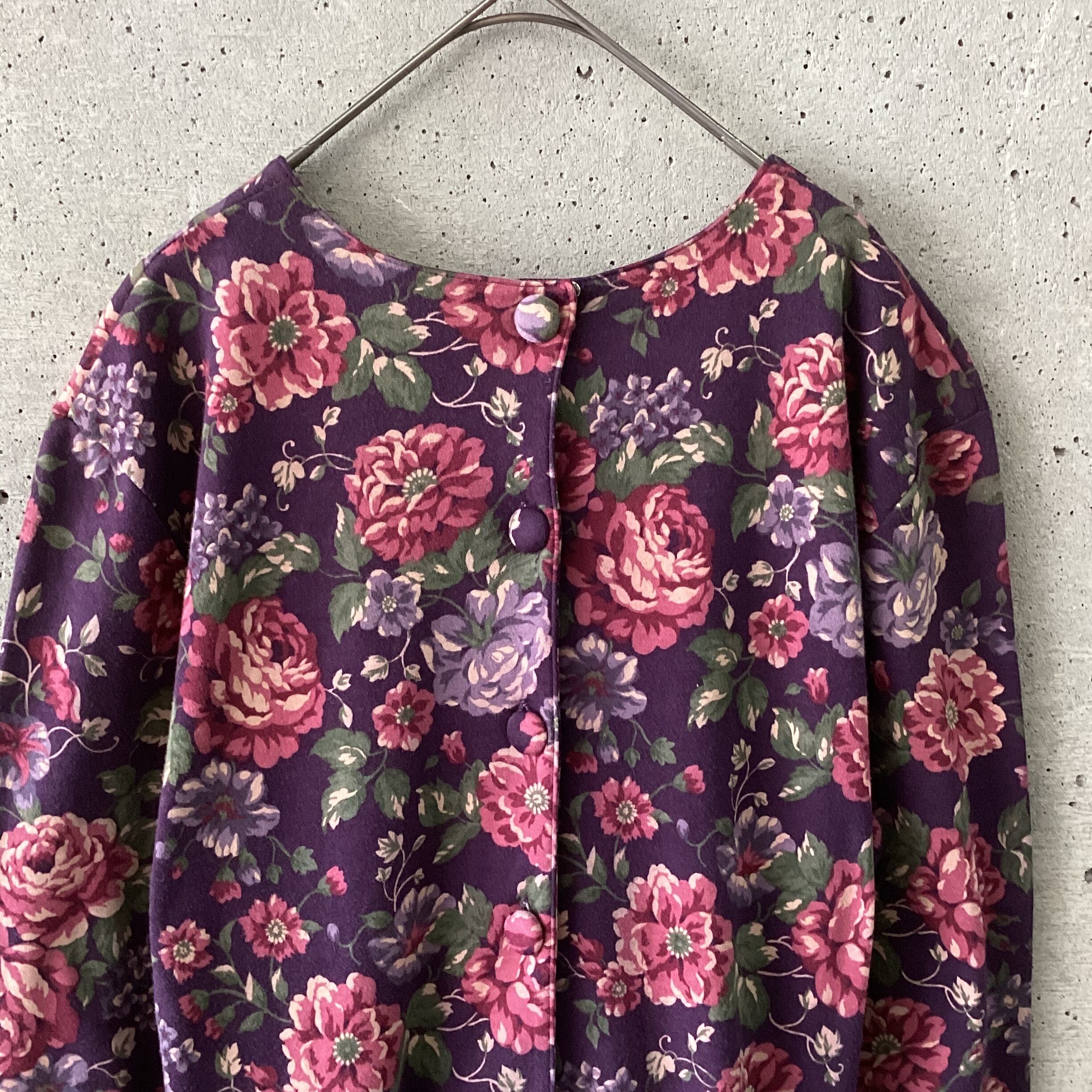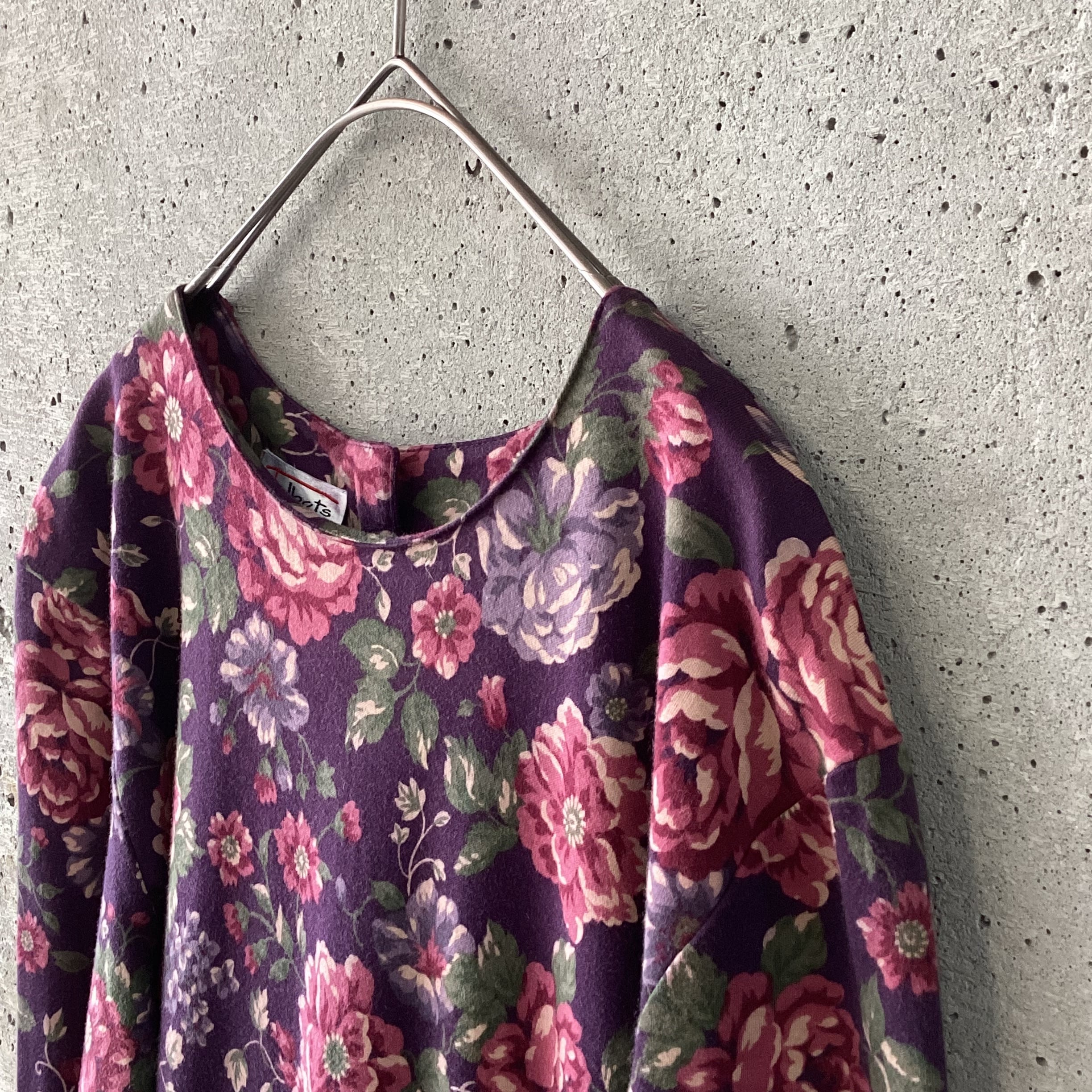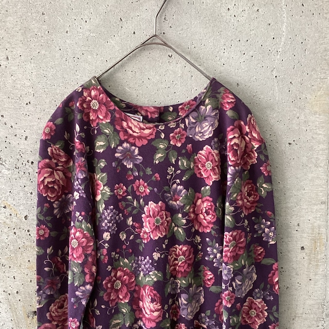 動きやすいカットソー生地に華やかな花のプリントが施してあり、カジュアルながらも上品さがあります。