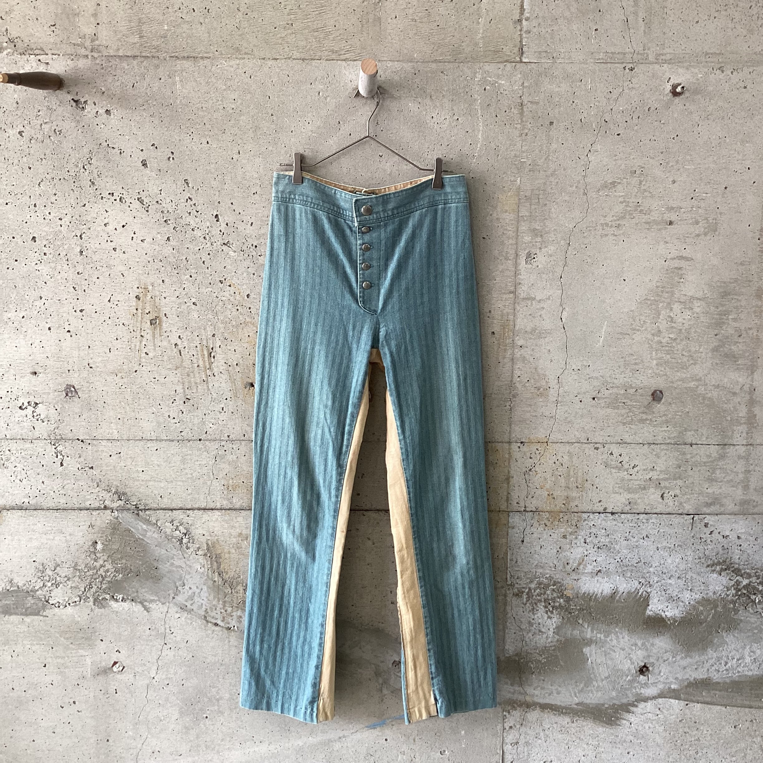 レザーとデニムの切り替えによる、スペシャルな一本です。