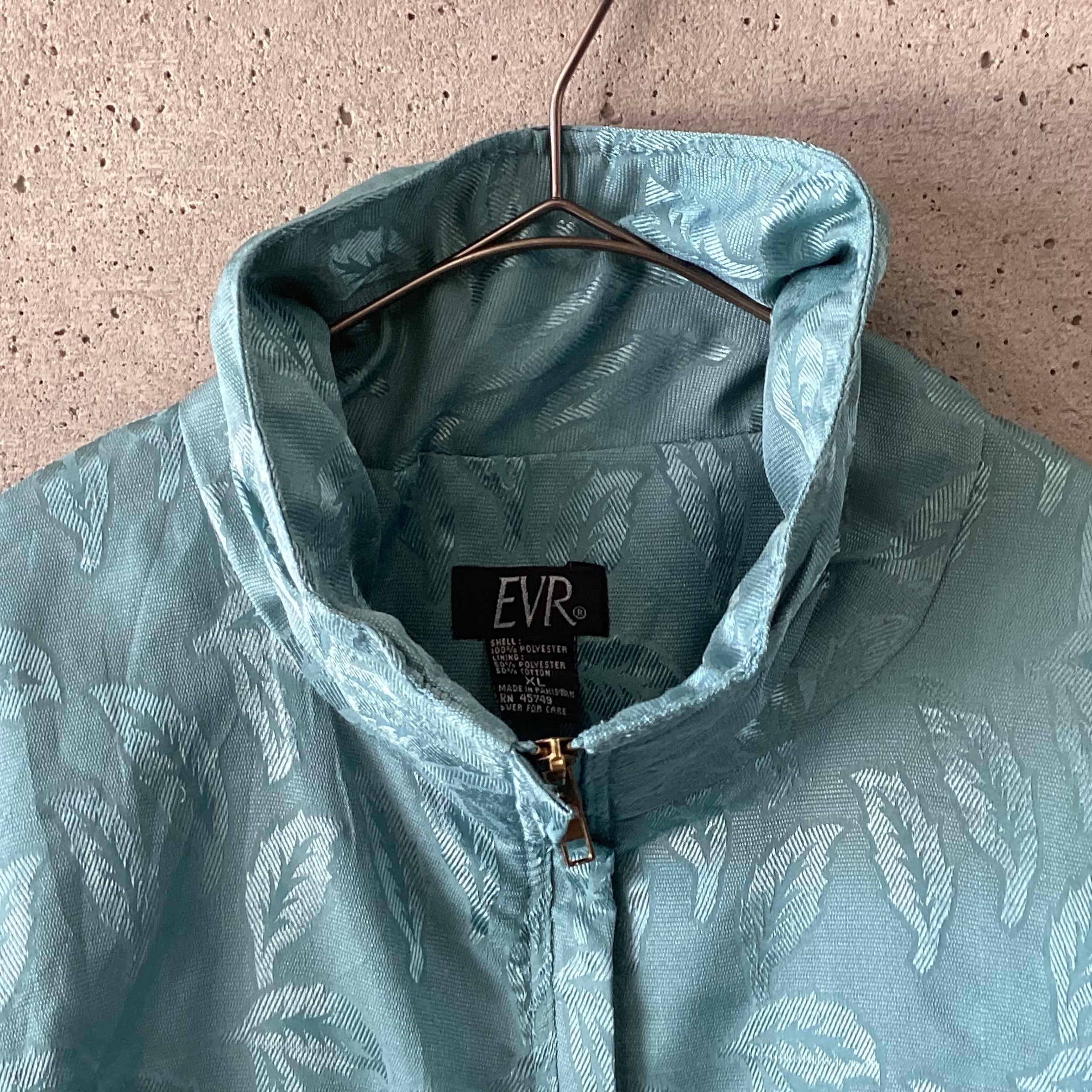 光沢のあるリーフの織り柄のジップブルゾンです。