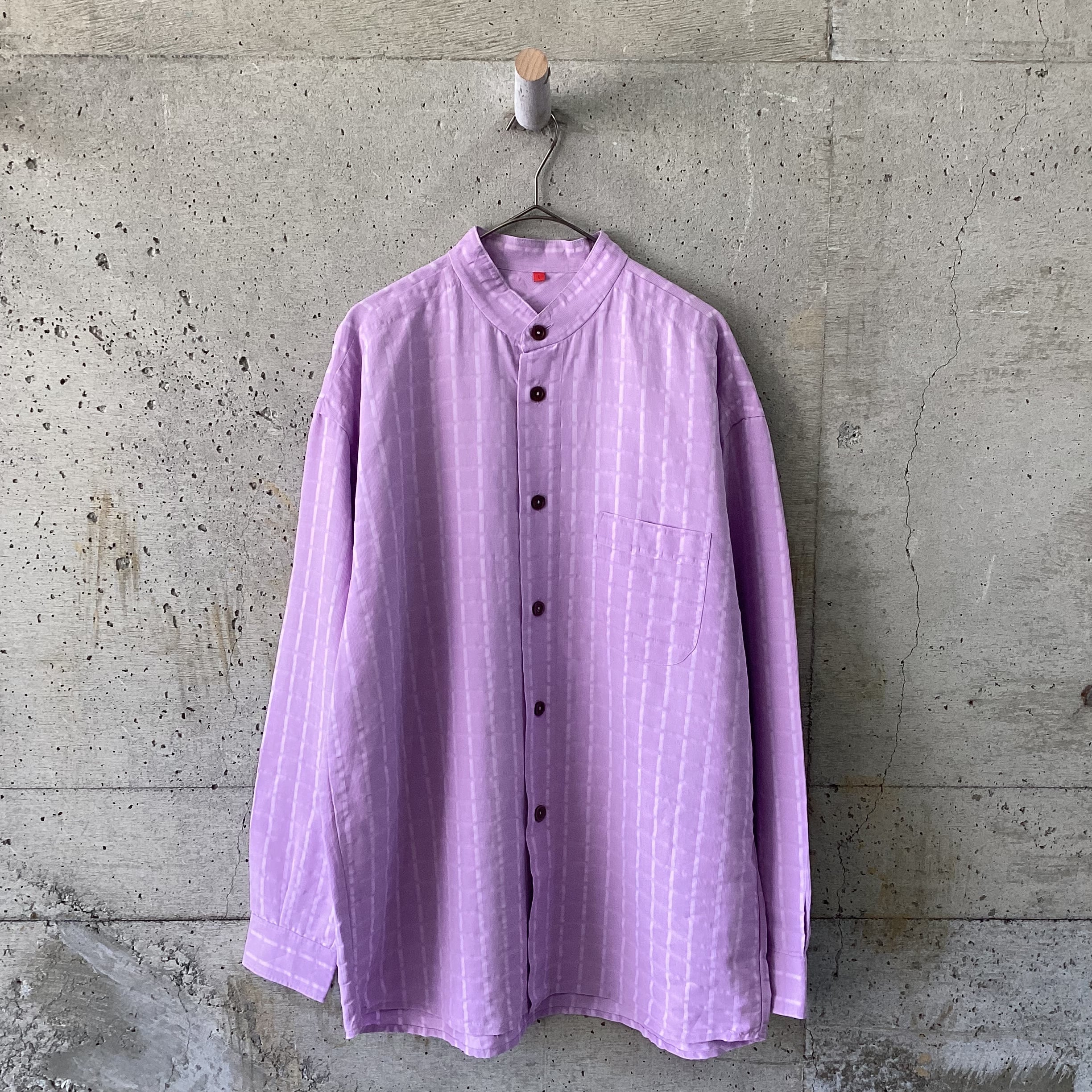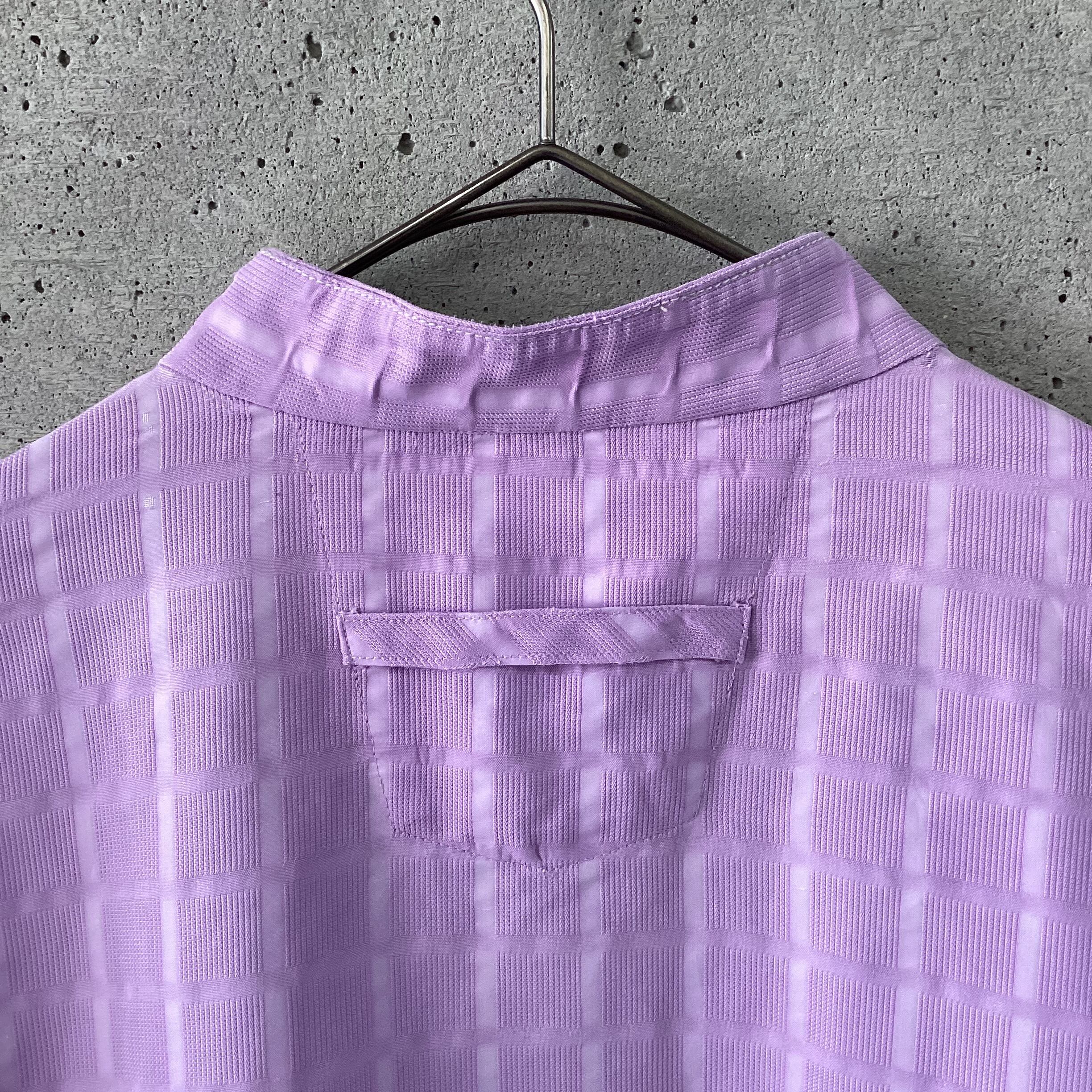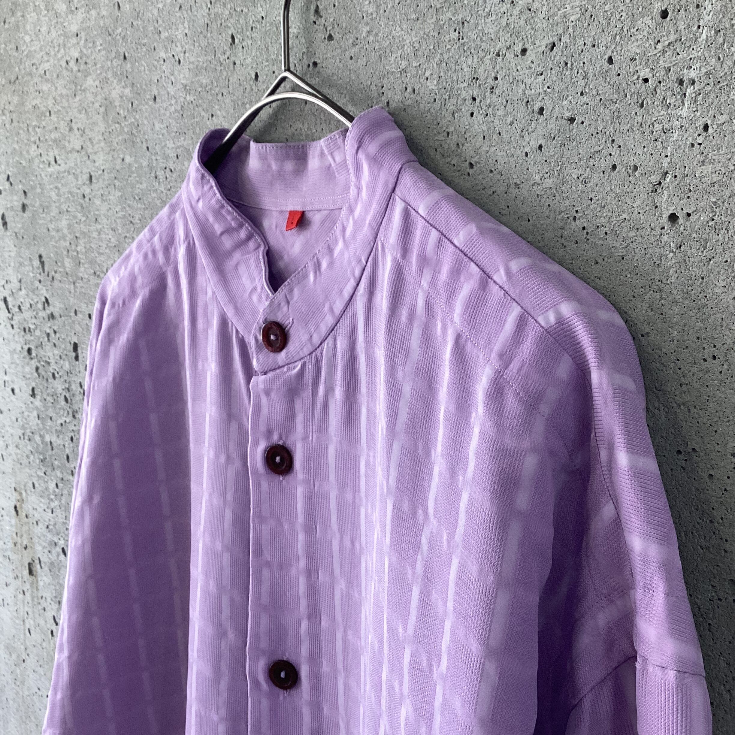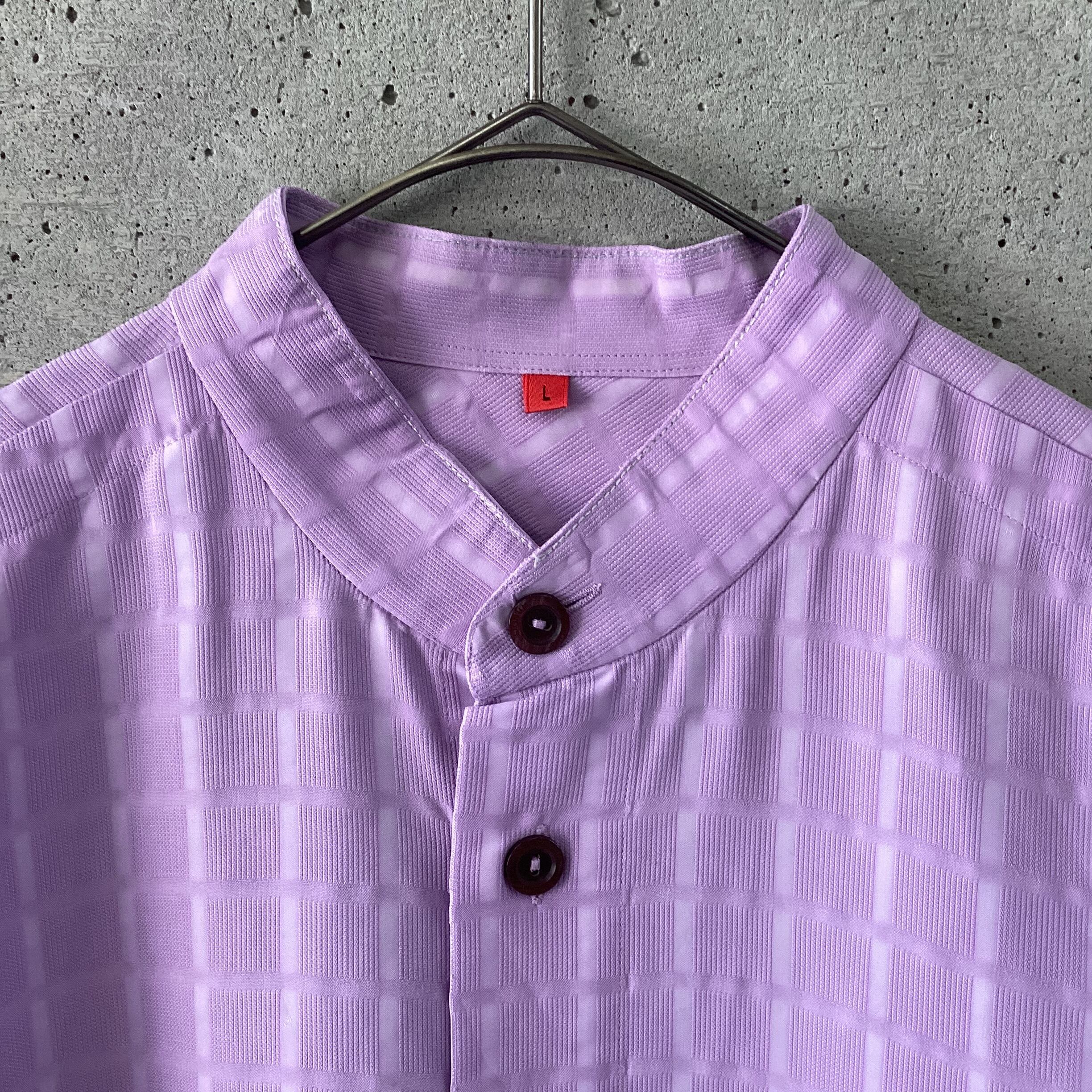 Purple textured band collar shirt